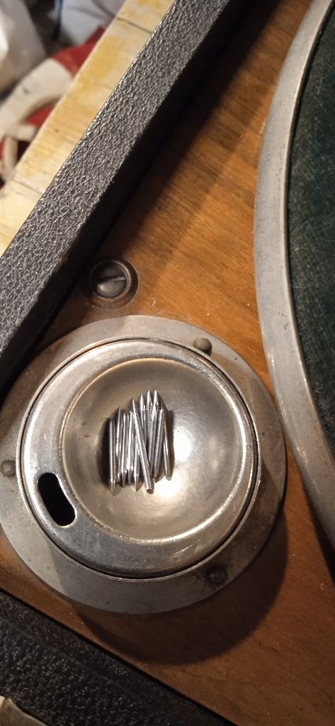 Nevermind and enjoy your portable! Following Jerry's advice, please also keep in mind that needles can be used only once and have to be discarded and changed at each next record. I suggest you get rid of the needles you've found inside the gramophone, unless the seller granted that they were all fresh and added for courtesy.