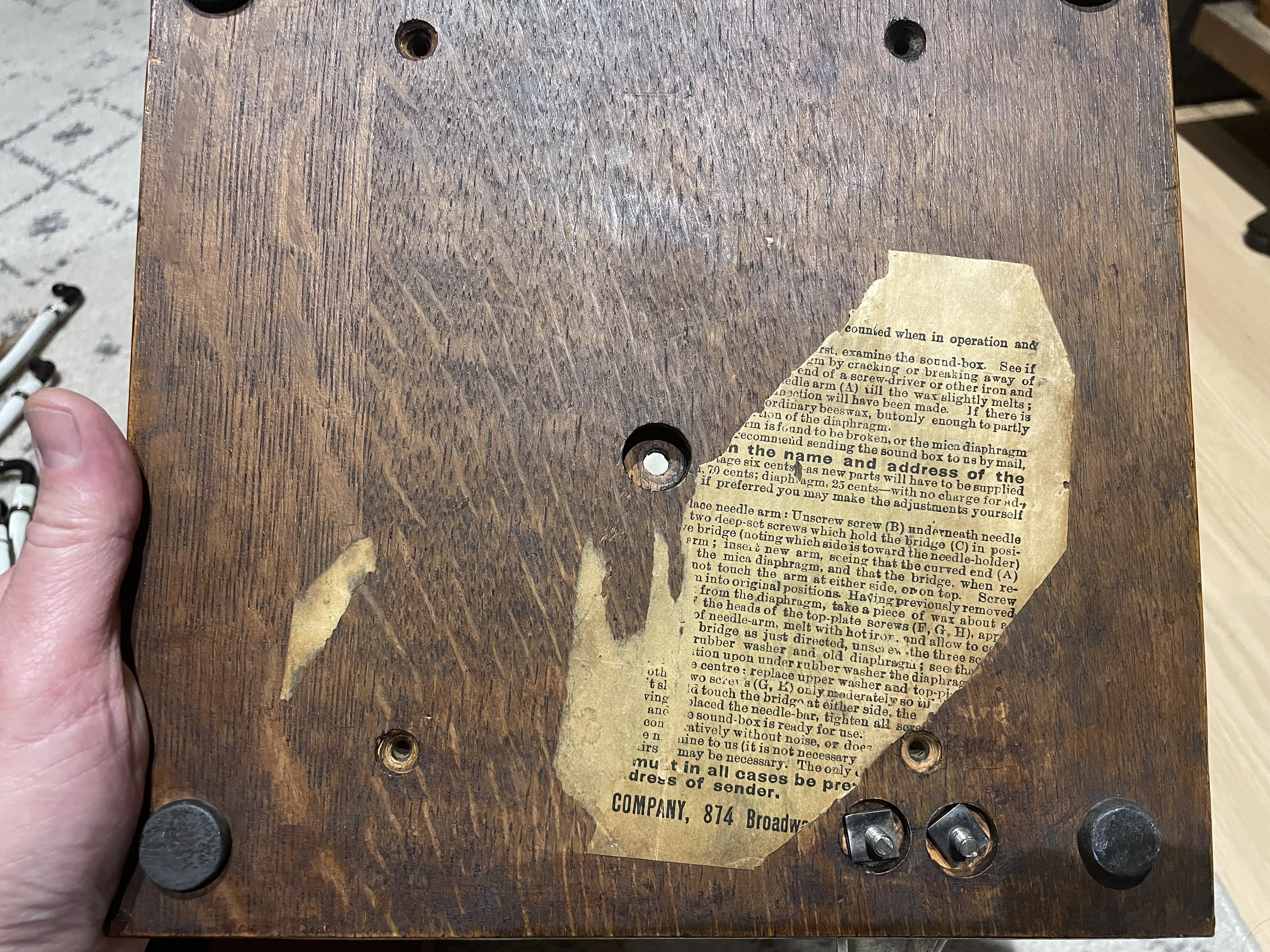 US Berliner original case and parts. Has side brake and rest. Support arm is nice reproduction. Finish is super nice and decal is good. Appears someone may have drilled and filled a small hole at one time above side brake. Partial paper instructions are on the base. $450 + shipping. Best to contact me at my regular email [email protected]