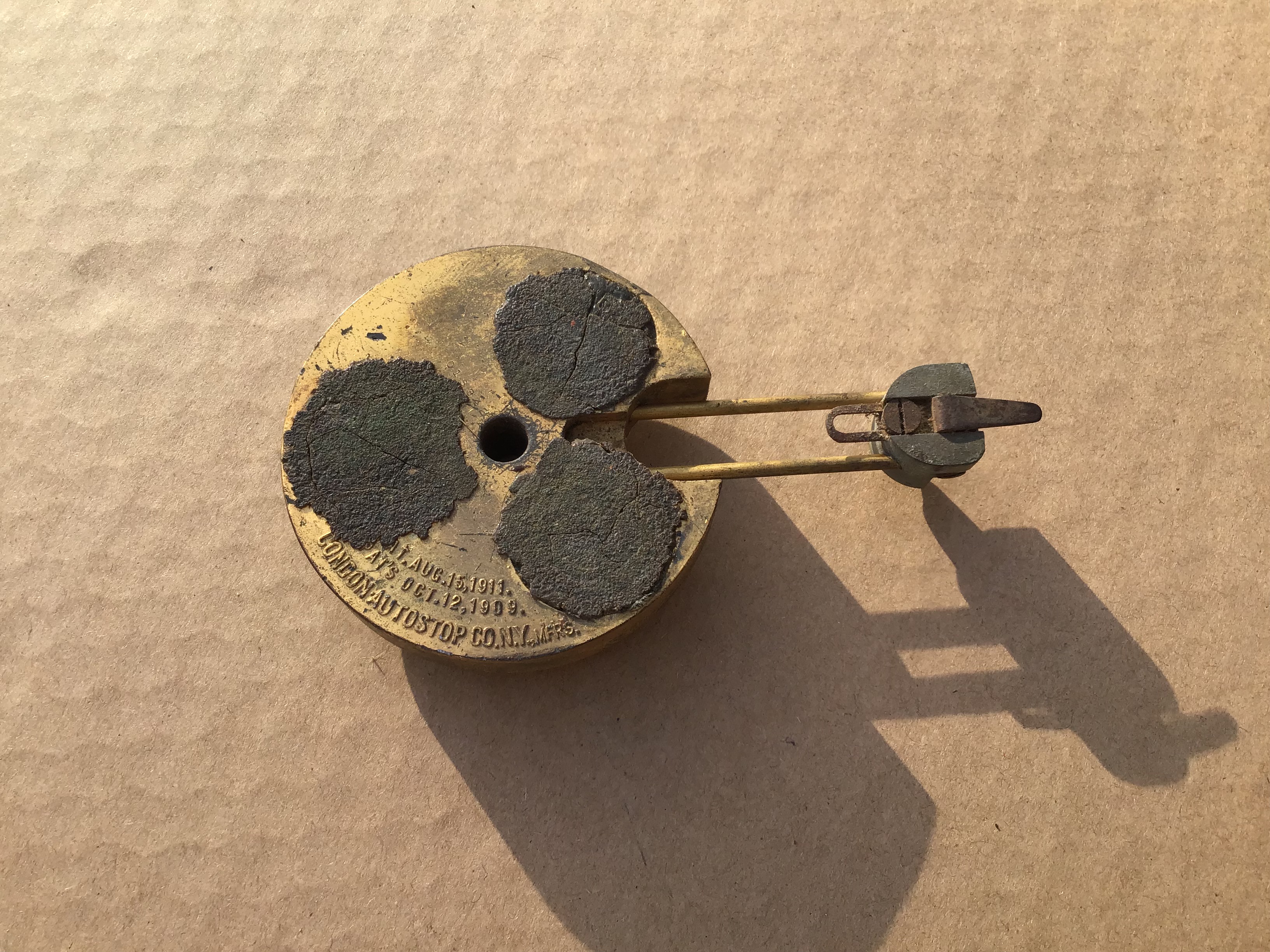 Here is a part of a Condon Auto Stop for victrolas. It is gold plated. It could use some cleaning and polishing. This piece is fairly heavy.
