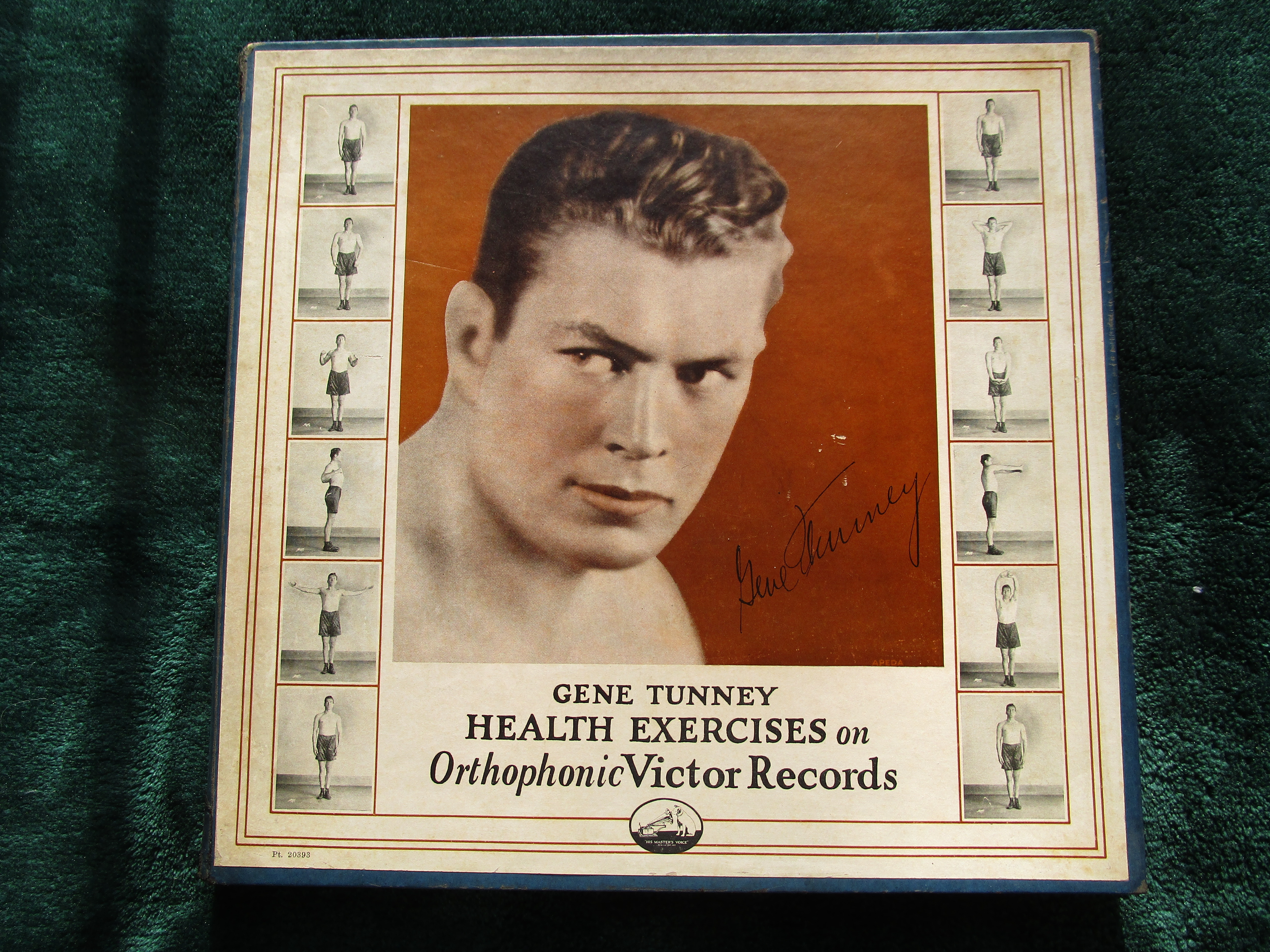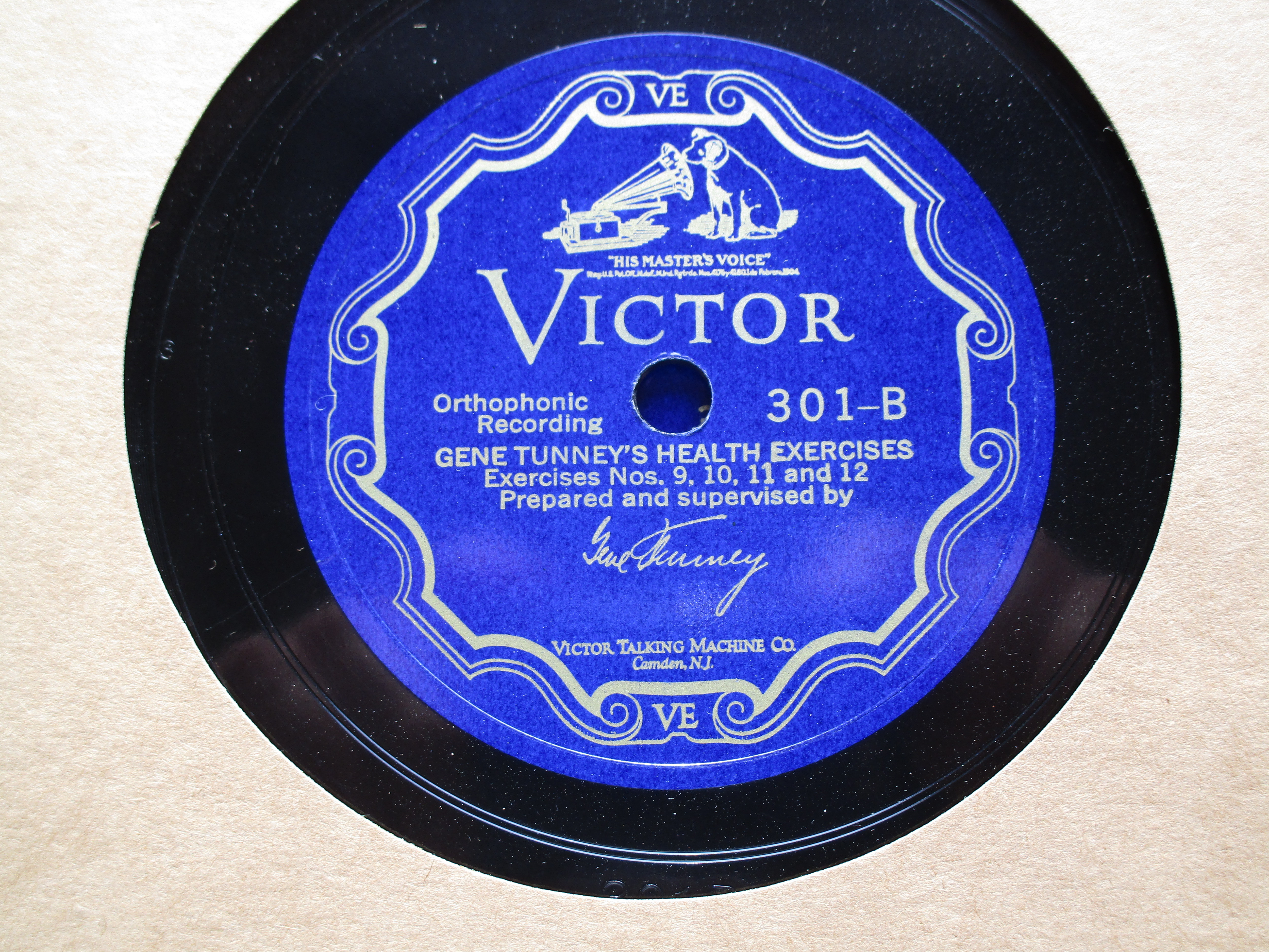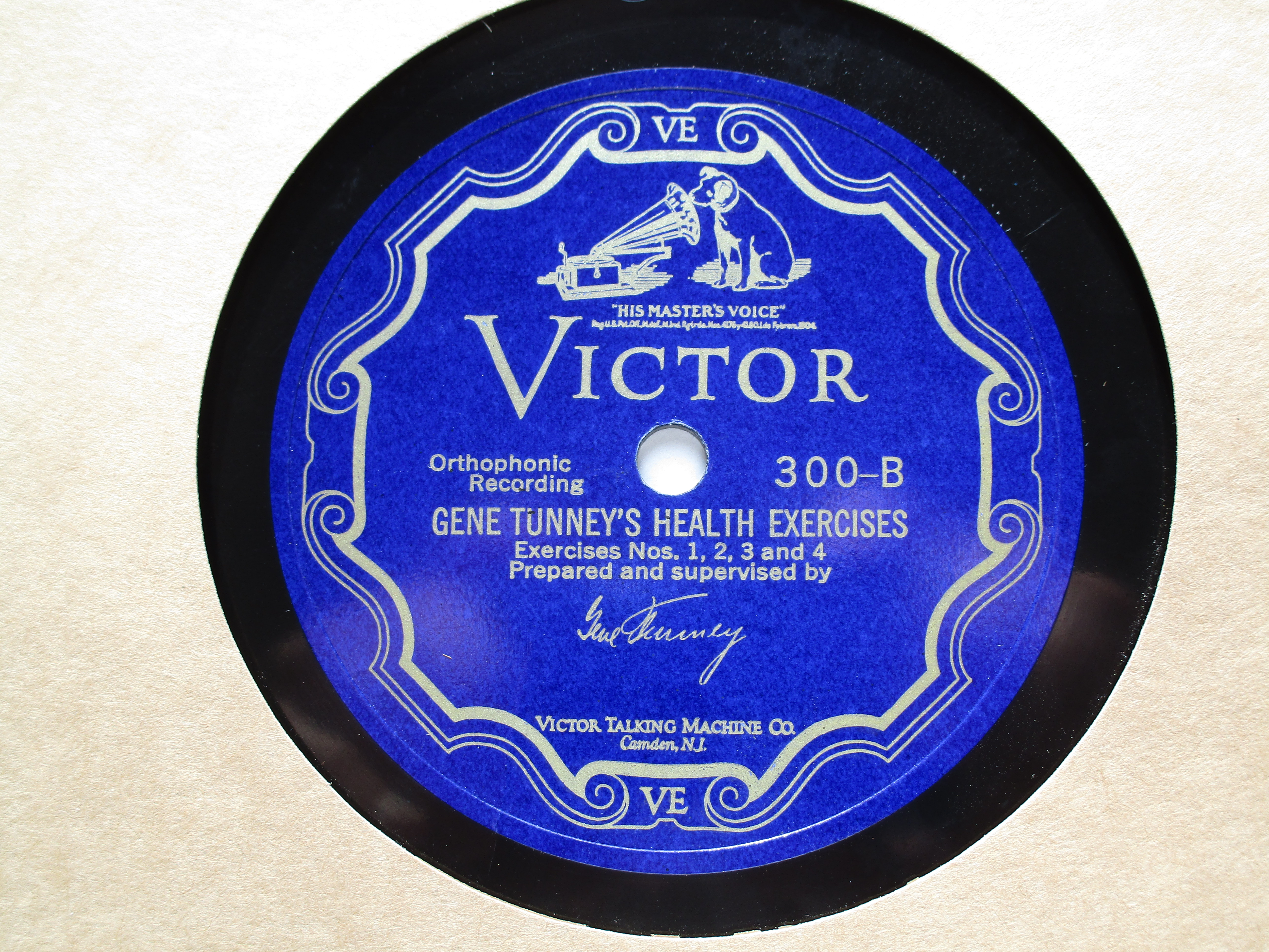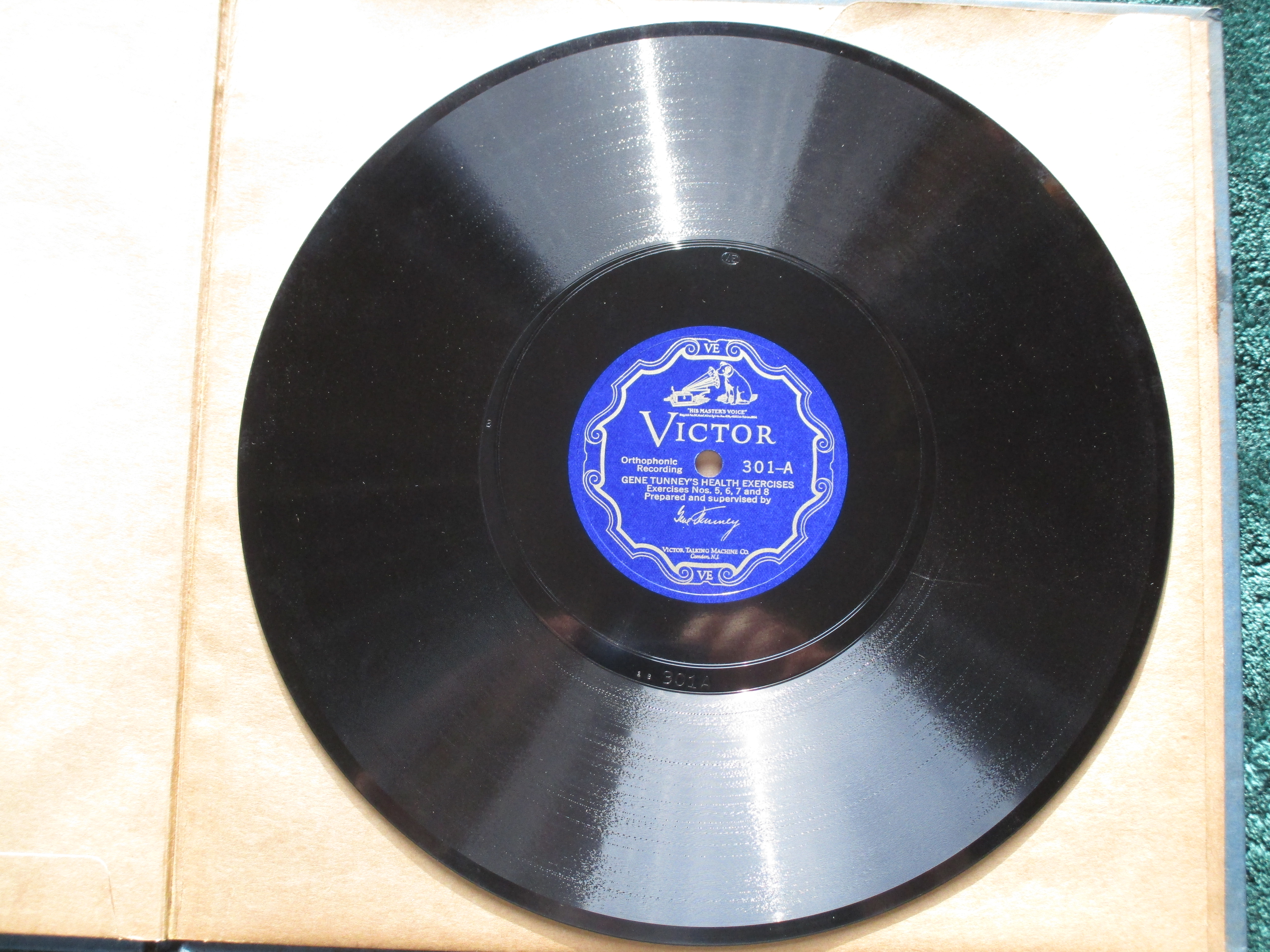 I have a near mint condition 1927 Gene Tunney Health Exercises Set on Victor Orthophonic BLUE SCROLL records complete with the original instructional picture booklet. This is a very hard to find set that is complete and in this condition. Please send a PM, PayPal Friends or Venmo payment, USPS extra at cost, packed securely, shipped promptly, USPS tracking sent to buyer.