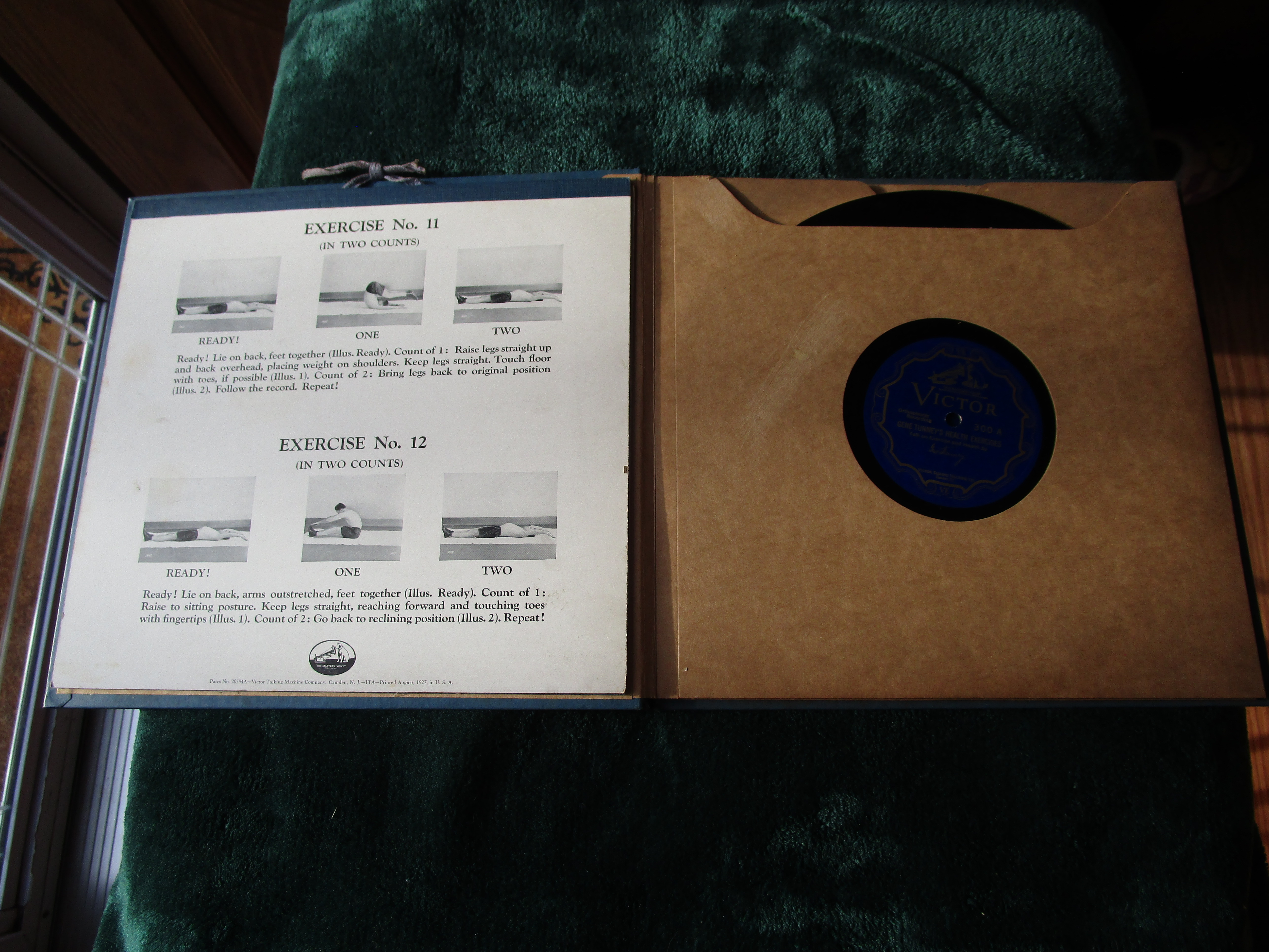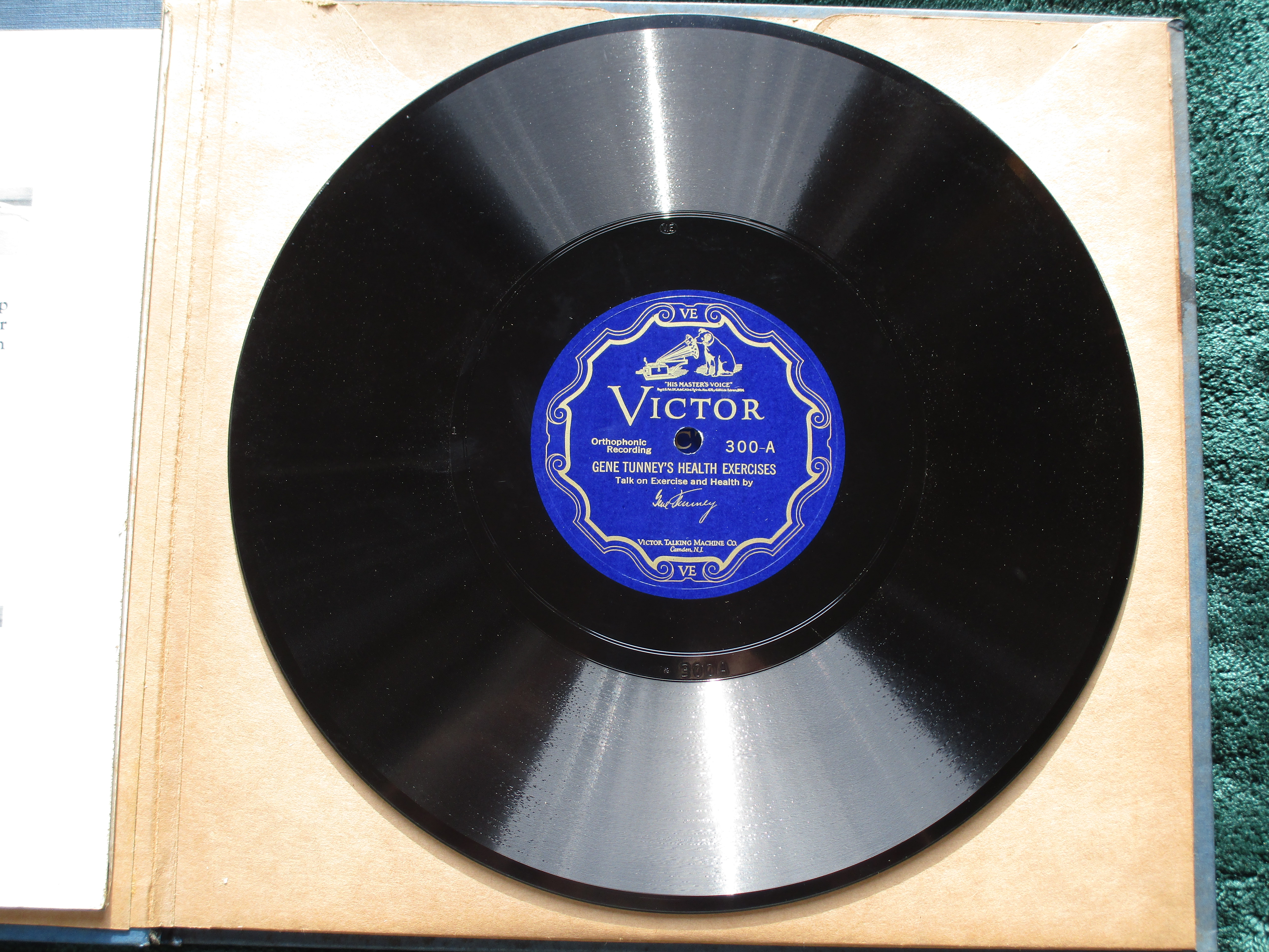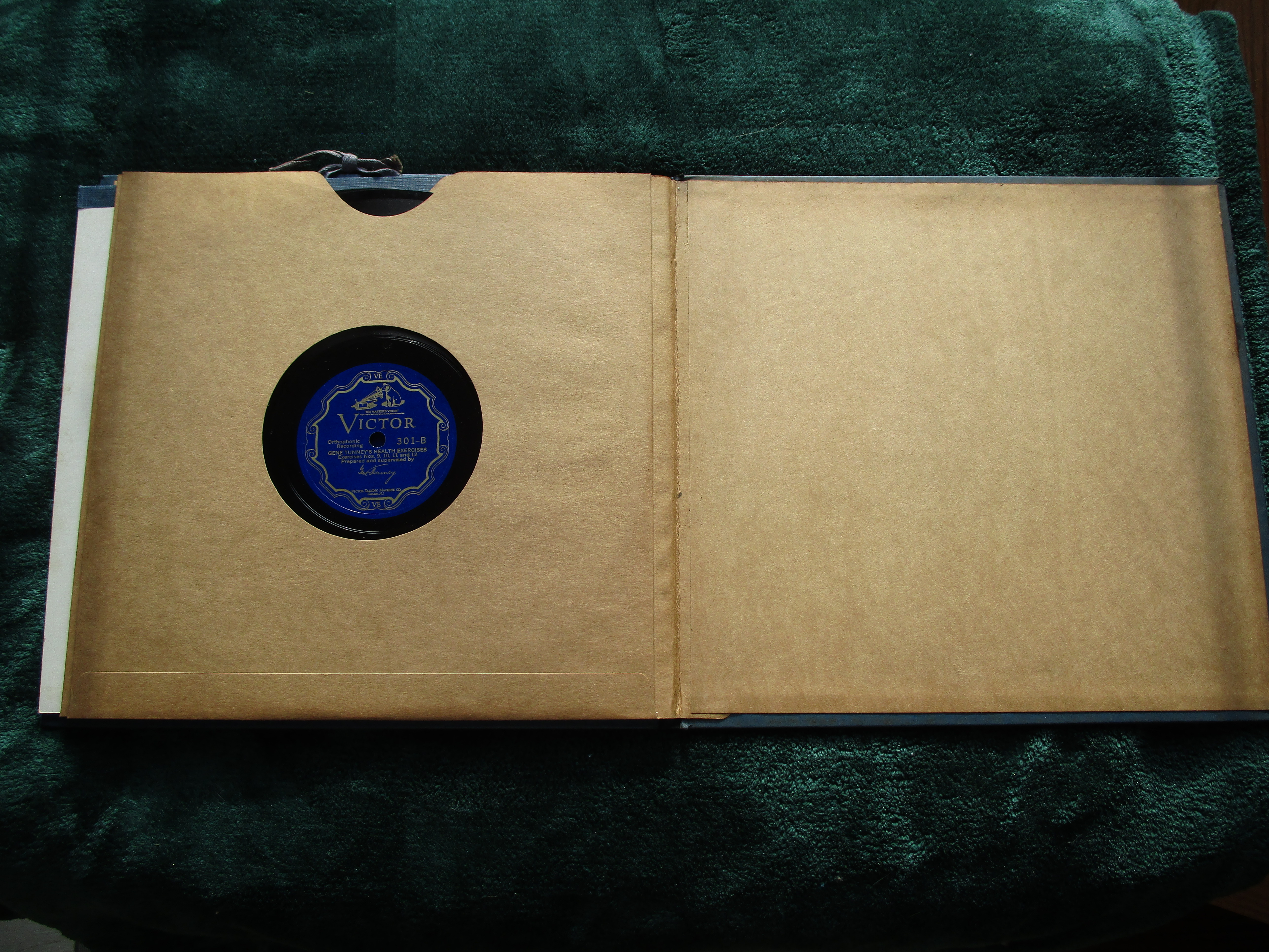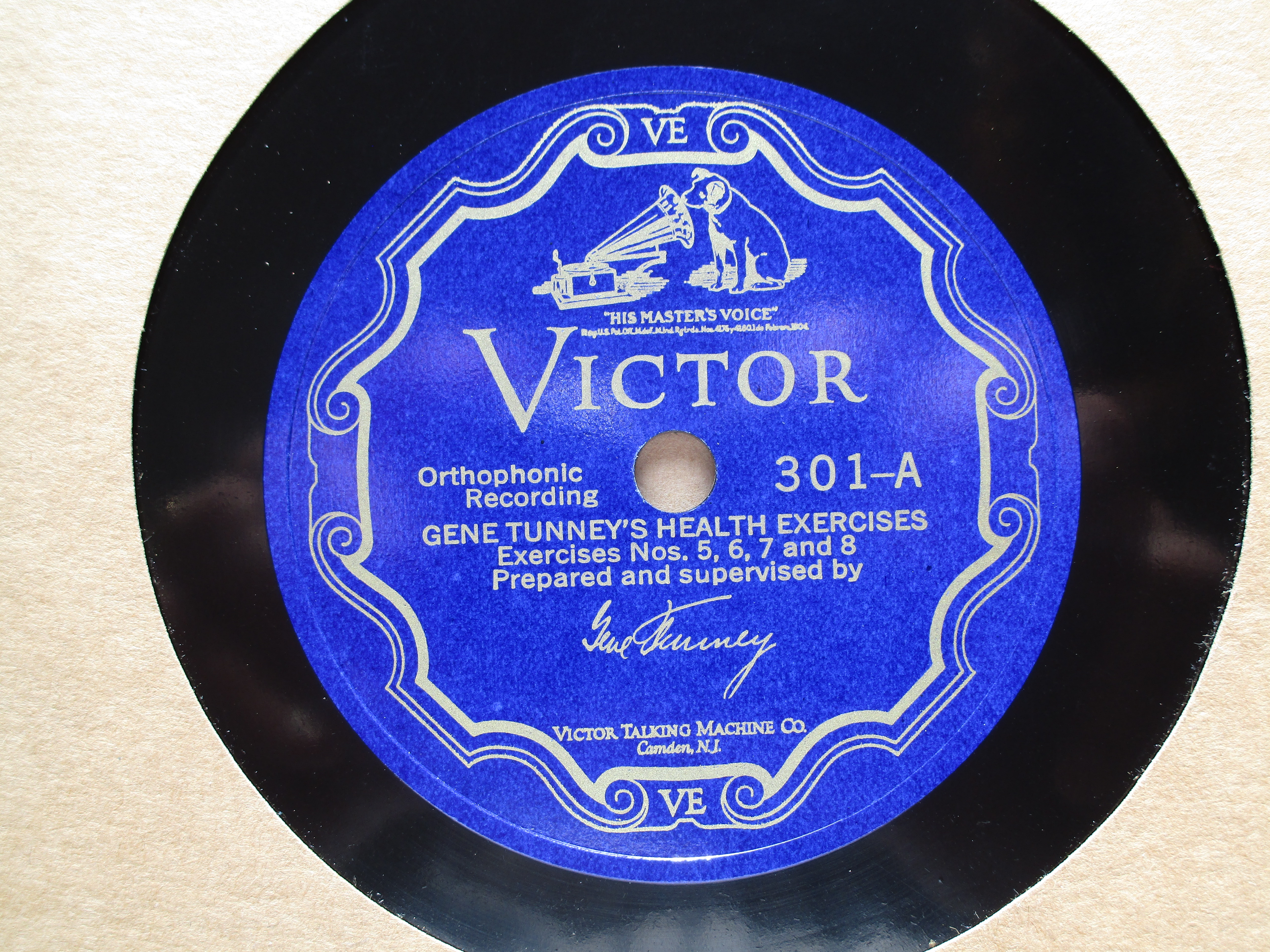 I have a near mint condition 1927 Gene Tunney Health Exercises Set on Victor Orthophonic BLUE SCROLL records complete with the original instructional picture booklet. This is a very hard to find set that is complete and in this condition. Please send a PM, PayPal Friends or Venmo payment, USPS extra at cost, packed securely, shipped promptly, USPS tracking sent to buyer.