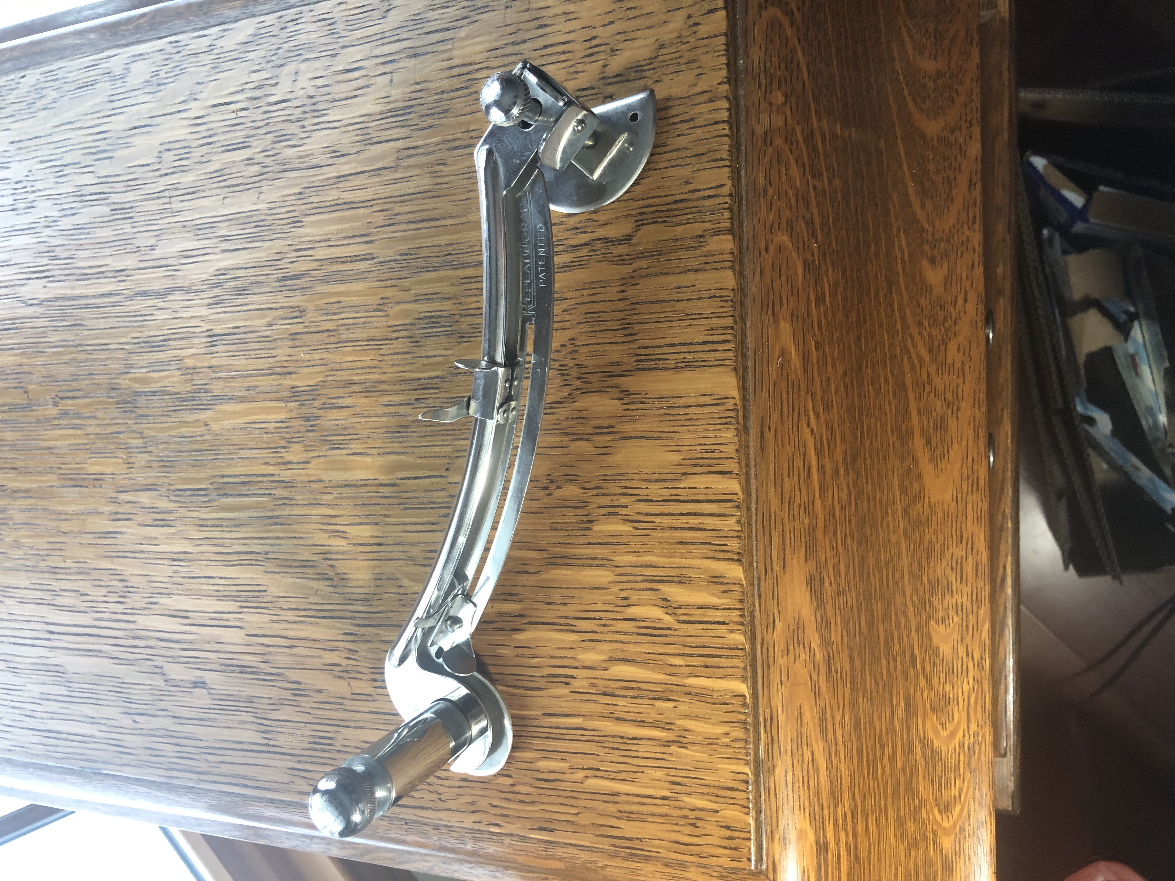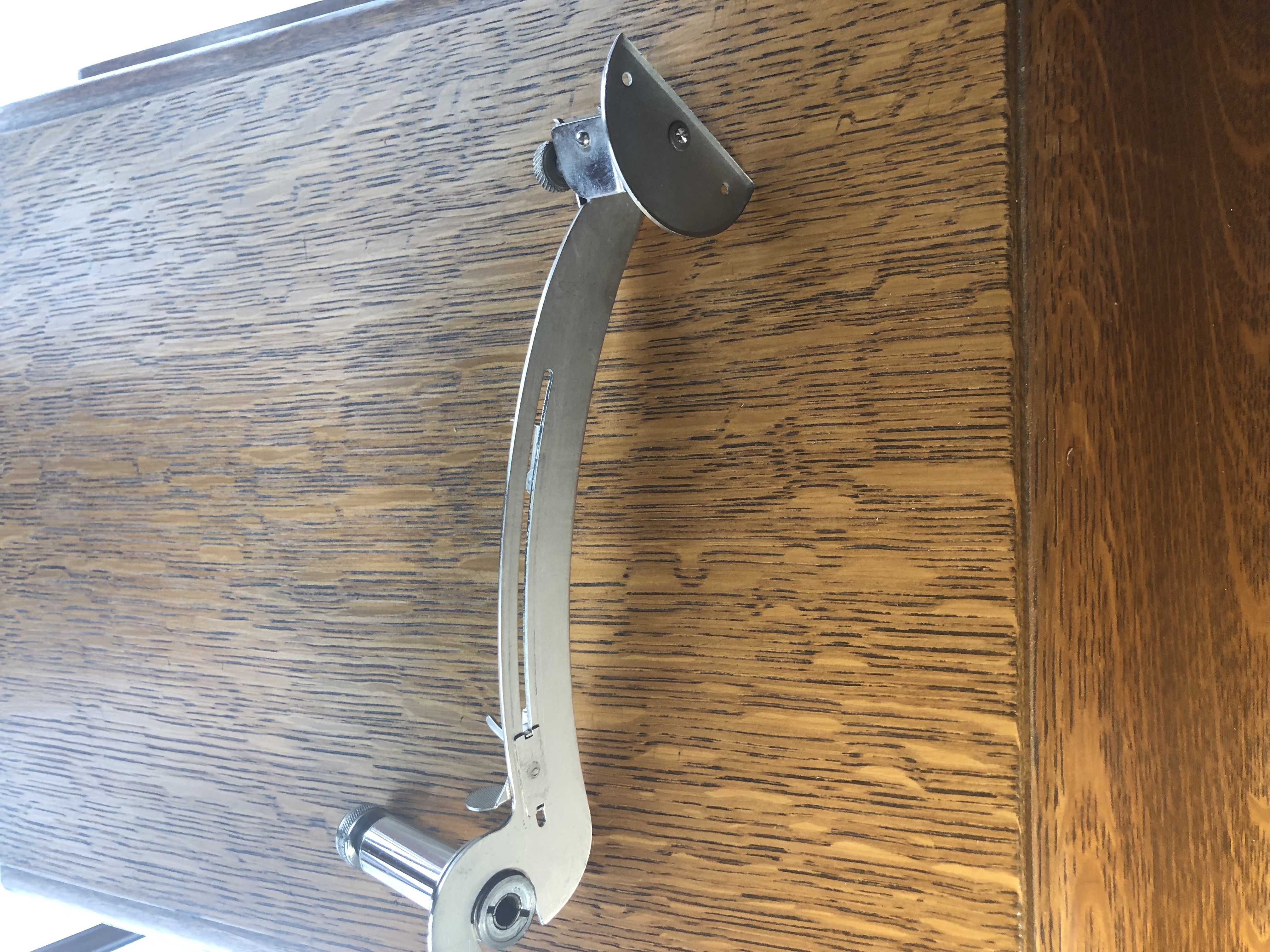 Also upon reading the Directions For Attaching and Using the Repeat O Graph they call to 'Then fasten the half moon foot with the thumb tacks enclosed'. The thumb tacks whereabouts are unknown and are not included in this sale. If anyone has photos of original fasteners please post pics.