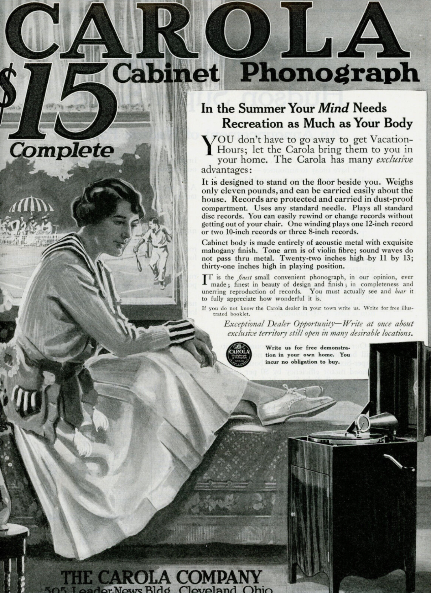 I’ve seen these small phonographs in the mahogany grained metal cabinet at antique stores and at the Phonograph shows for years and always thought they were made for children. This ad says otherwise! Quite a surprise. Maybe I’m just late to the party!