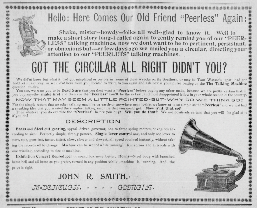 Advertised here (1906) as part of a Peerless Talking Machine ...