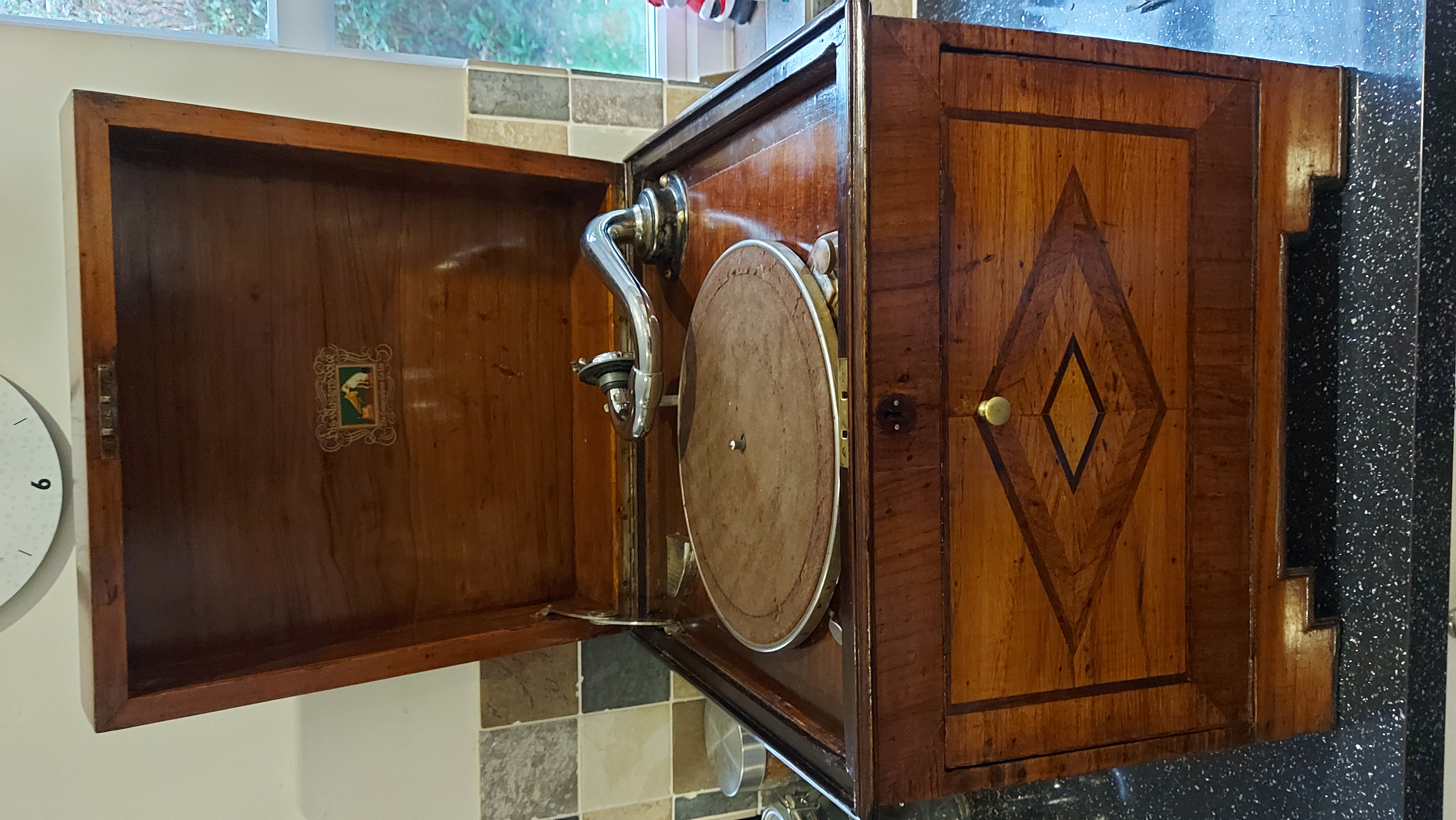 I'm not expecting it to turn up in an old catalogue any day soon but it certainly looks incredibly impressive as a piece of furniture and as you say, it does sound fantastic. If it was simply assembled using reclaimed parts, why would it have the decal in the lid? It is odd though given that the oil bath motor appears to have had the gilding purposefully removed in places and the oil lever is not original to it. Perhaps it was all rusty and someone has been slightly overzealous cleaning it up? I think it's definitely been well used in a previous life anyway.