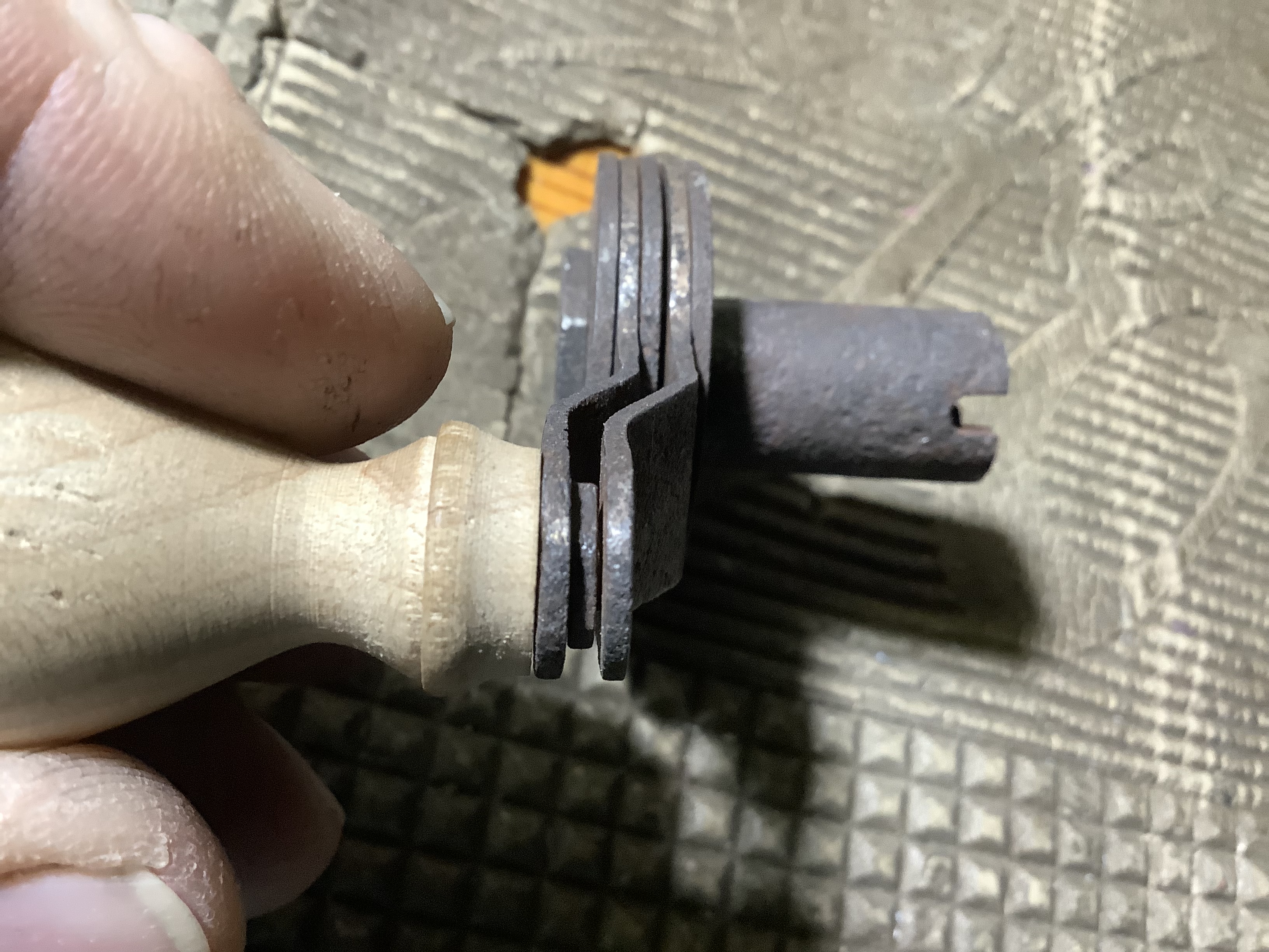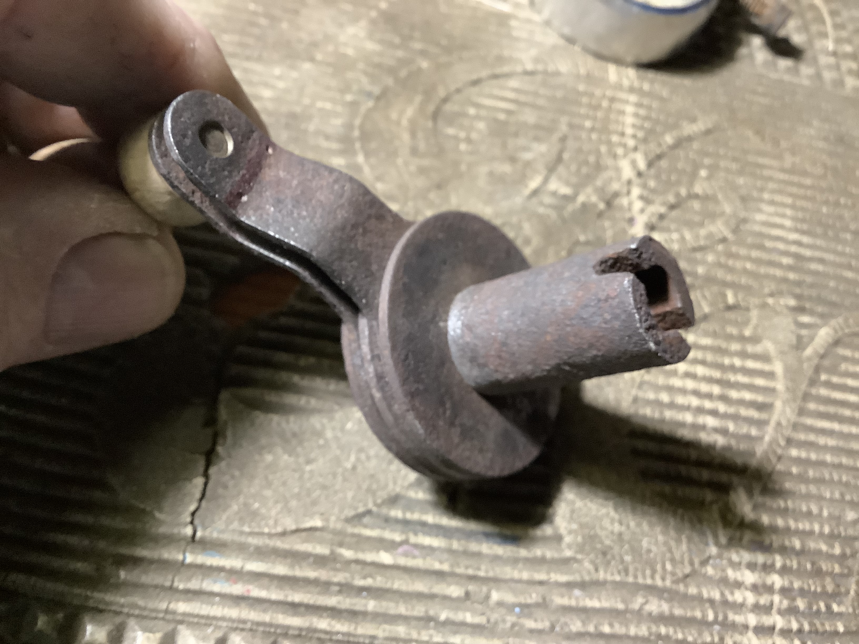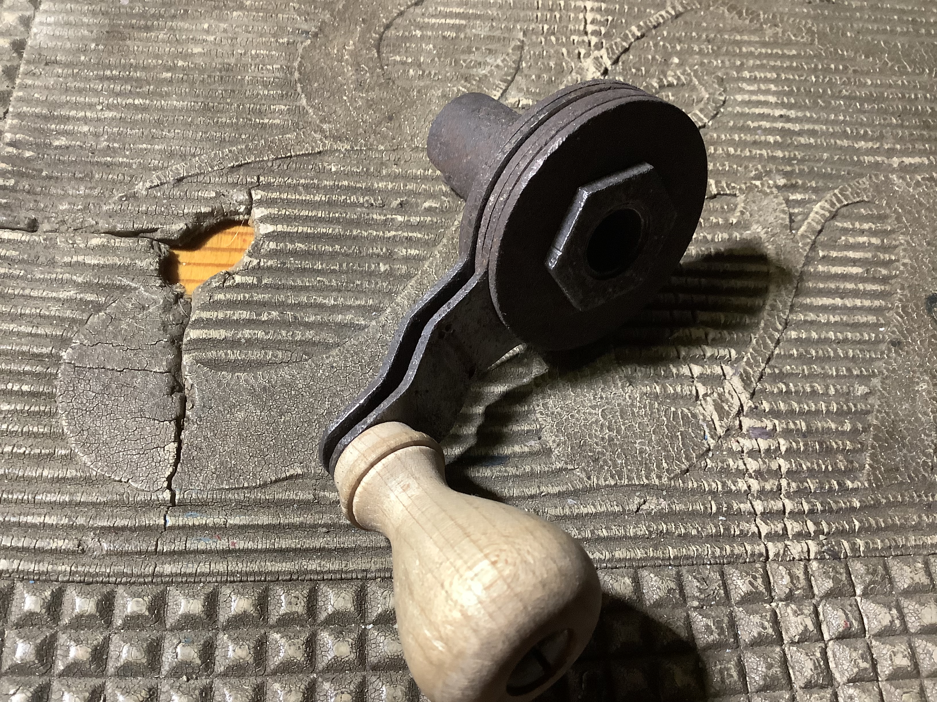 Nice complete clutch hand crank. Other than the new wood turning handle, it’s all original. I understand not all of these wonderful machines were plated originally as this example shows no hint of Nickel plate. Light rust, the only light pitting is on the barrel. Perfect for the unrestored original, just oil it up,