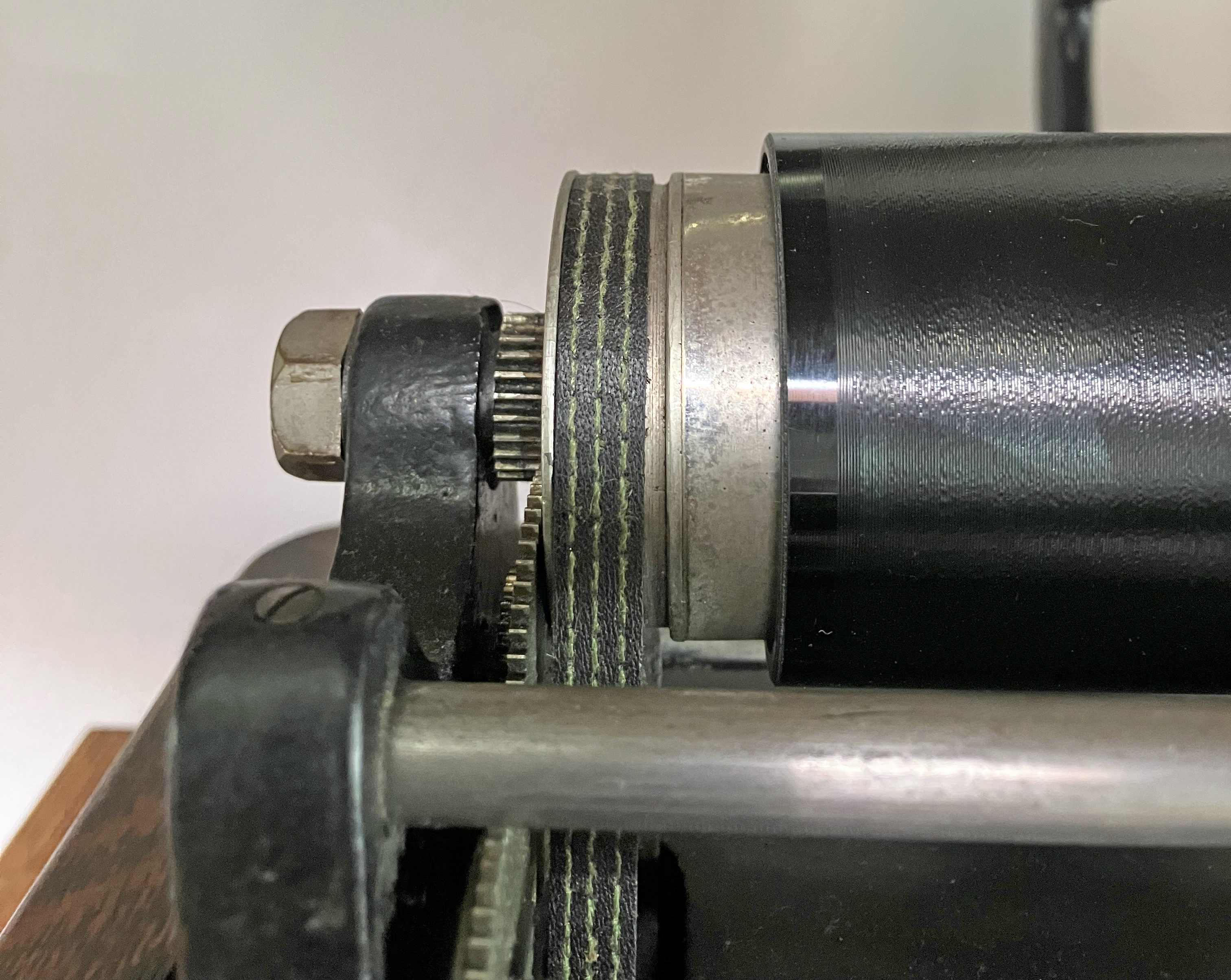 I'm now focusing on returning this machine to playing condition. It runs on what appears to be a strong spring, but I'm sending the leather gear out for restoration. I have a serviceable (but woefully incorrect) crank, which will do until I find a truly authentic example.