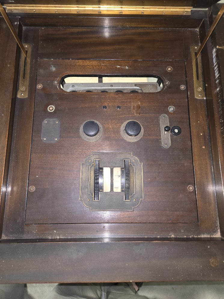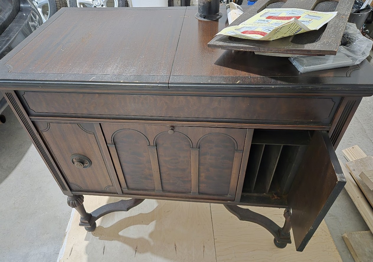 Hello--I recently inherited a machine from my late grandparent's estate and was hoping to find more information about it. Google searches have come up with similar cabinets, but nothing quite exactly the same setup and none that included the model number I have on the rear nameplate. I found another thread on here for a similar cabinet, but I think it was battery powered and mine is fitted with an AC cord. I have no idea the last time the cabinet was functional, but I don't think it's been working as a record player since I've been alive.
