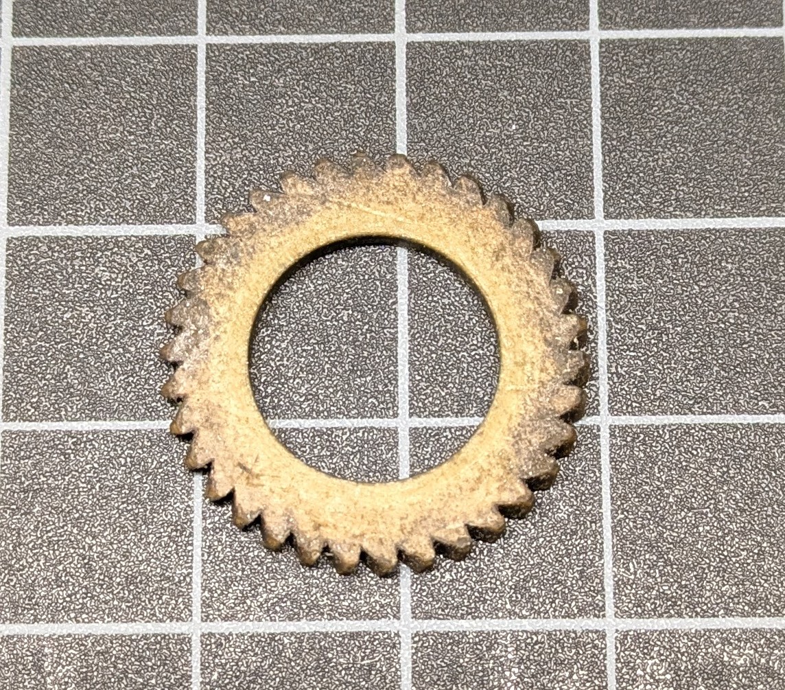 Here is an original Columbia Fiber gear used on many disc Columbia machines. Nice, original, hard-to-find, and ready to install on your machine.