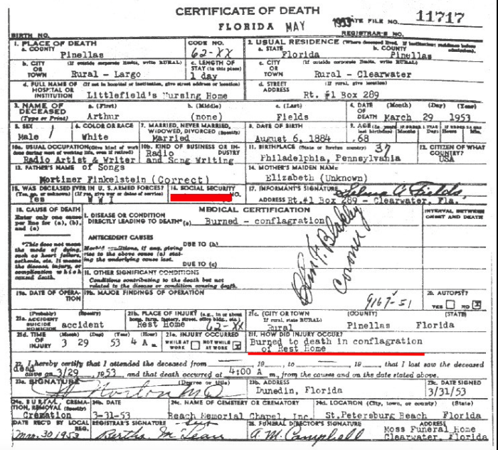 March 29, 1953: Died: Arthur Fields, songwriter and baritone recording artist.
