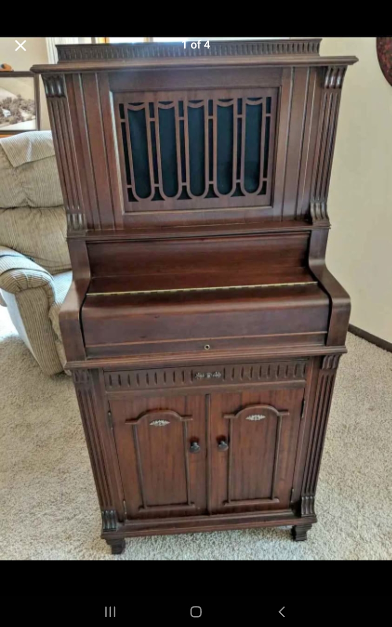 Upright piano shaped phonograph sold under several names including The Musician. Here is a photograph of one I owned several years ago. Unfortunately I do not have a picture of the motor. Probably easier and less expensive to purchase a complete example.