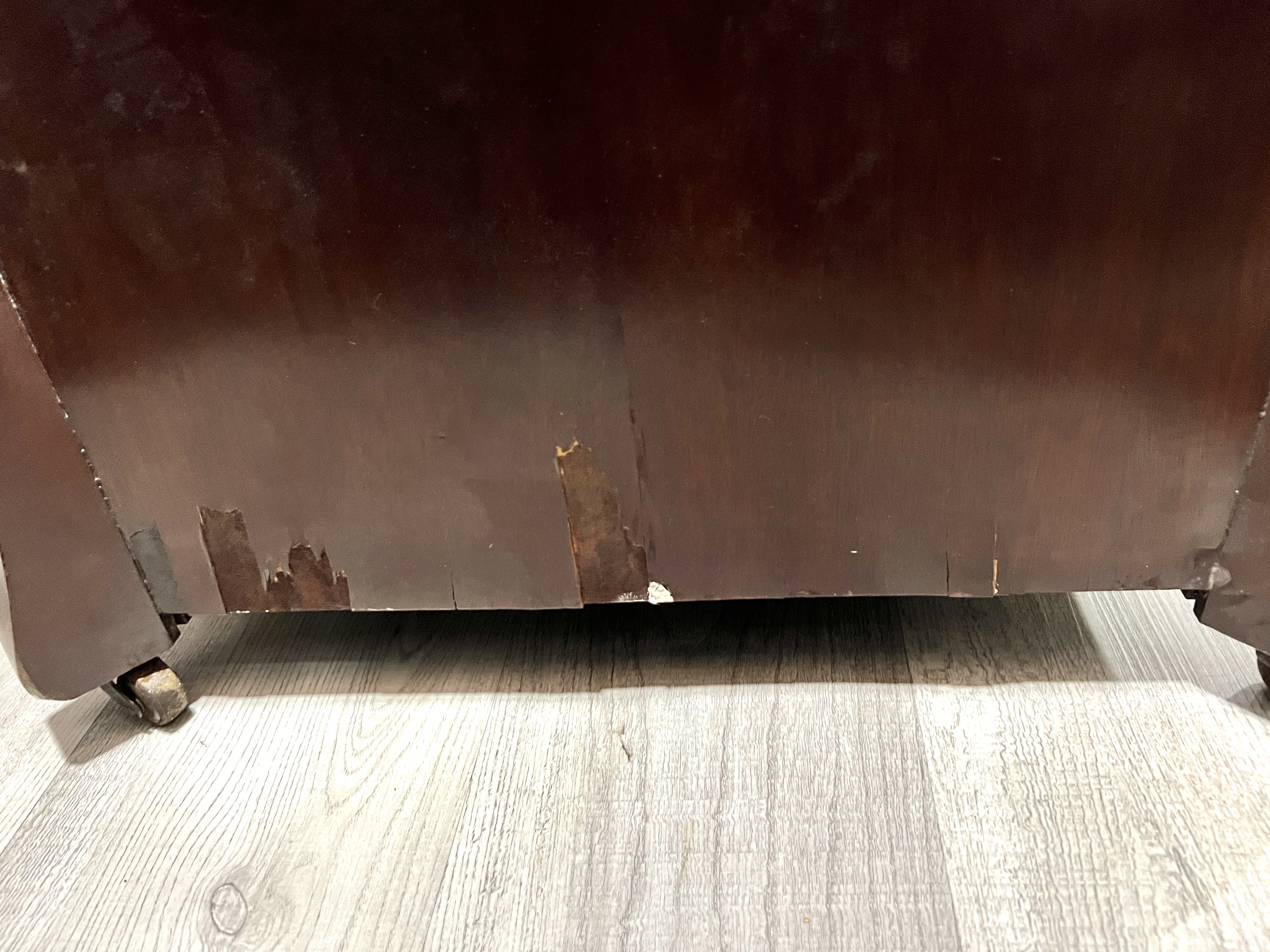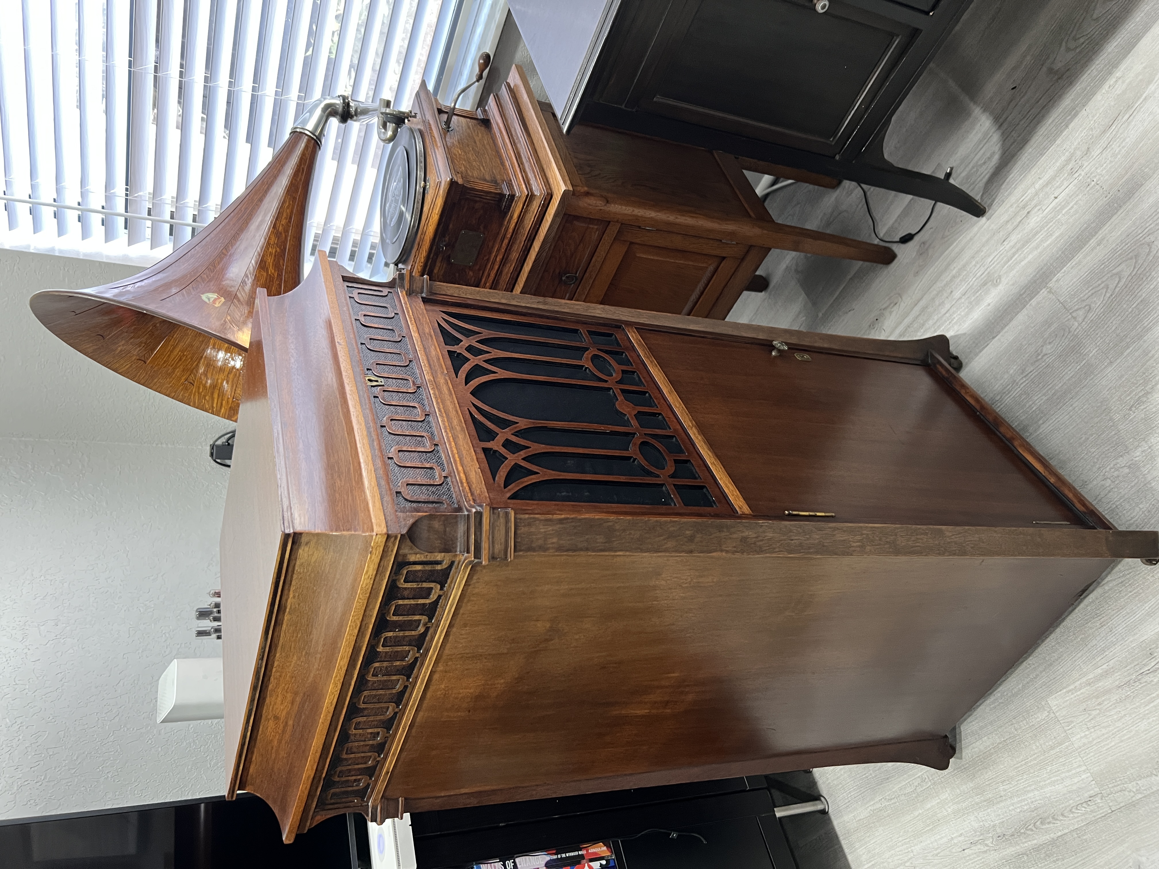 Just got an Edison C-19. It's in pretty good shape but has some missing veneer on the bottom sides and quite a bit on the back. That area around the bottom edge is separated a bit. I can glue it back but am considering something else. I was thinking of applying a ¼-inch thick x 2-inch tall mahogany strip right at the bottom. It will conceal most of the missing veneer and help protect the edge. The C-19 does not have that trim so it would be a modification making it less desirable I imagine. I guess I am looking for opinions if this is a good idea or should I just leave it alone. What are your thoughts?