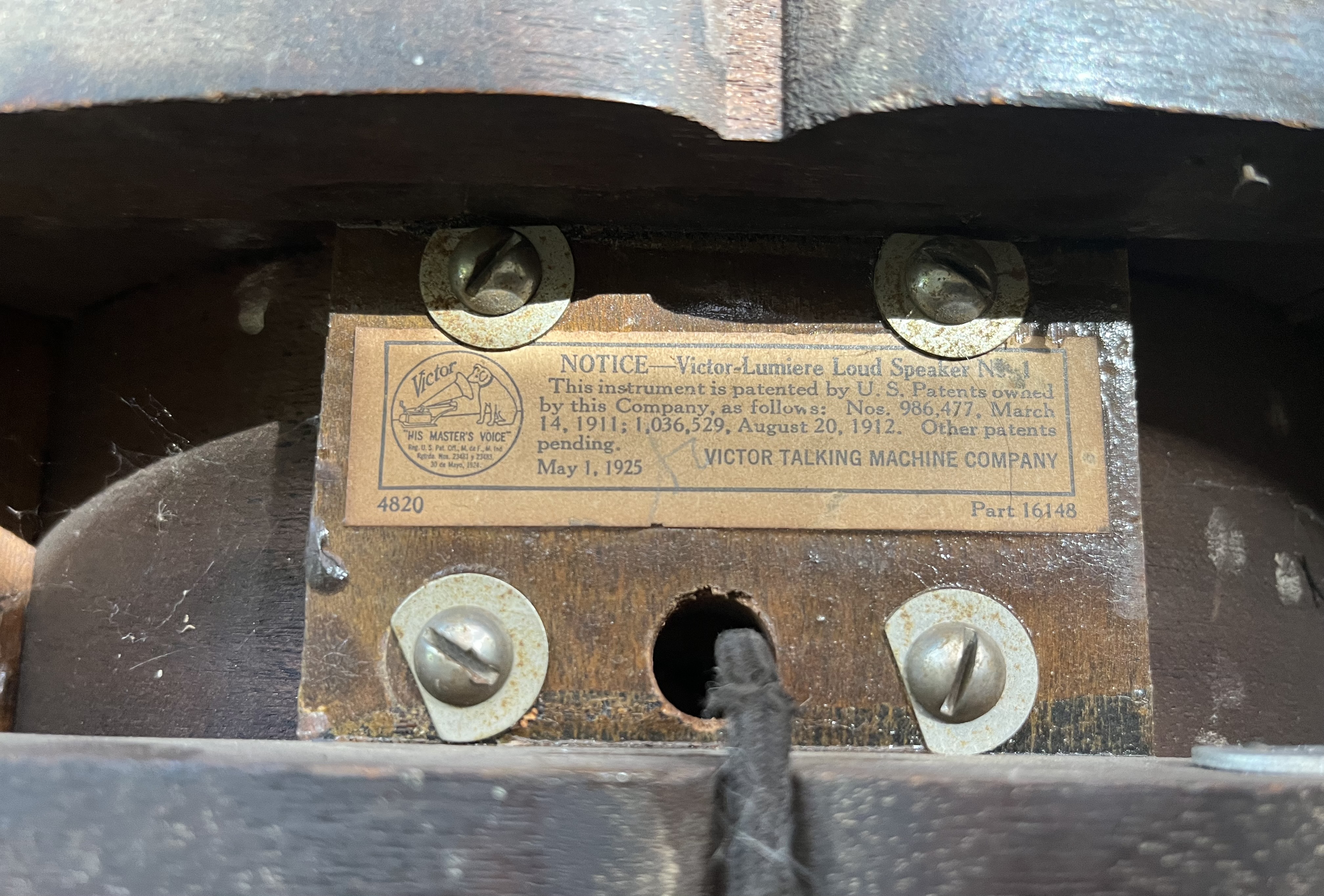 Victor VS-1 Lumiere speaker for sale. The diaphragms on these are virtually always torn-up, this one has been restored with Buford’s exact replicas. Driver coil reads good. In spite of high production numbers these don’t show up very often, I suspect most were tossed when they became obsolete.