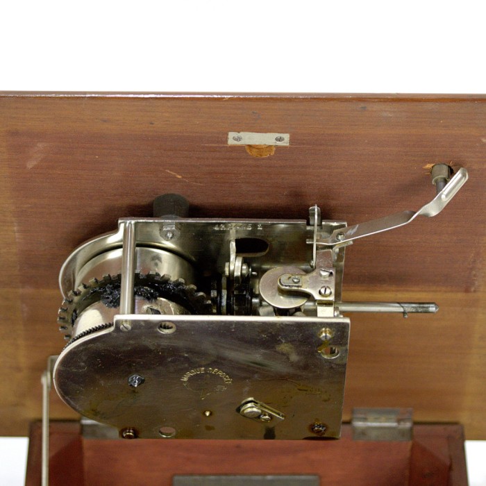 I believe this must be a hybrid of a genuine German made His Master's Voice and Paillard horn gramophone? I have never seen anything similar before, and it would be of big interest to know if anyone else ever has. We can see the Paillard logo on the motor, the cross and the postal horn, and it is a solid 2 spring Paillard motor, and accompanying Paillard speed control and brake, while the bracket, horn, tone arm and Junior Exhibition sound box is HMV. It is the first time I see a Danish made Exhibition Junior, so far I have only seen a couple of ordinary Danish made Exhibition sound boxes.