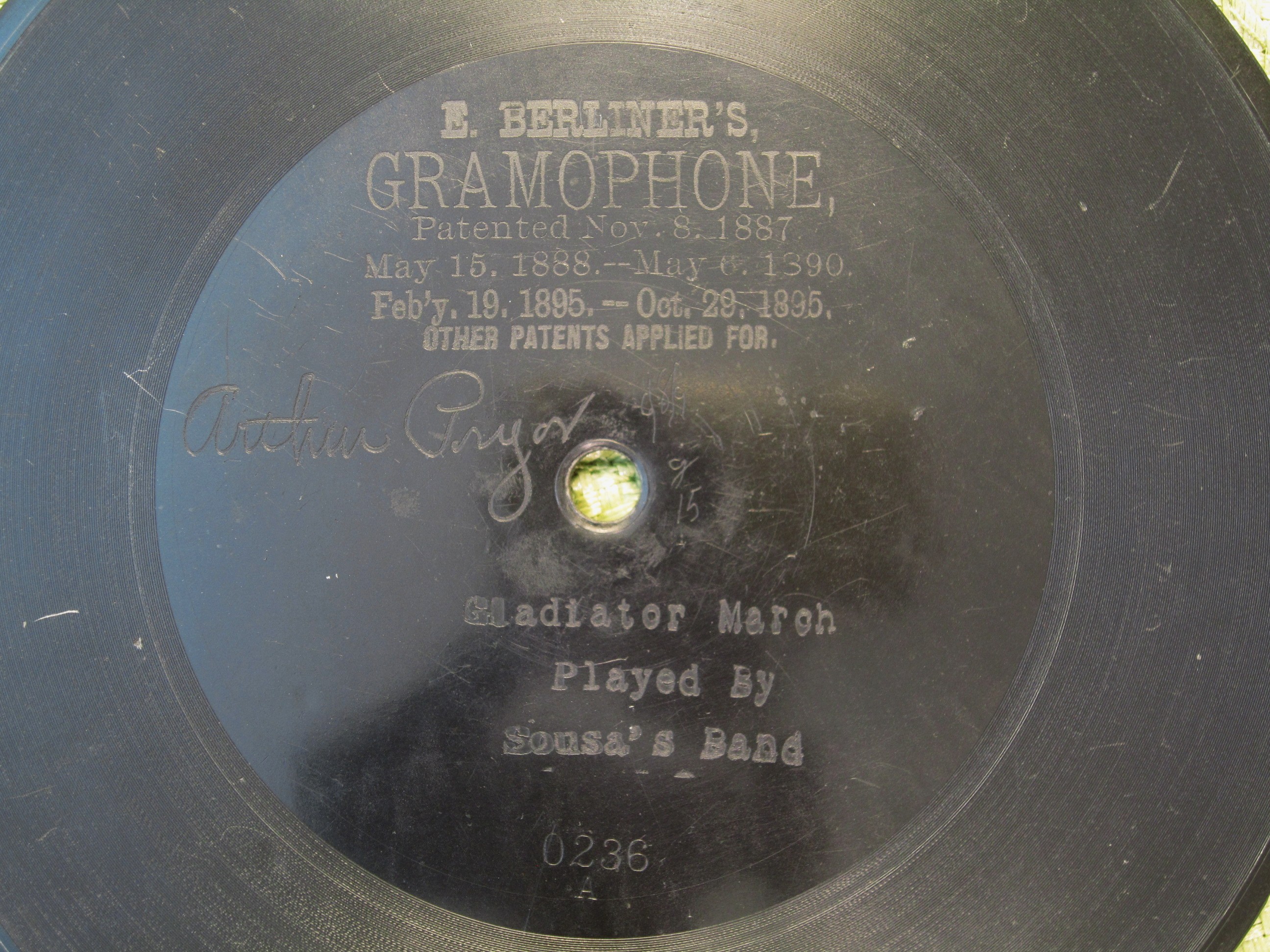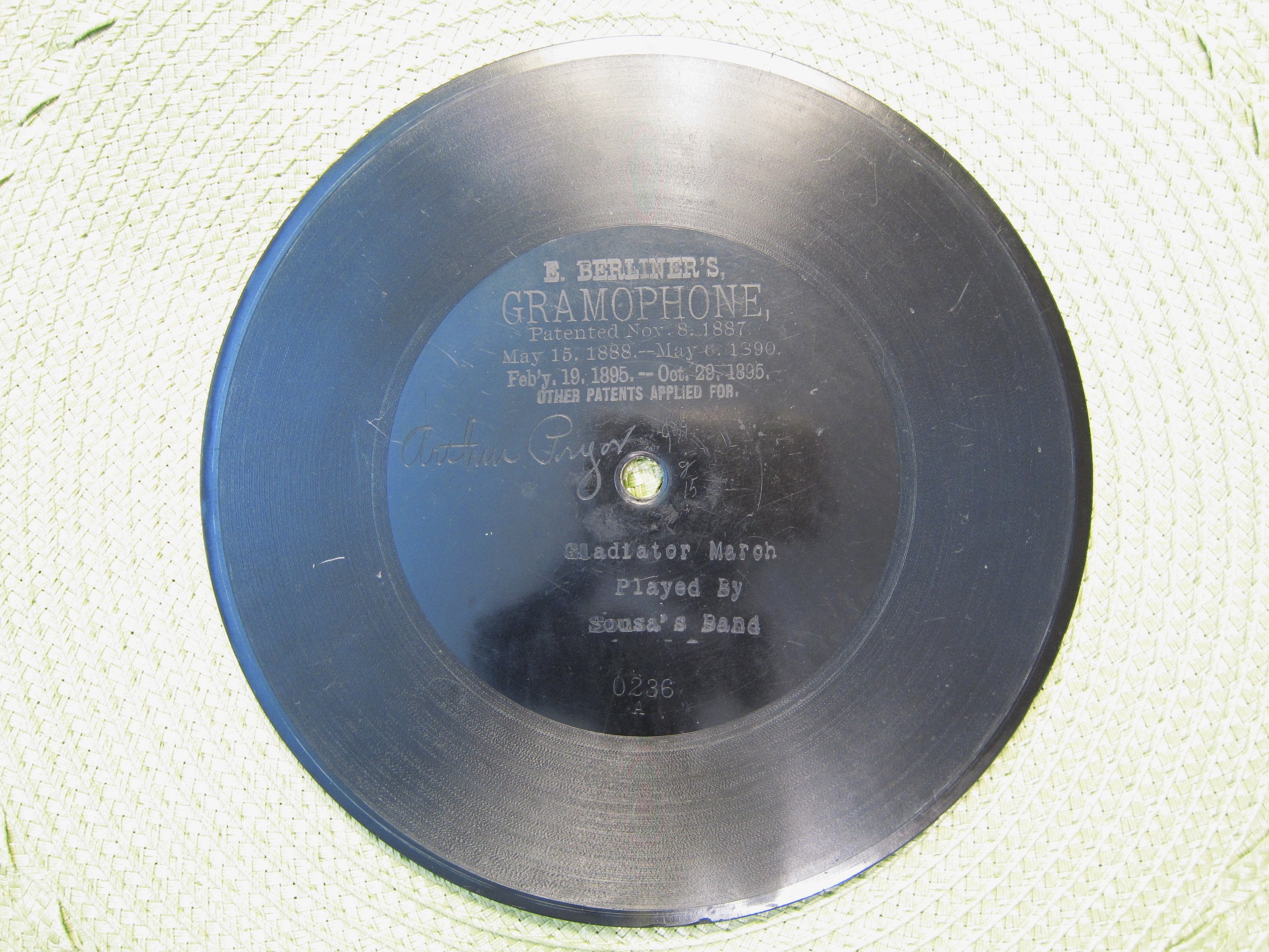 Here is a Reproduction Berliner Gramophone Record made by Don Wilson in 2017.