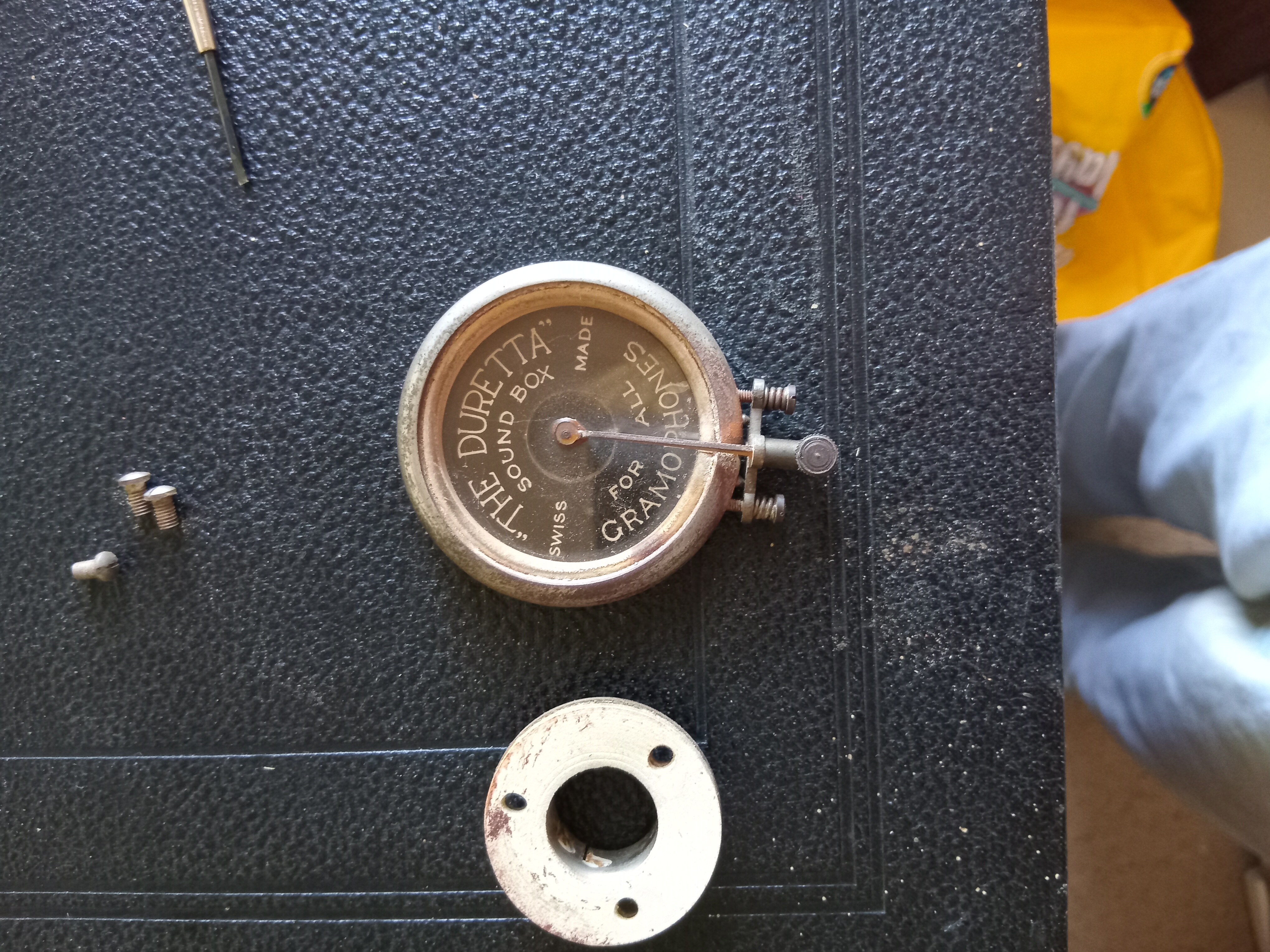 I really only intend to carry out the experiment on a scrap soundbox with little merit. Certainly not the Edison Bell Electrophone or the Gilbert tone reflector.