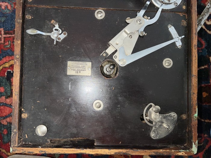 My two 118’s have some small interesting differences. I call them early and late models here, even they are made only a few years apart. Early model is probably made 1935 or before as it hasn’t got the new 1936 onwards tags and year code, later one is from 1938. Late motorboard has got extra holes for regulator and autostop lever. Autostop lever from a 109 works perfectly on the early one and matches olds screw holes. Early model has a chrome motorboard lift knob (this one is from a 109 and need chrome plating), late one is florentine bronze. Lock latches are different. Luckily had a black one (yes, gonna be chromed) that is identical to the long lost original and fits the screw holes and indentions of the original case.