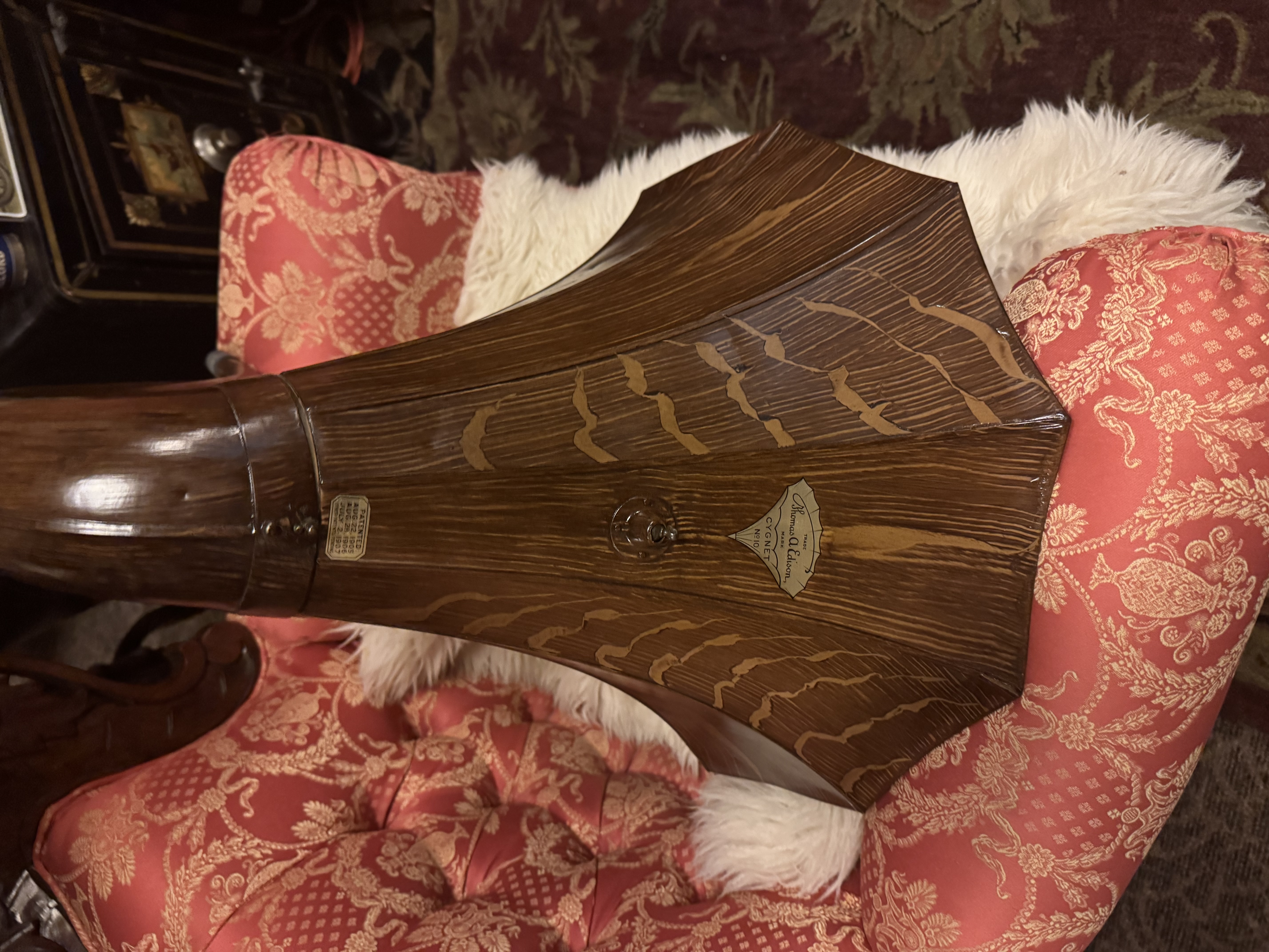 I am selling this horn for a friend with free delivery to Mid West show or actual cost of shipping at your expense It is a Regrained in quatersawn oak #10 Edison cygnet horn. Not for sure who did the repaint but it is very nice, maybe an older greg cline repaint My friend says he wants $600 but i know he will take $500