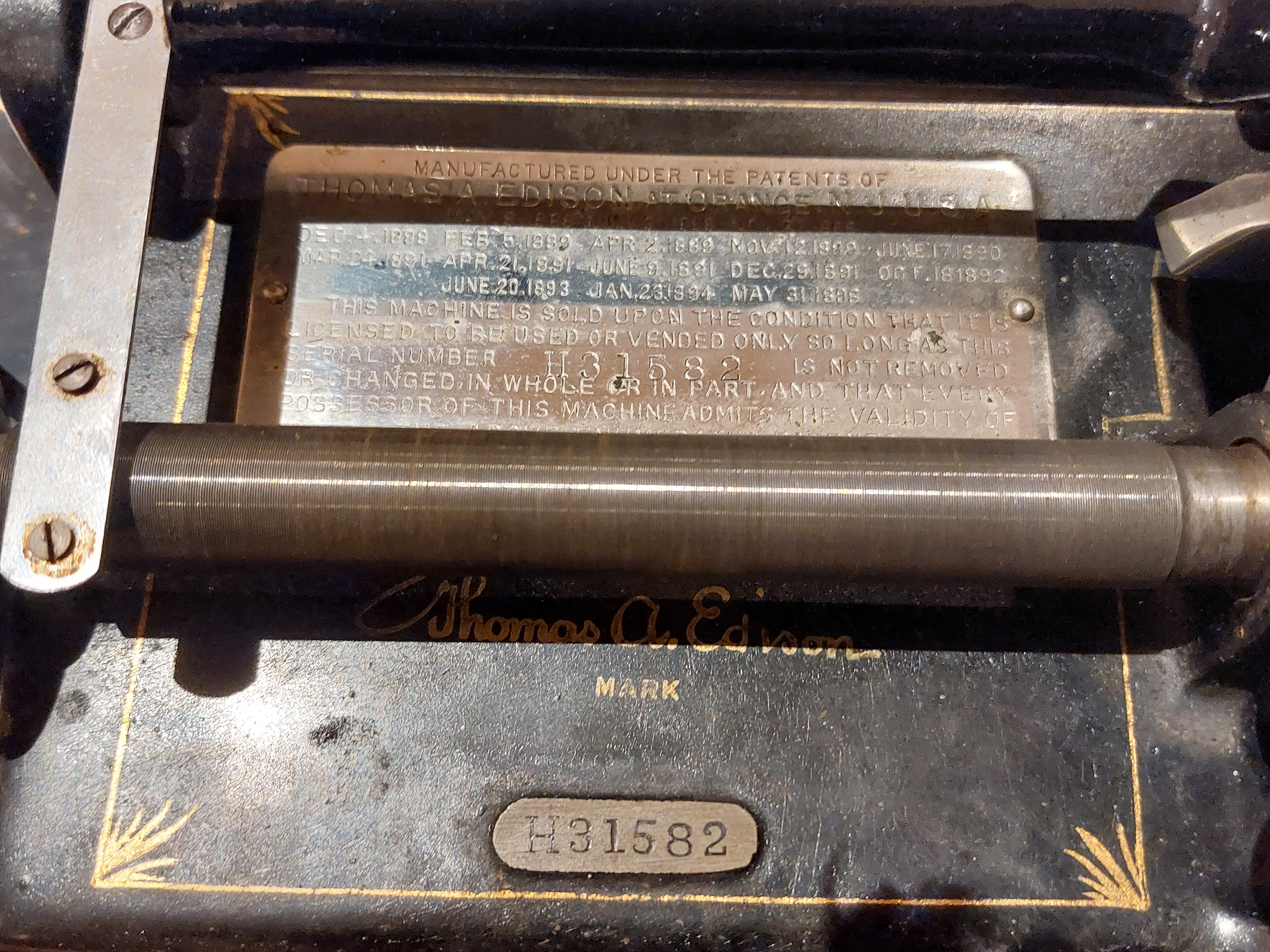 According to original Edison sales data, Home #31582 left the factory in June 1900. A detailed illustrated article on all models of the Edison Home (A-F) appeared in the June 2024 issue of the APS magazine. This article includes a dating chart, and similar articles with dating charts have appeared on the Gem, Standard, Spring-Motor/Triumph, and Concert.
