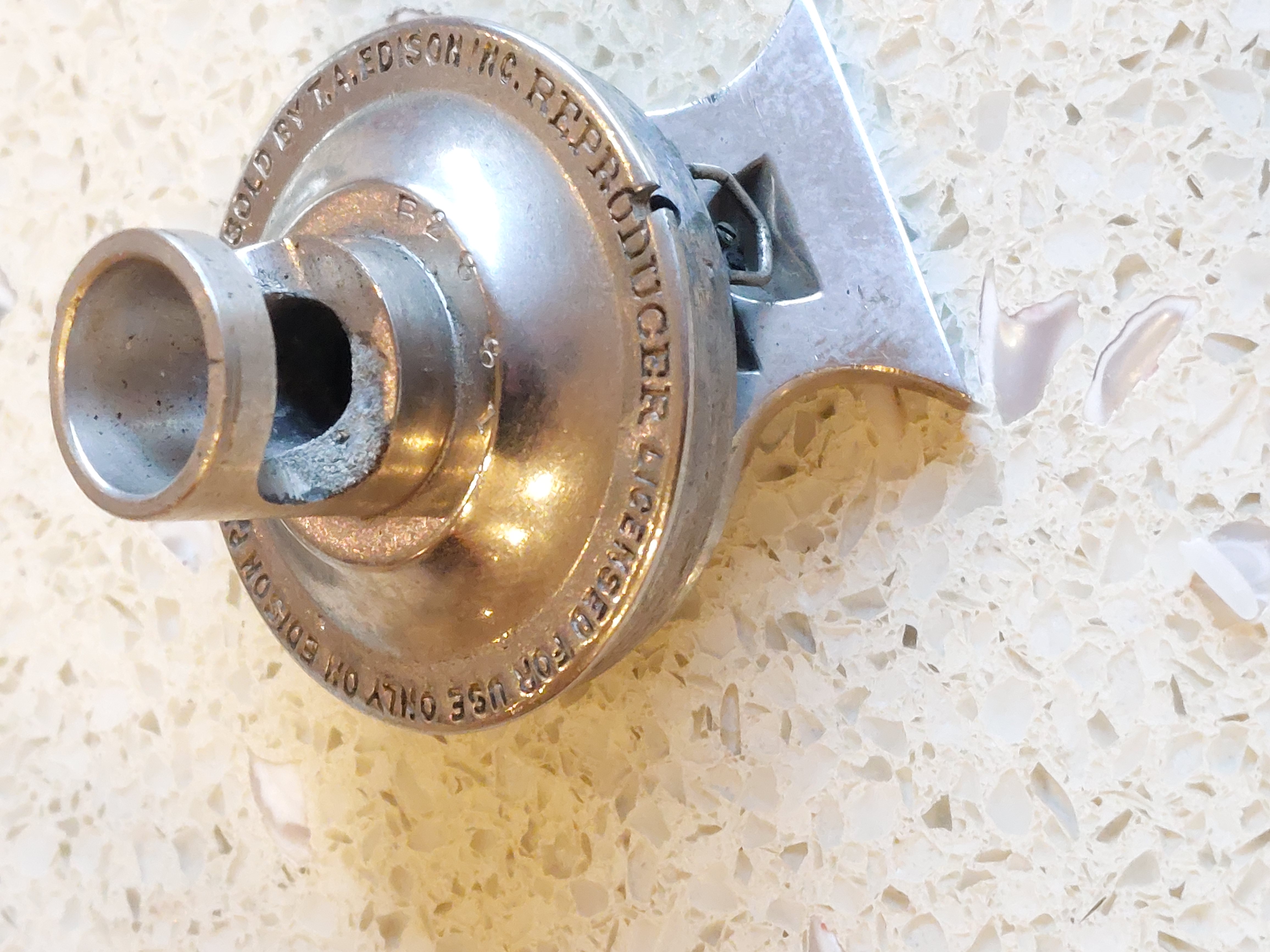 That's quite an odd (and uncommon!) Reproducer to be found on a suitcase Home! It was originally equipped with an Edison Automatic Reproducer, which can be seen in one of the free Introductory Articles on the APS website:
