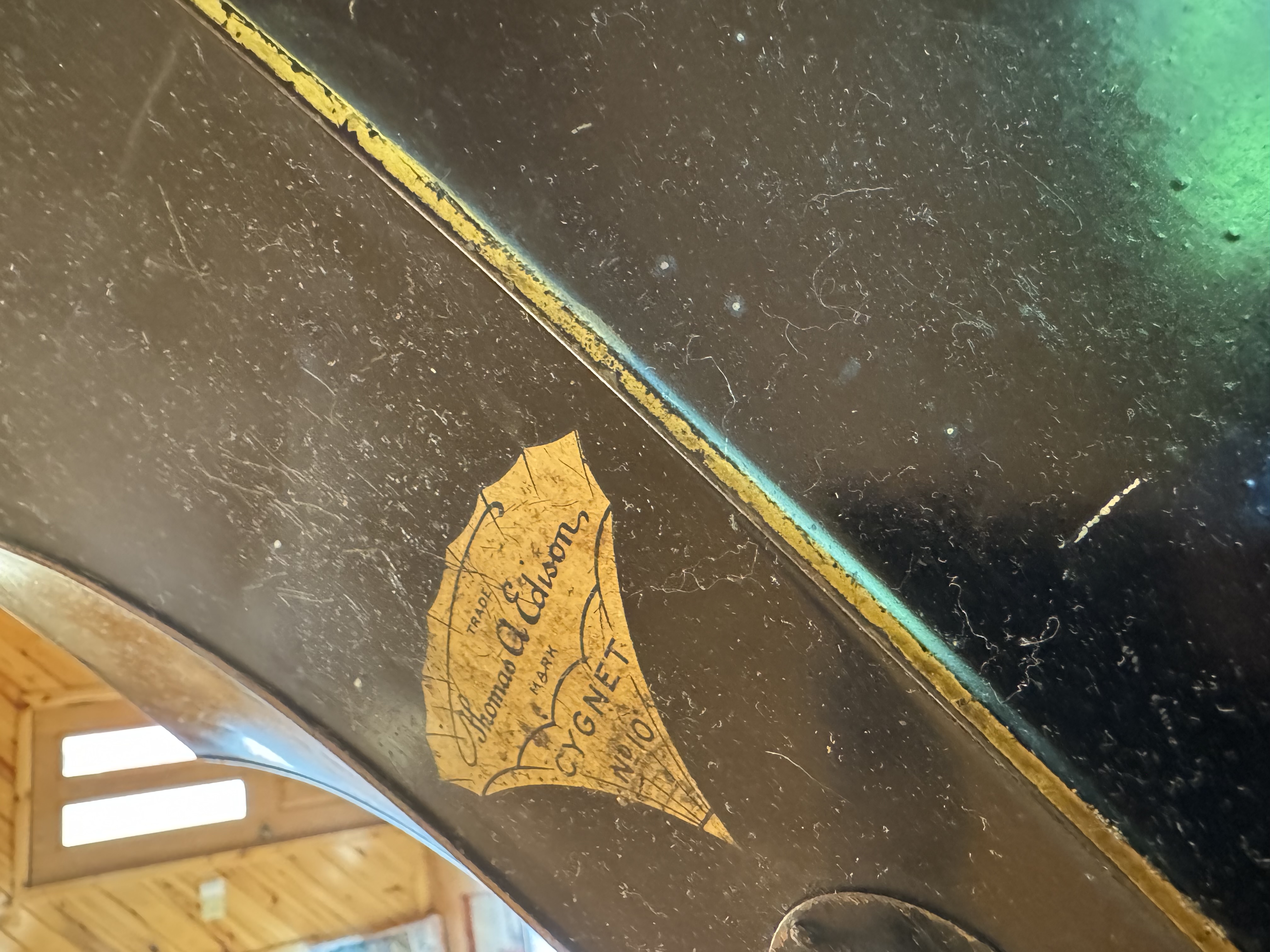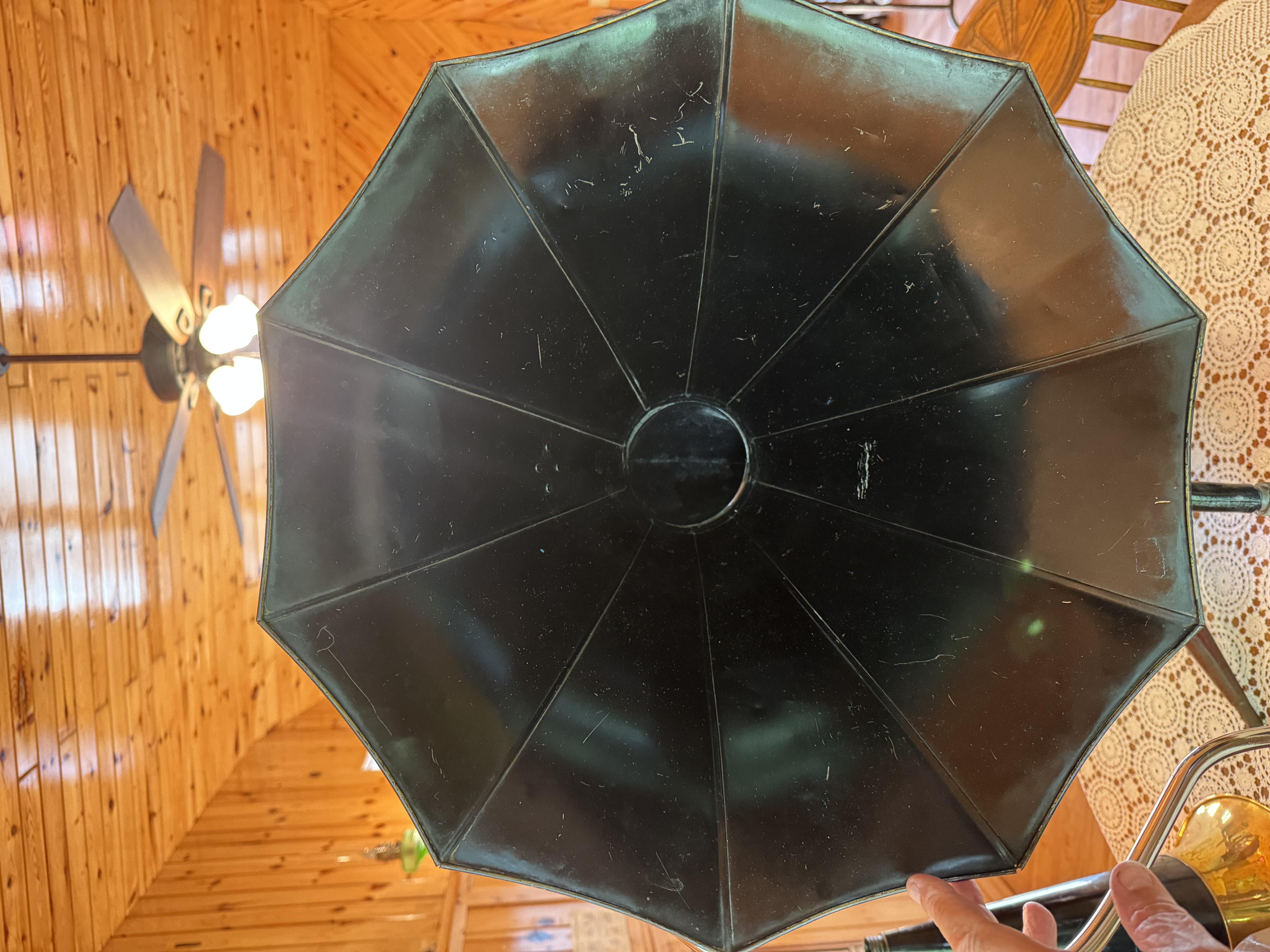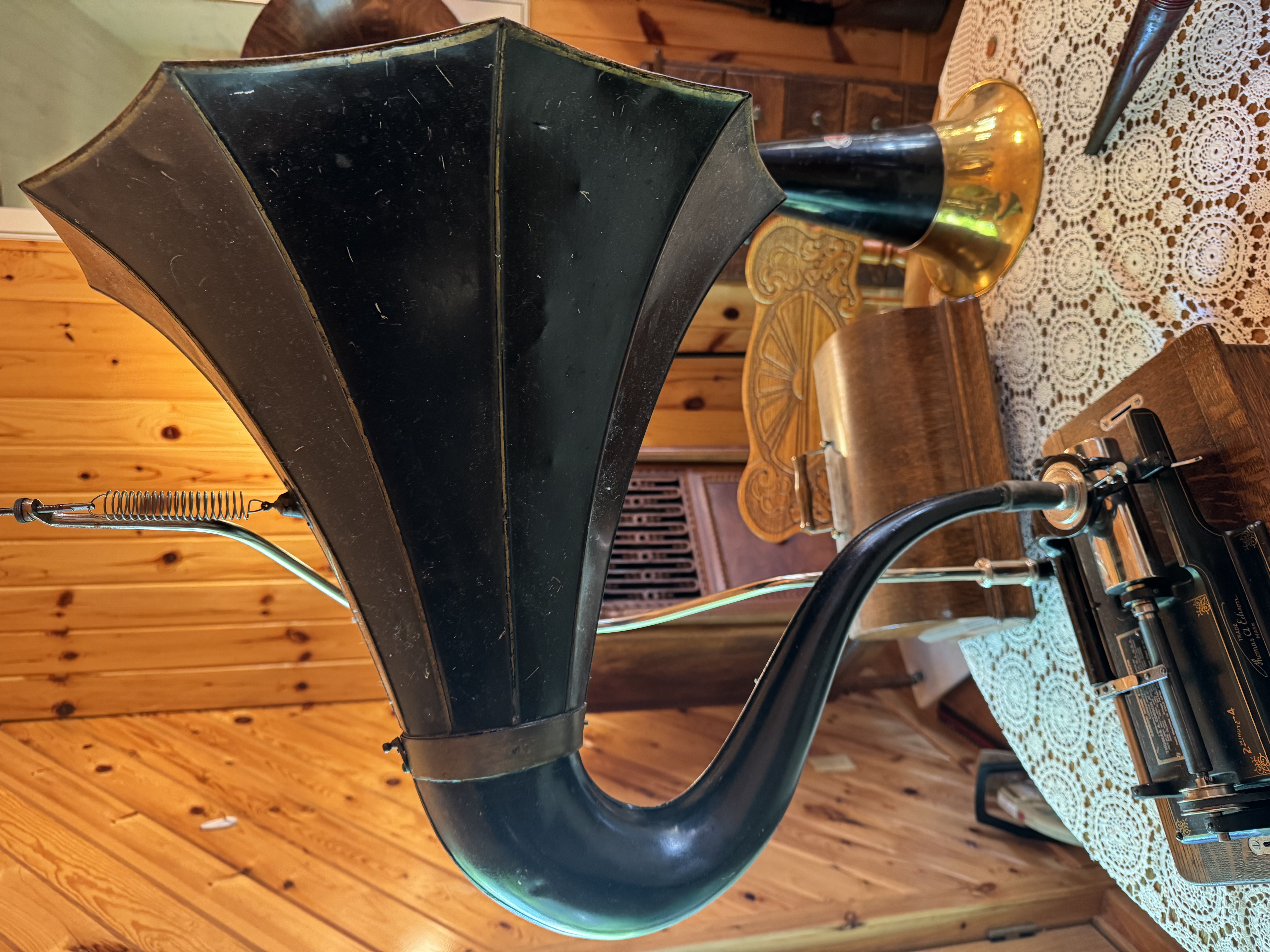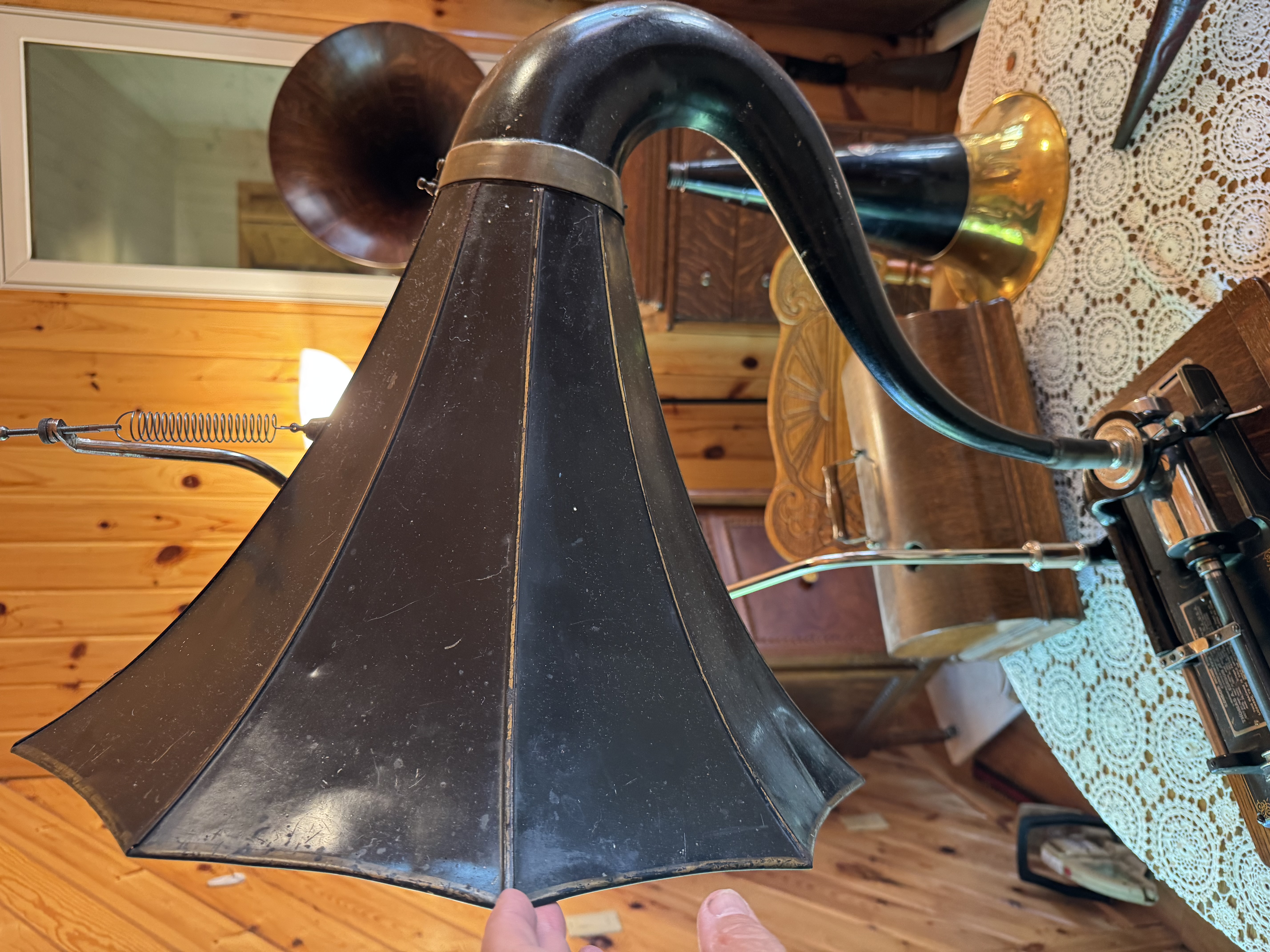 Edison 10 Panel Cygnet horn. Fair condition. Original paint has some rust. Elbow has been repainted. Some cracks in neck of elbow but works fine. Free Schaumberg delivery.