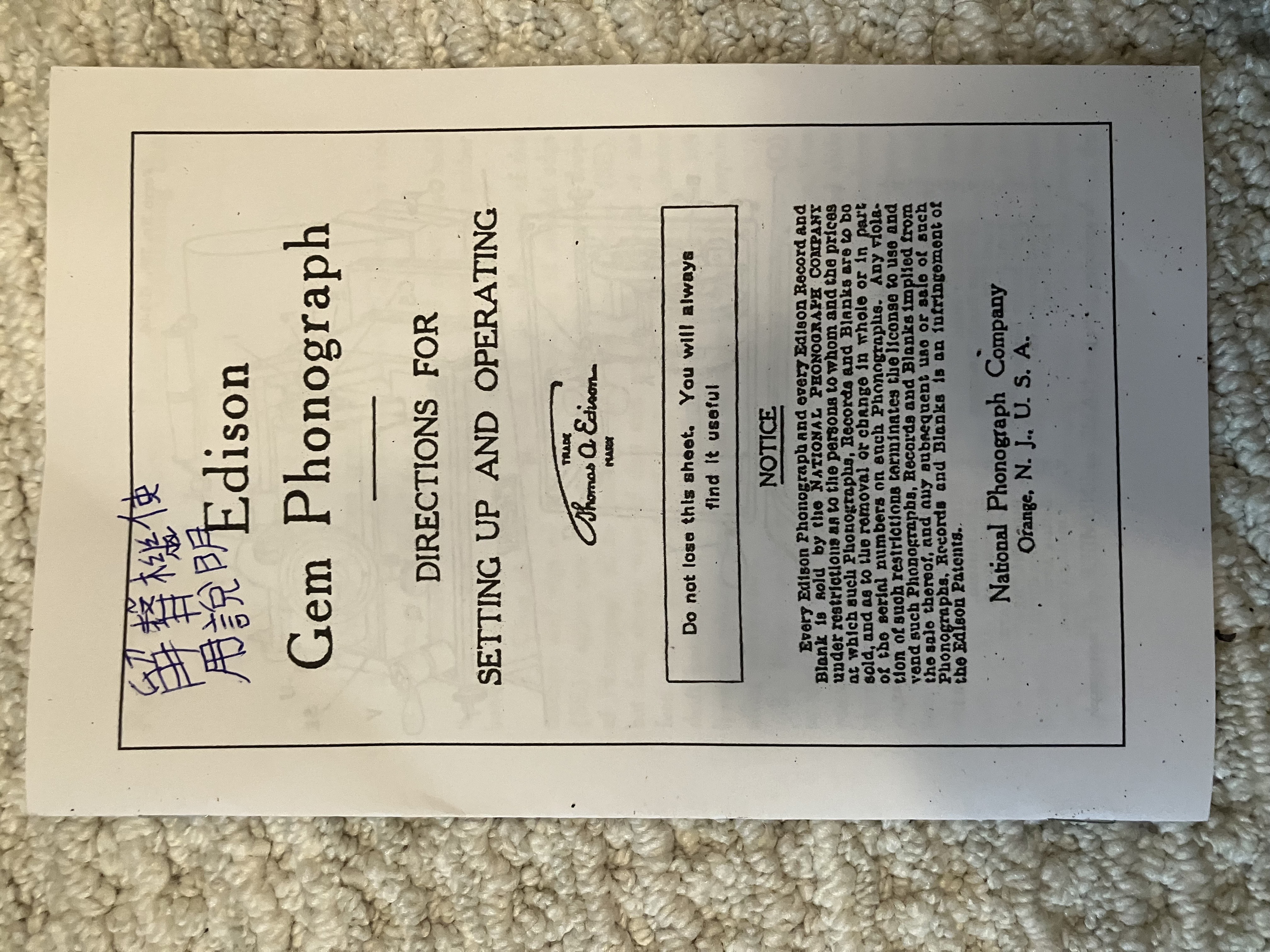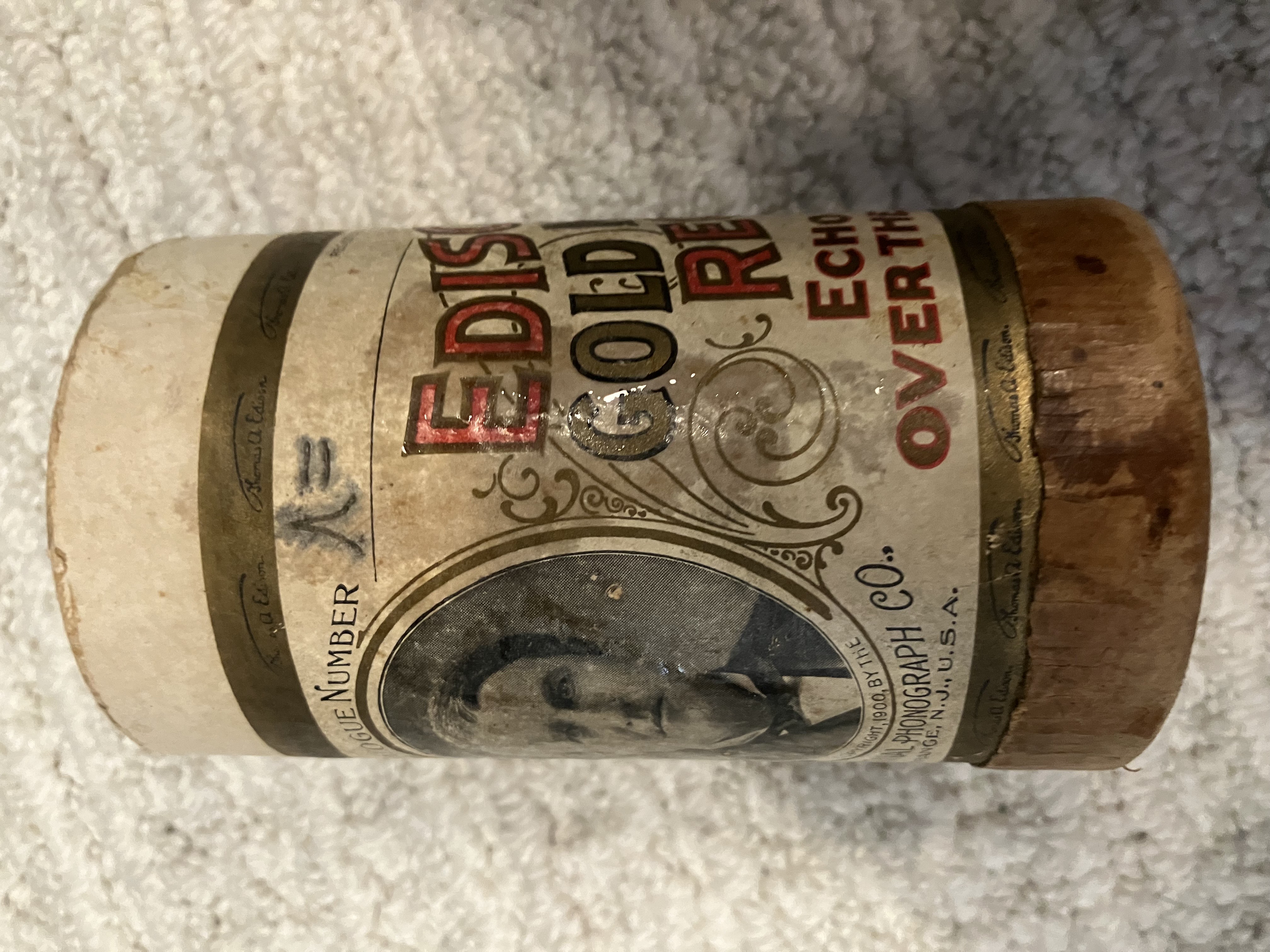 There were 2 cylinder containers inside, 1 has a cylinder in it. The first container reads "Song 1" and also "Edison Records". The second container reads "People Two"- both are sloppily written. I think the second one is incorrect.