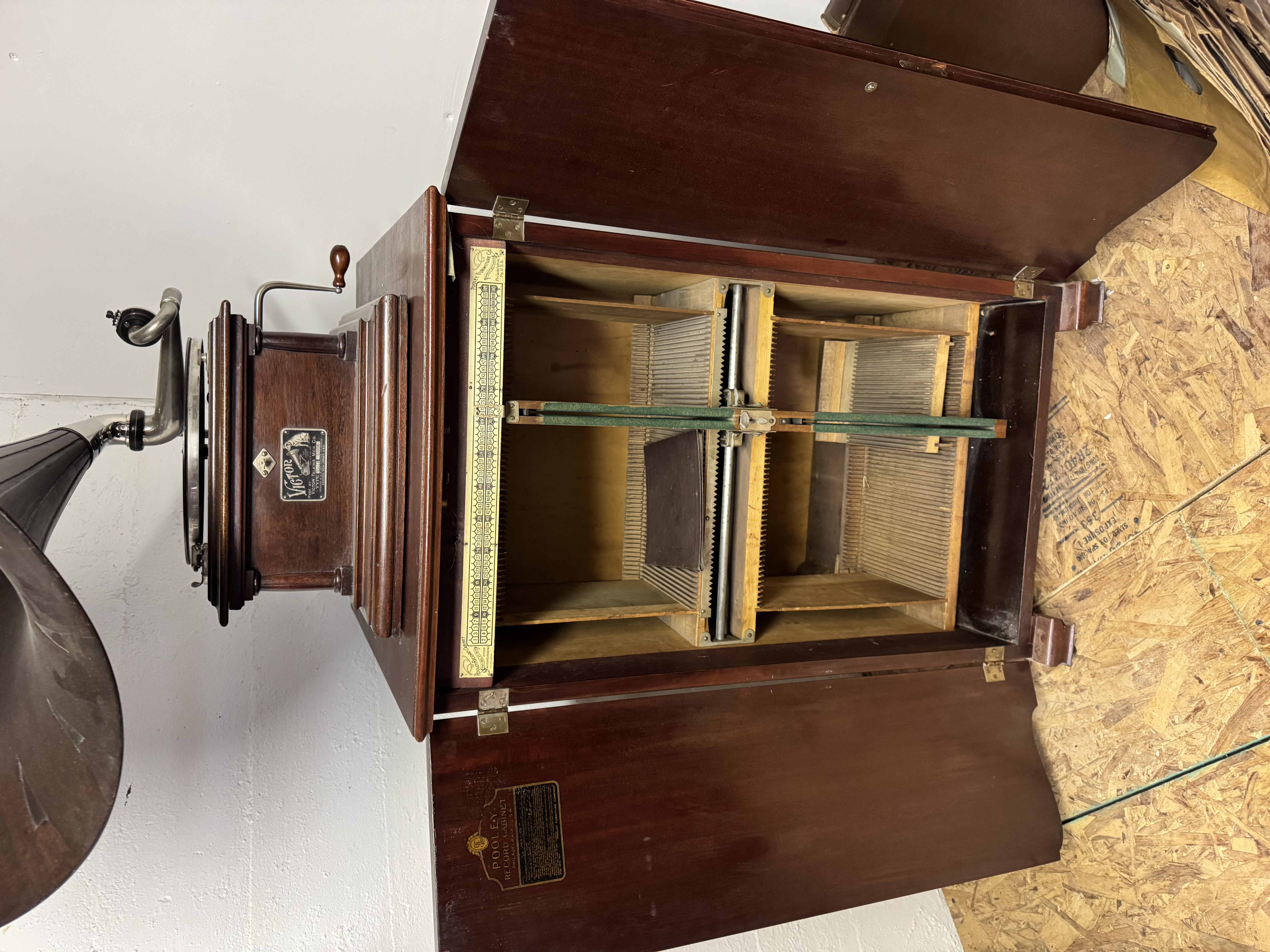 Re: FOR SALE: MAHOGANY POOLEY DISC CABINET FOR LARGE MACHINE$ 375.00 - Schaumberg Delivery