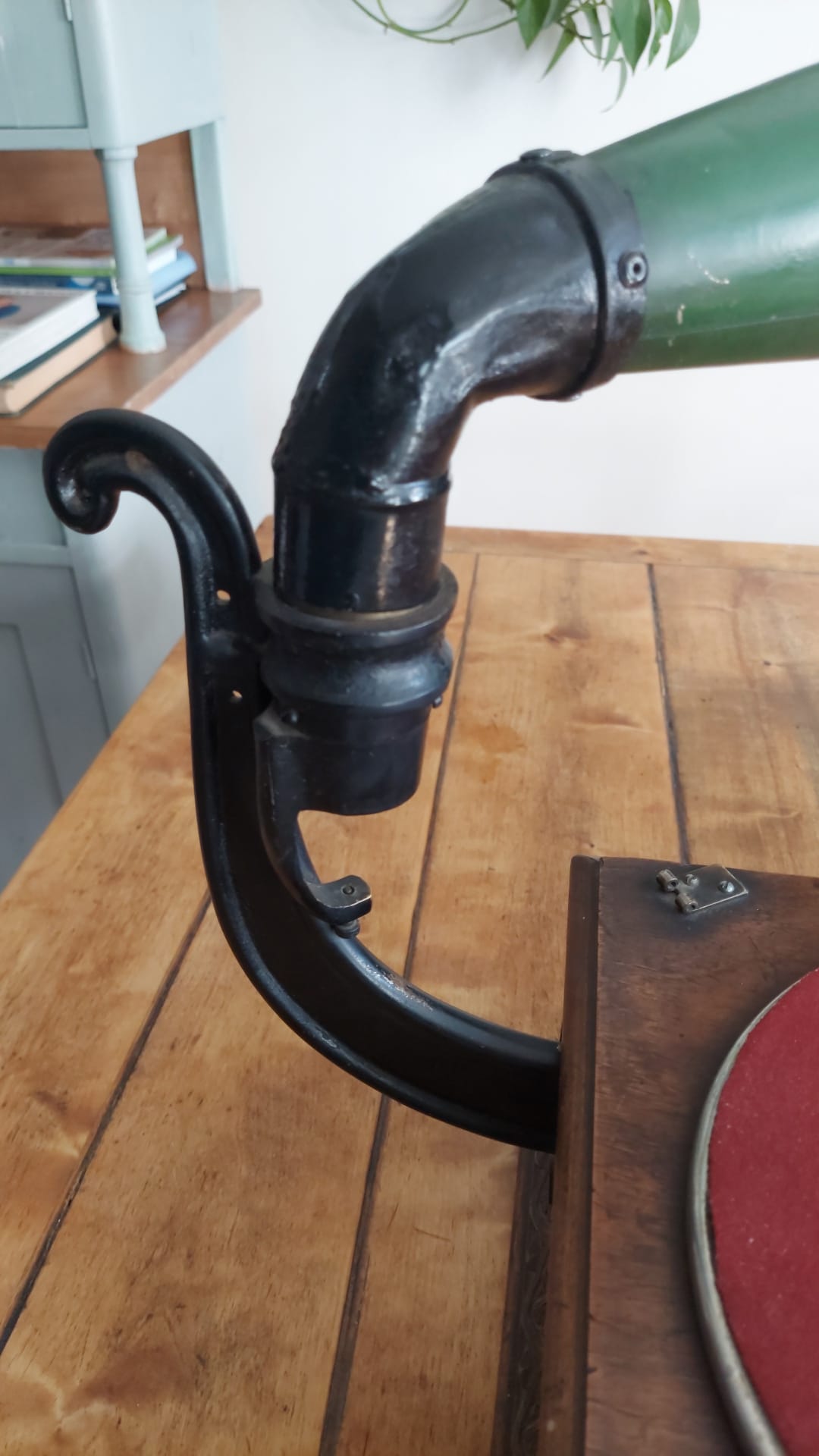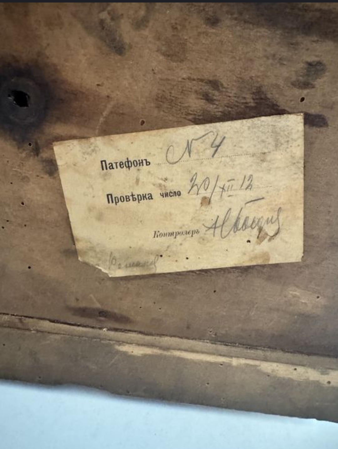 In the case in question, everything is original except the motor, which comes from a soviet copy of the HMV suitcase gramophone.