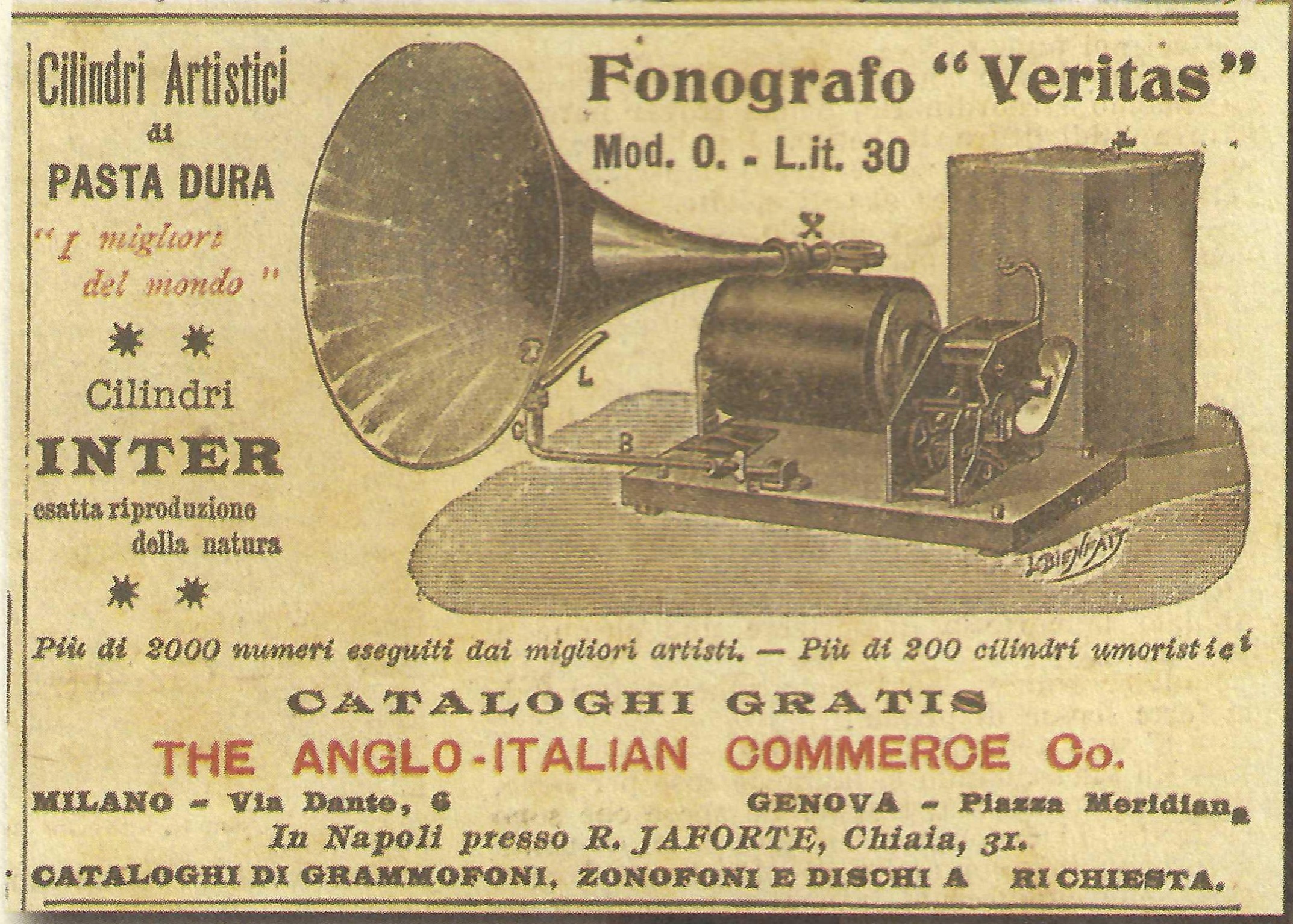 I am selling a VERY RARE cylinder from the ANGLO-ITALIAN COMMERCE COMPANY - Genoa - Milan -