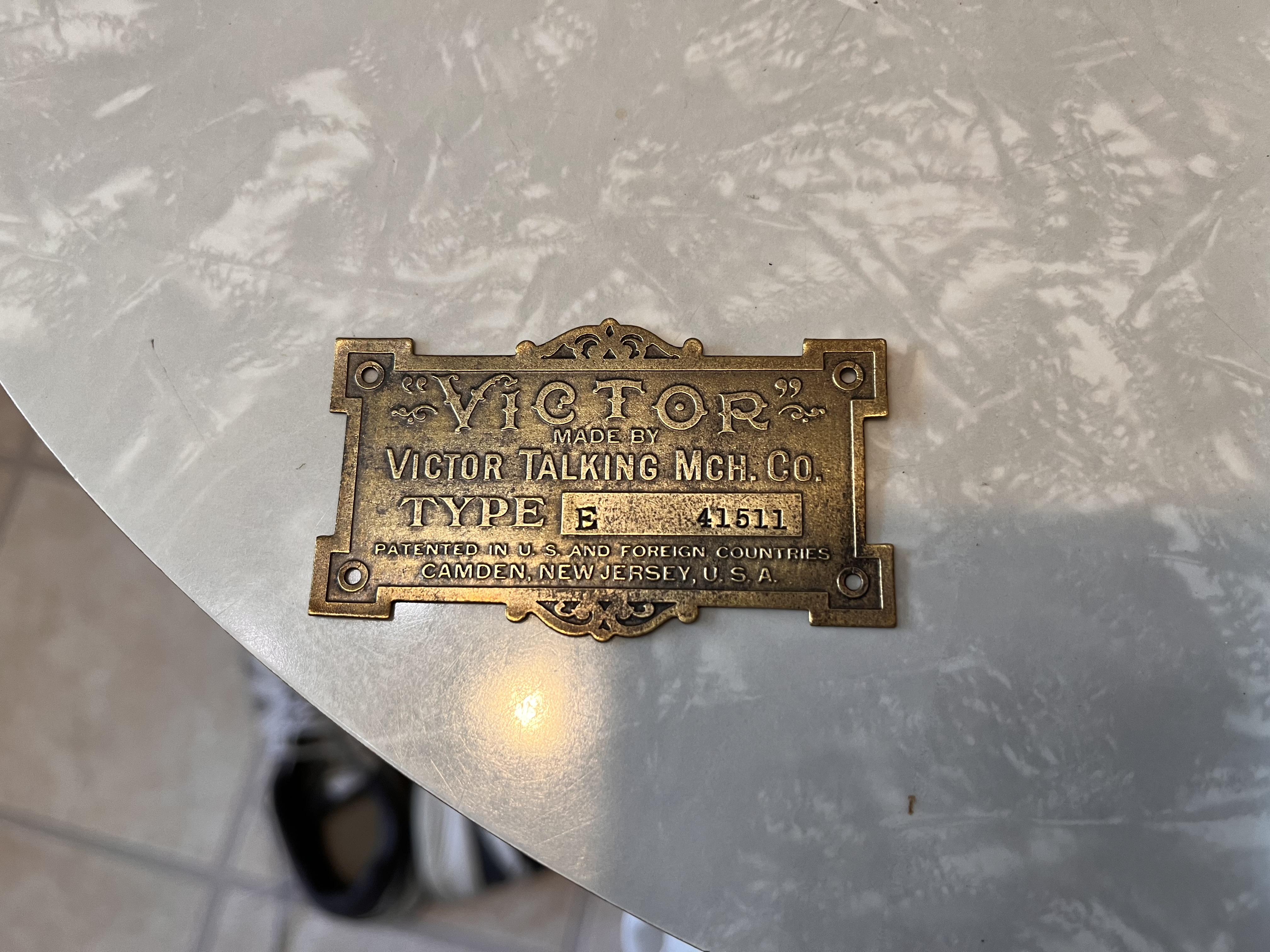 There are Two Victor name plates. They are both from a Victor E. The first is the nameplate which says “Type E 41511”. It is in very good condition but all the black paint is missing. I’m assuming that they all originally had the black paint. I want $65 for this plate.SOLD