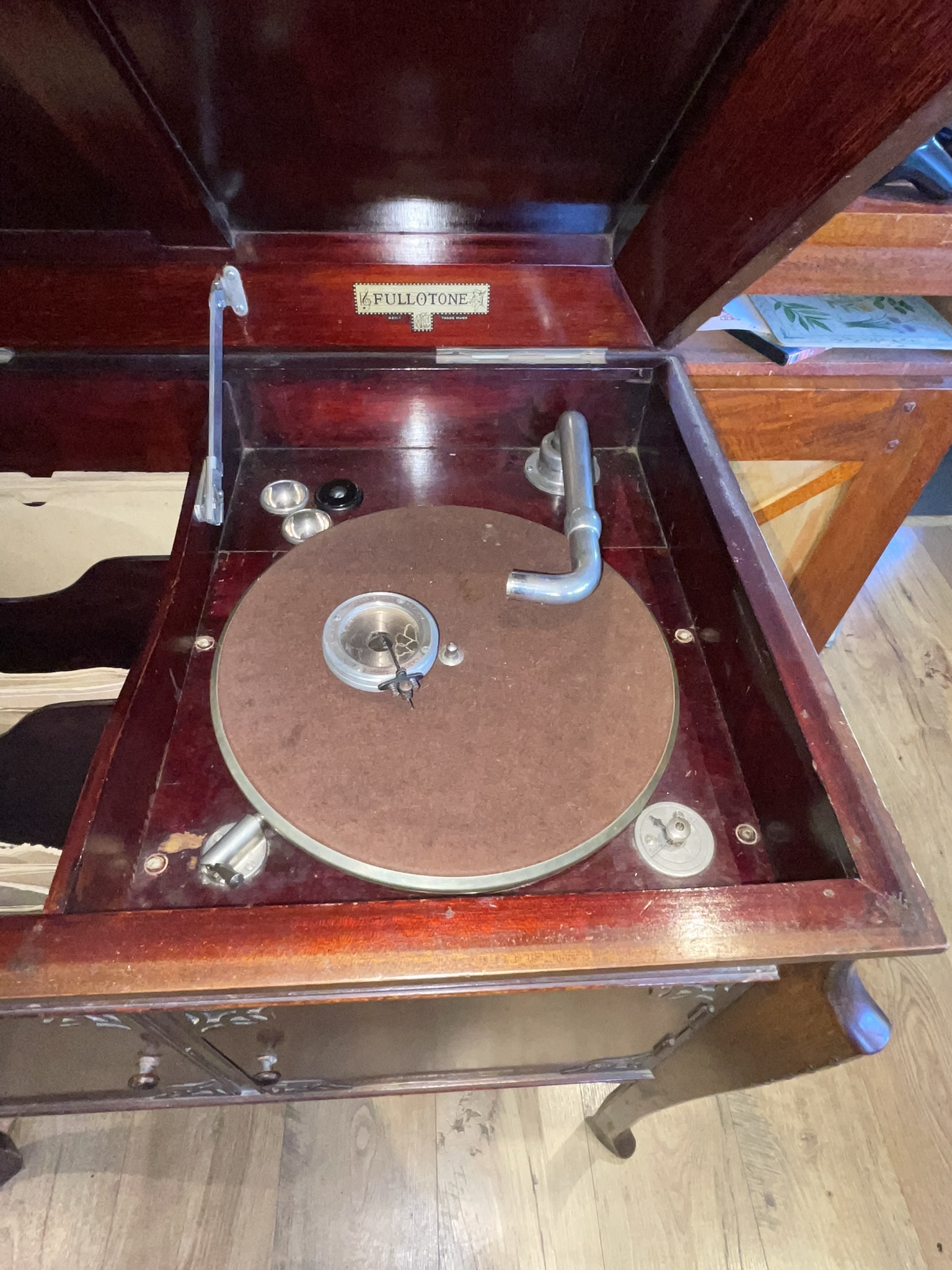 As for the looks of the machine, I must say I really like difference it has with more mainstream models of the time such as that of HMV and Columbia. In some ways it's more simple, maybe cheaper and I am aware that these companies bought in parts to put into their own cabinets which is probably why. I know this is a long shot considering these machines somewhat varied in styles etc but cold anyone place an estimated date of when this machine was released - even the decade would be helpful. I don't know if these machines had names but if so what was this one called? I have looked extensively but I can't seem to find a similar Fullotone gramophone in this cabinet.