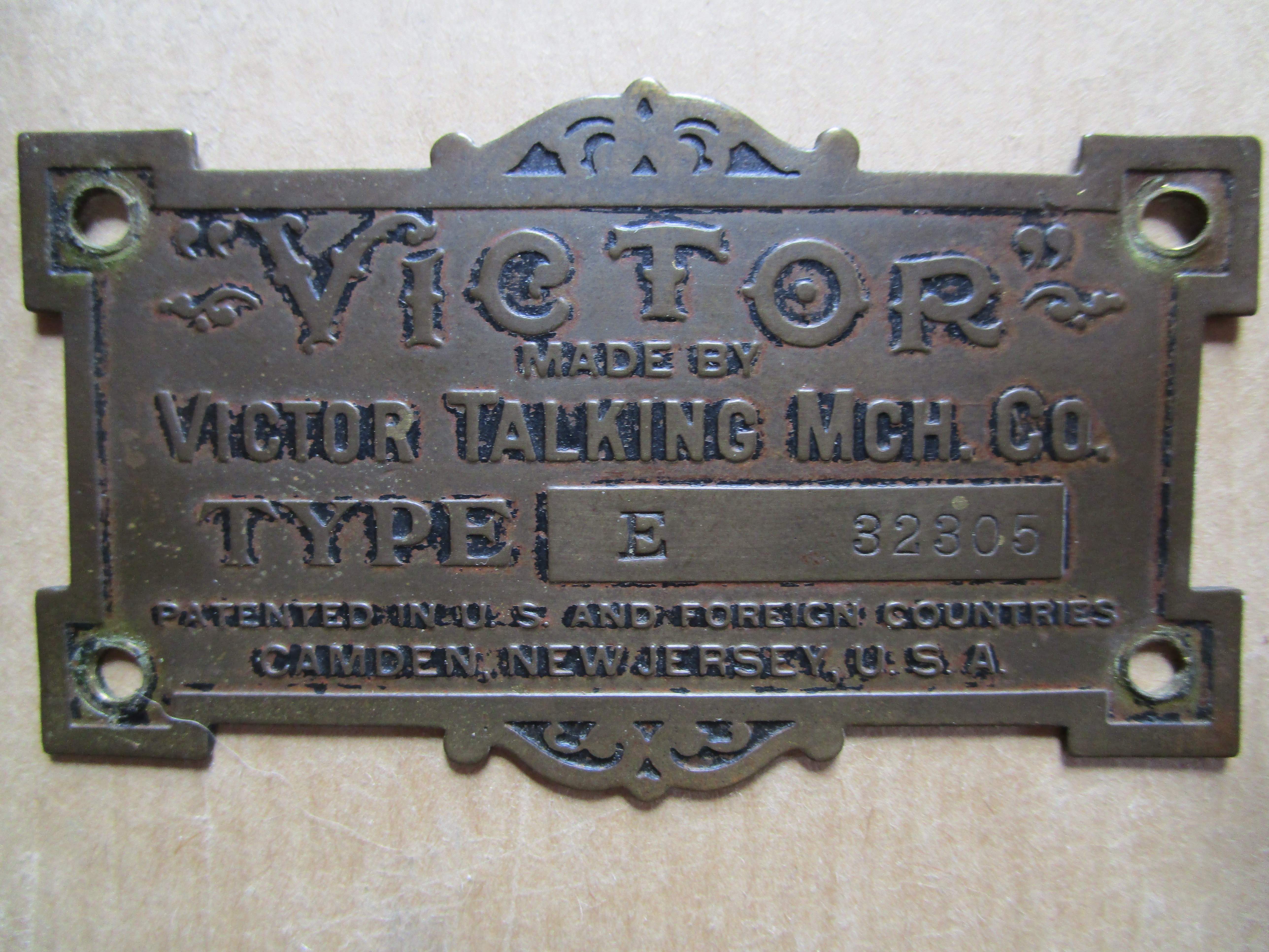 FOR SALE: Pre-Dog Victor Type E ID Plate - $75