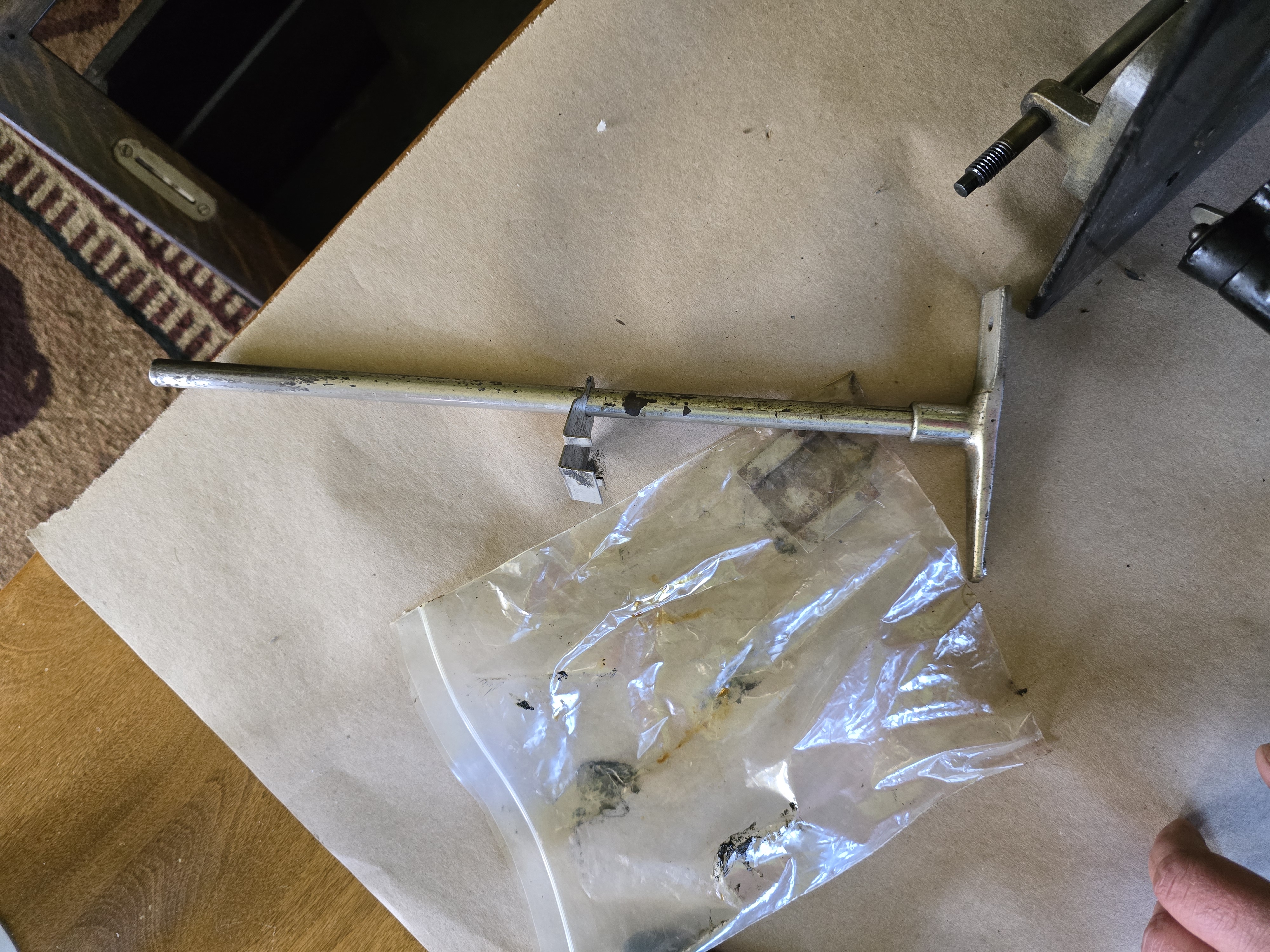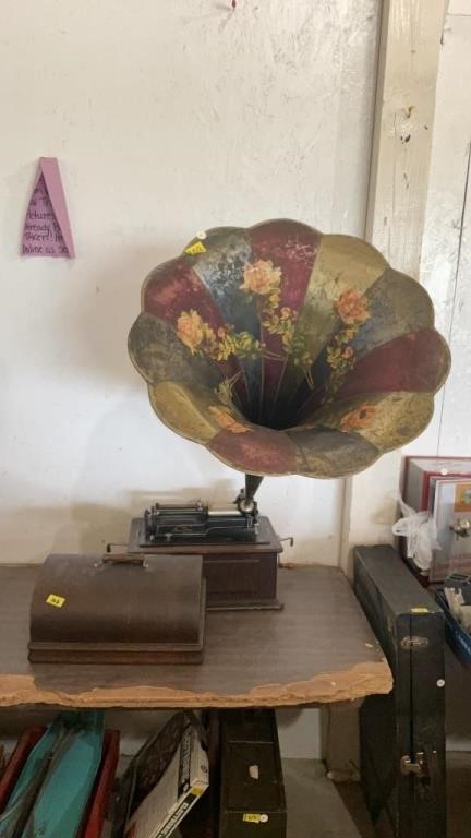 So I can't leave anything alone and have to figure out how it works. So I took the phonograph out of the box (I didn't know i could just lift the top until after that.) Anyways I found the bottom part of a crane inside so hopefully it wasn't used without it. Maybe I can make something up for the top part.