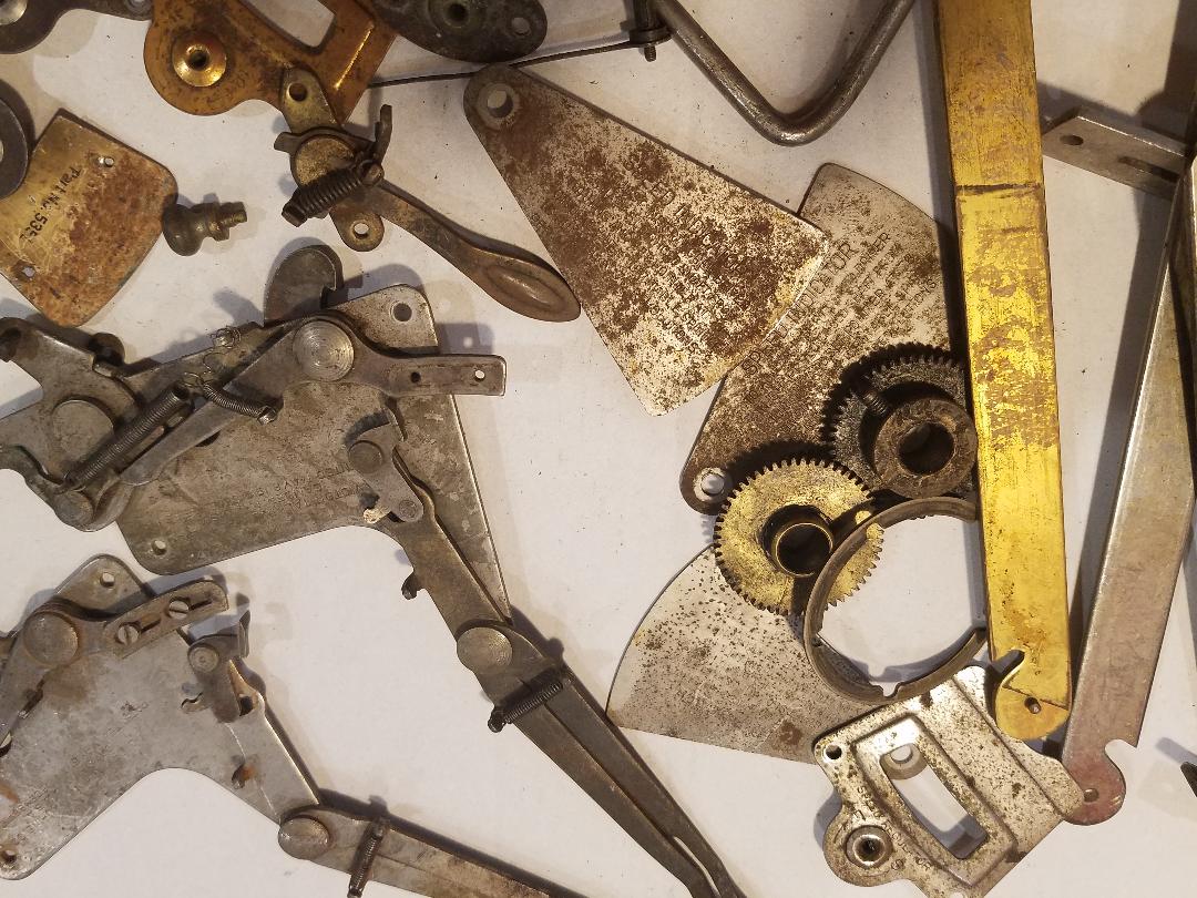 Group of parts-- Orthophonic brake parts, lid supports, speed indicators, and more.