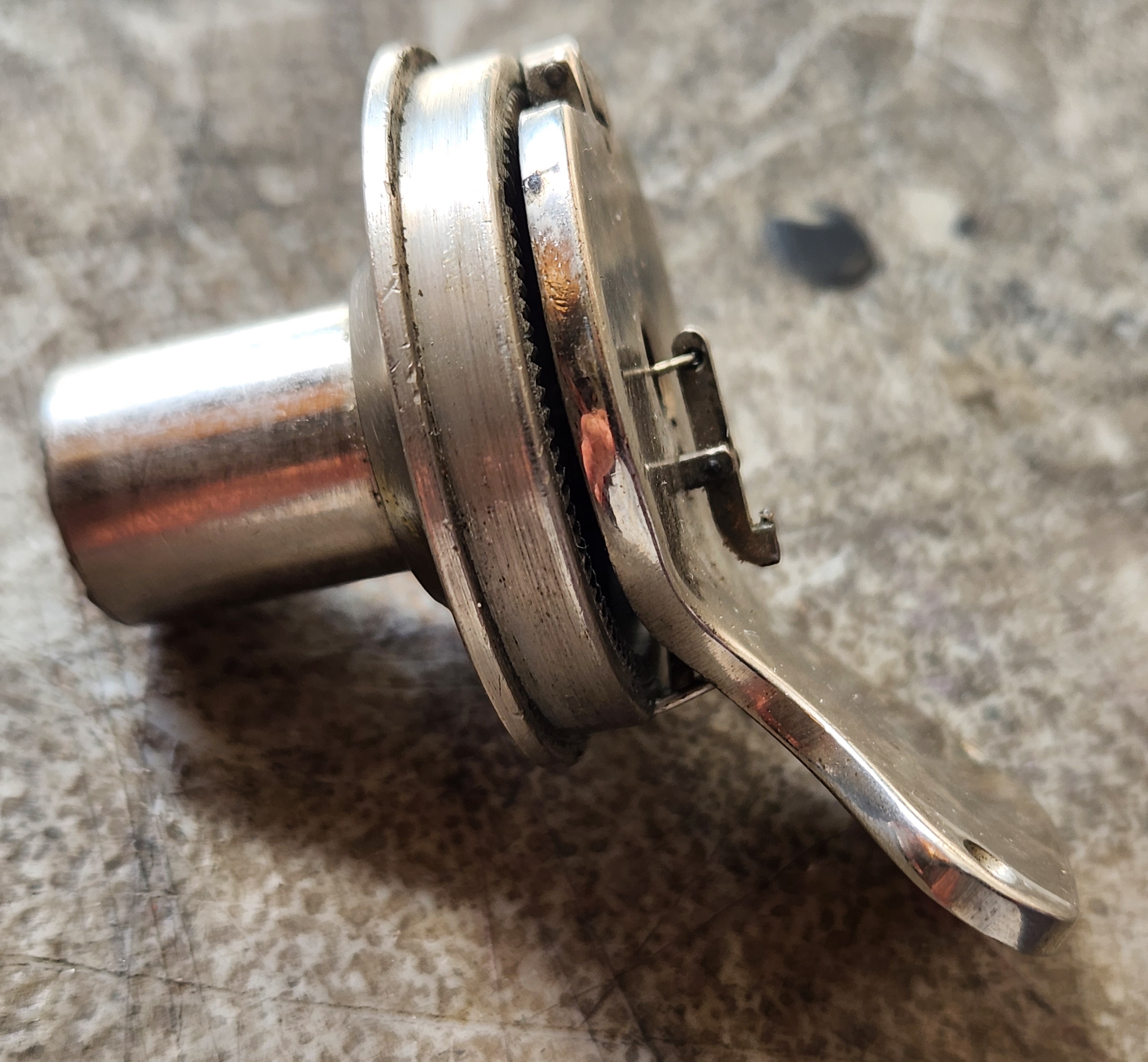 Carl wrote: Fri Aug 15, 2025 4:05 pm I checked mine after seeing your photo. I appreciate that, BTW. It is there, but doesn't protrude as far as yours. (See attached photo) Also, if I may opine, the part where the pin passes through, may have been bent so the pin can touch. (?) Is enough of the pin present to do it's job? Is this pin something that can be pulled out a little further?