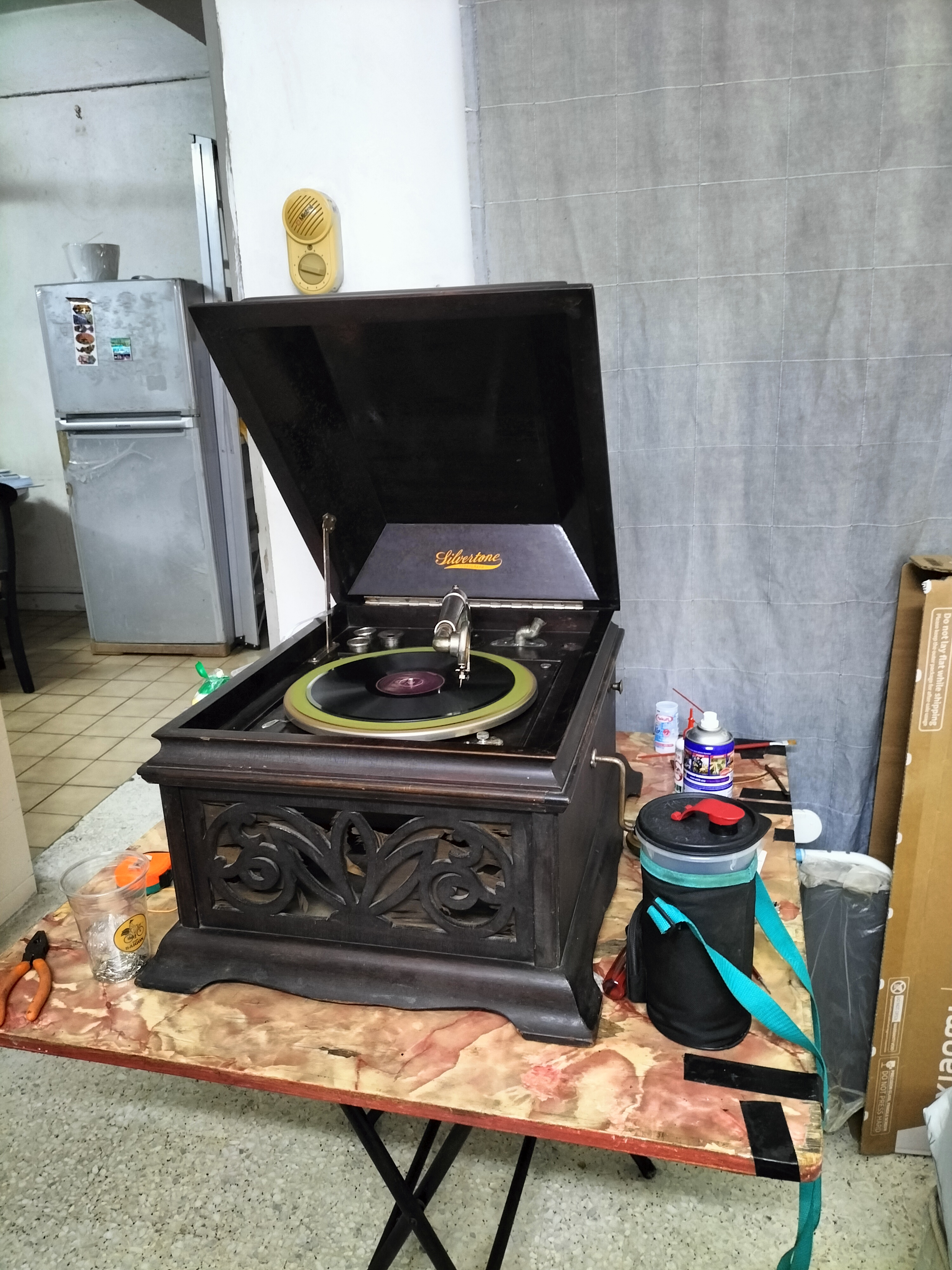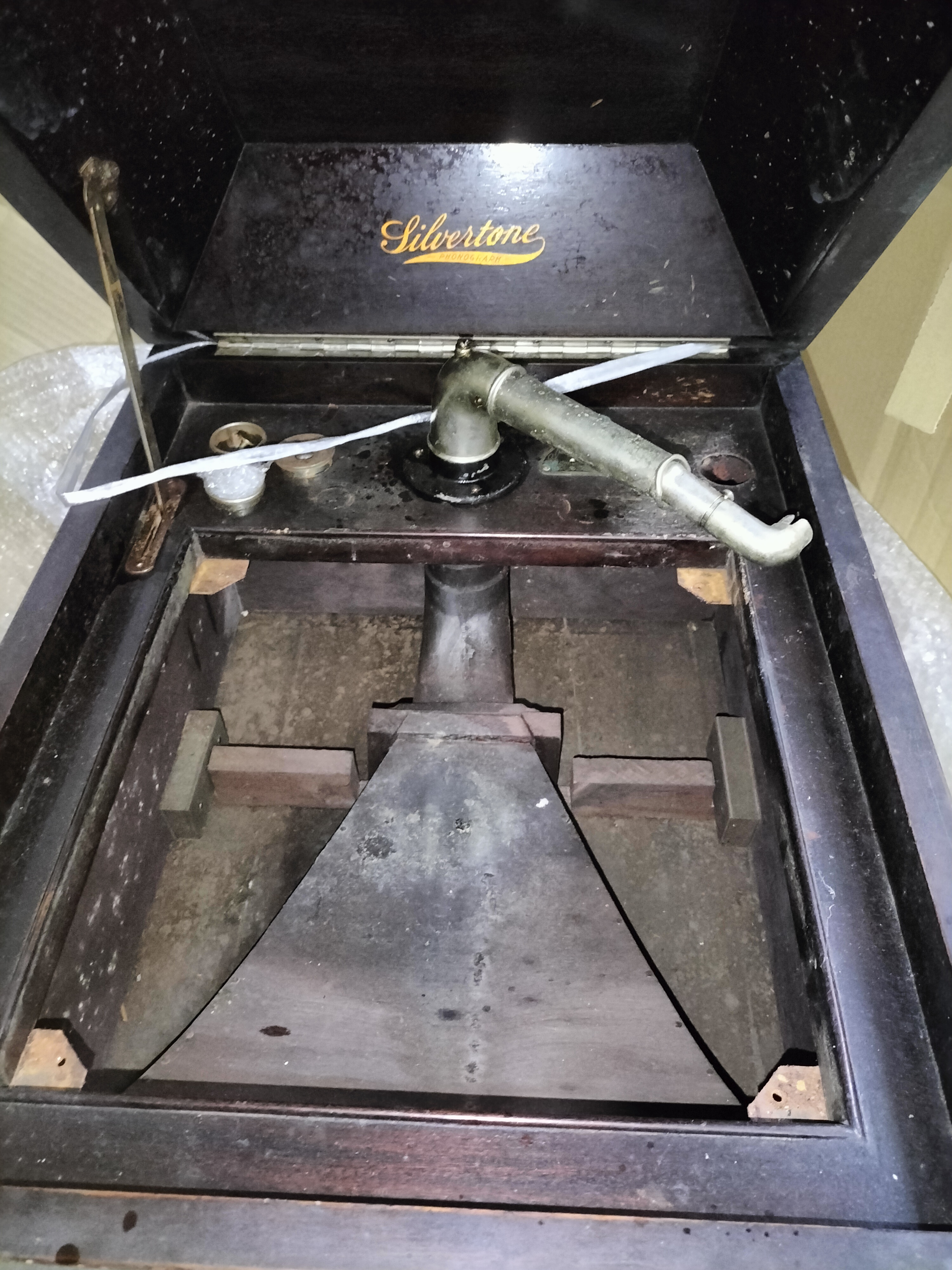 Hi all, I acquired a Silvertone phonograph recently. Bought it online and I didn't realize it's size. When it arrived, I was so shocked to see that it's so big in size and heavy. It's construction is marvellous. I'm also surprised by its volume control knob. I suppose it has a Saal 2 spring motor, but without ID plate on the motor.