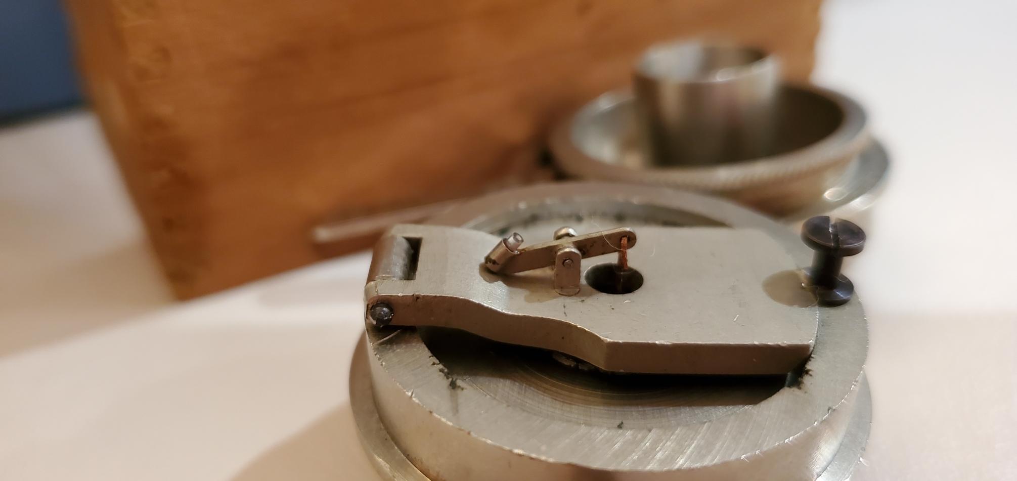 Original dove-tailed box with sliding lid-- Original cotton packing material and screwdriver.