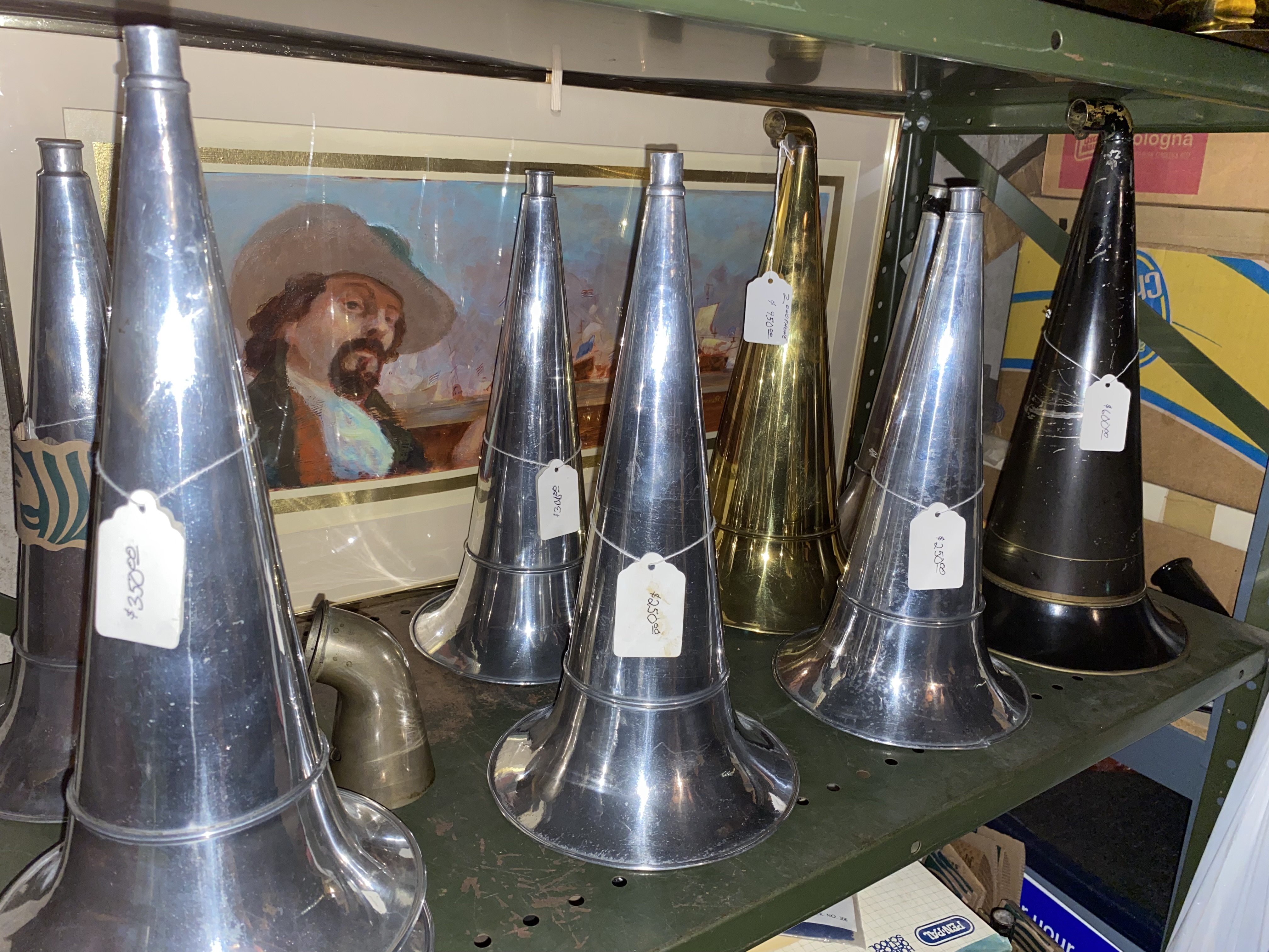 16" Zonophone horns All Brass $950, Black Steel/Zinc $650
