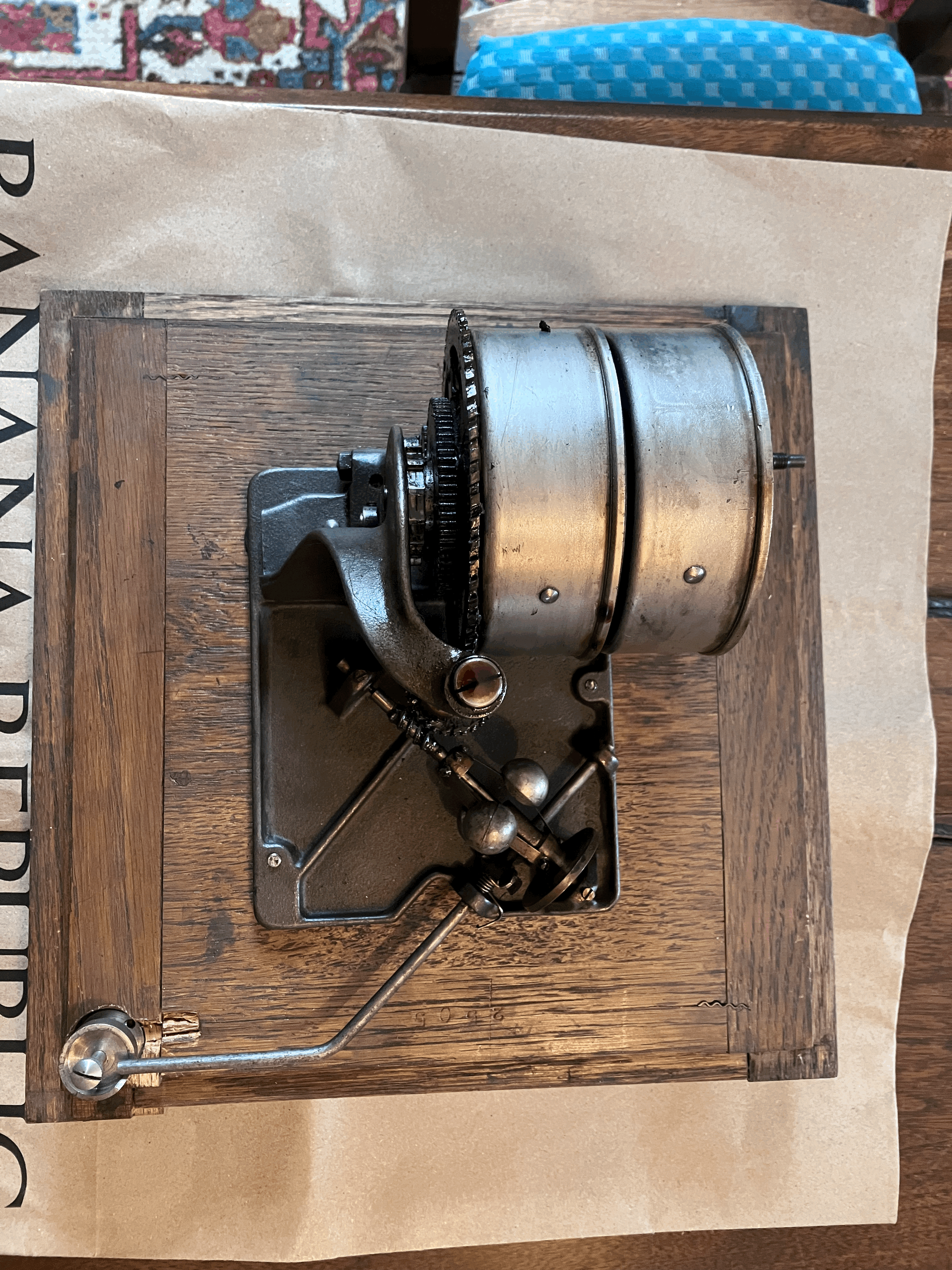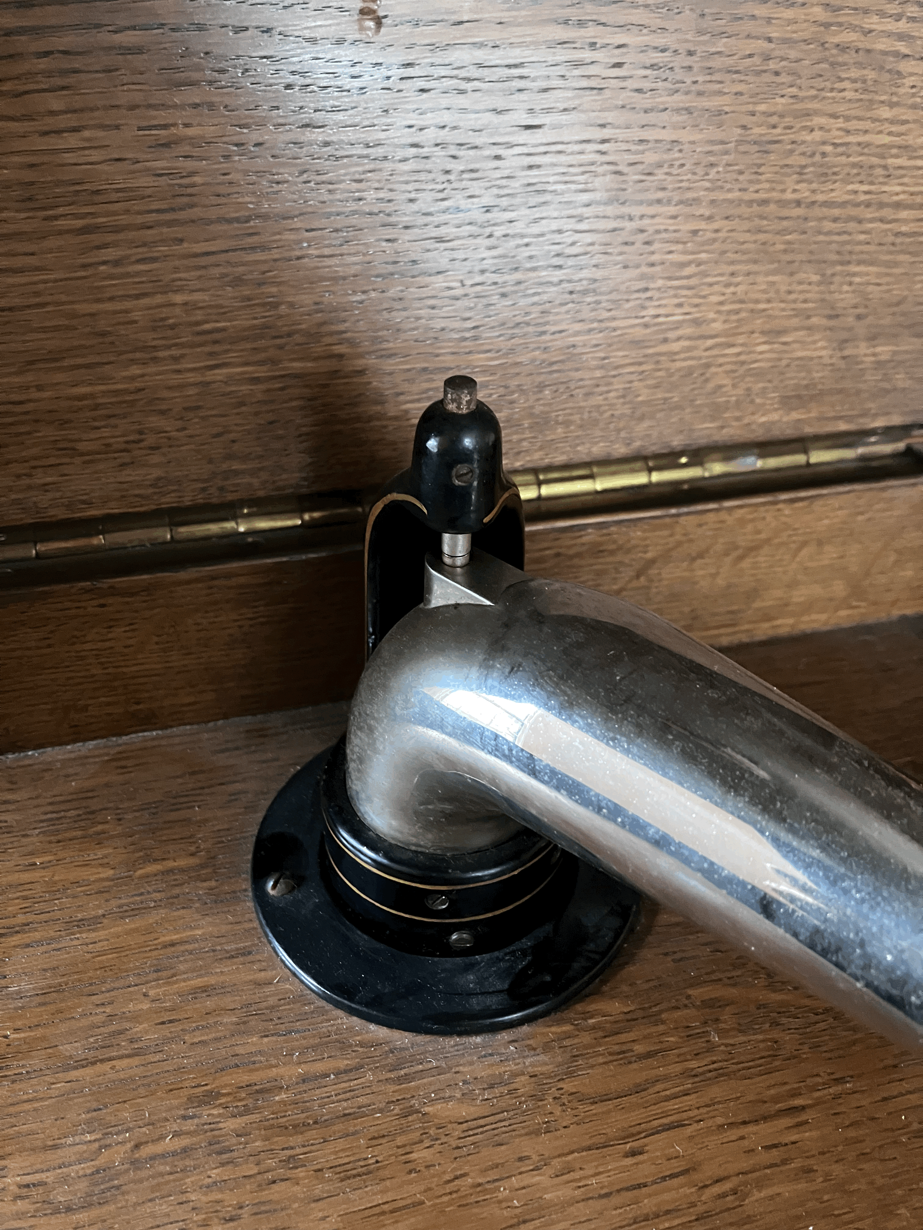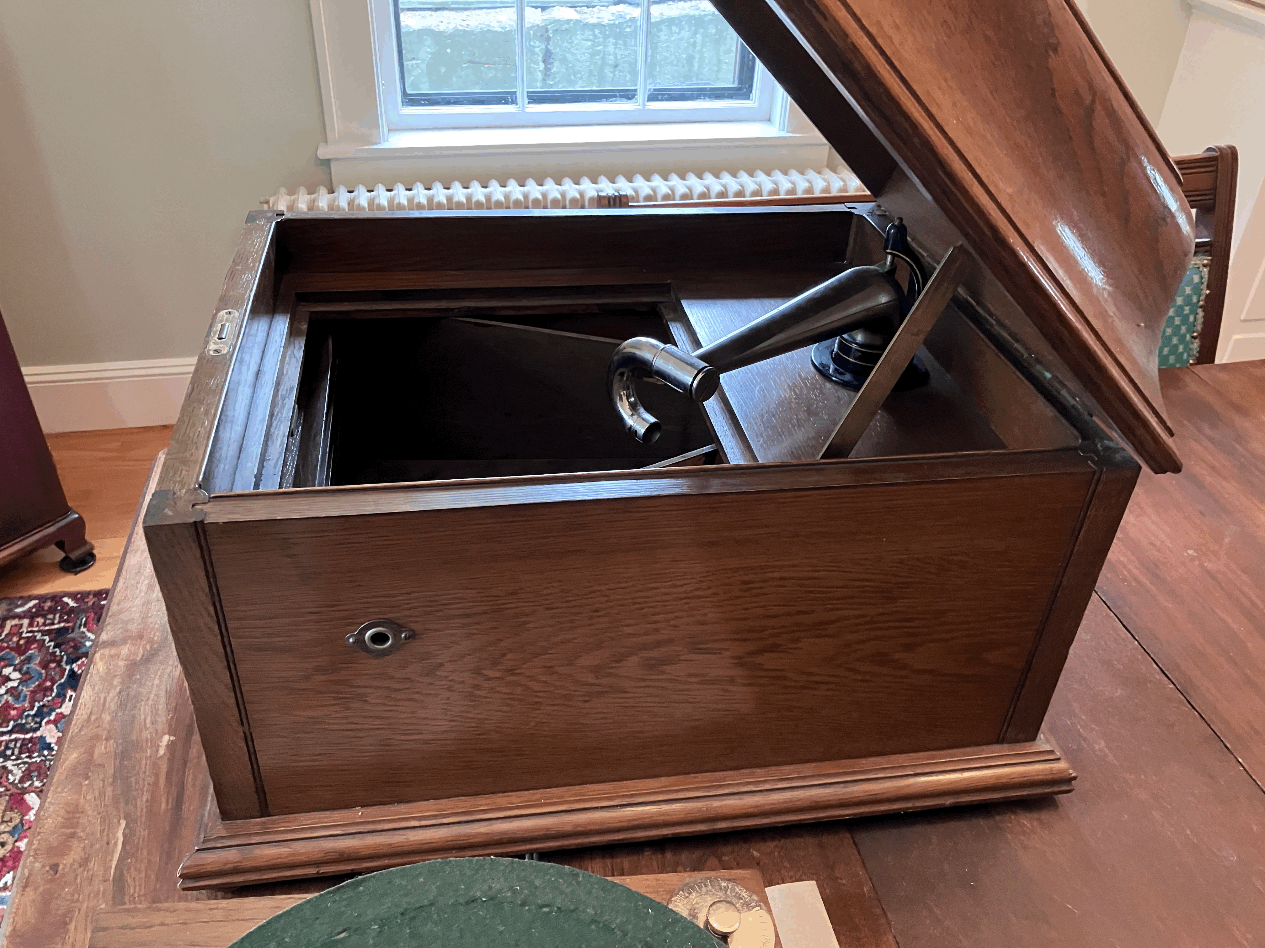 Thank you all so much for all the helpful information about my gramophone (and also for making out the stamped date!) I missed that myself when I initially inspected it. Oddly, the stamped date actually shows more clearly in the photo than in person. I'm glad to hear that other than the reproducer it is as originally equipped.