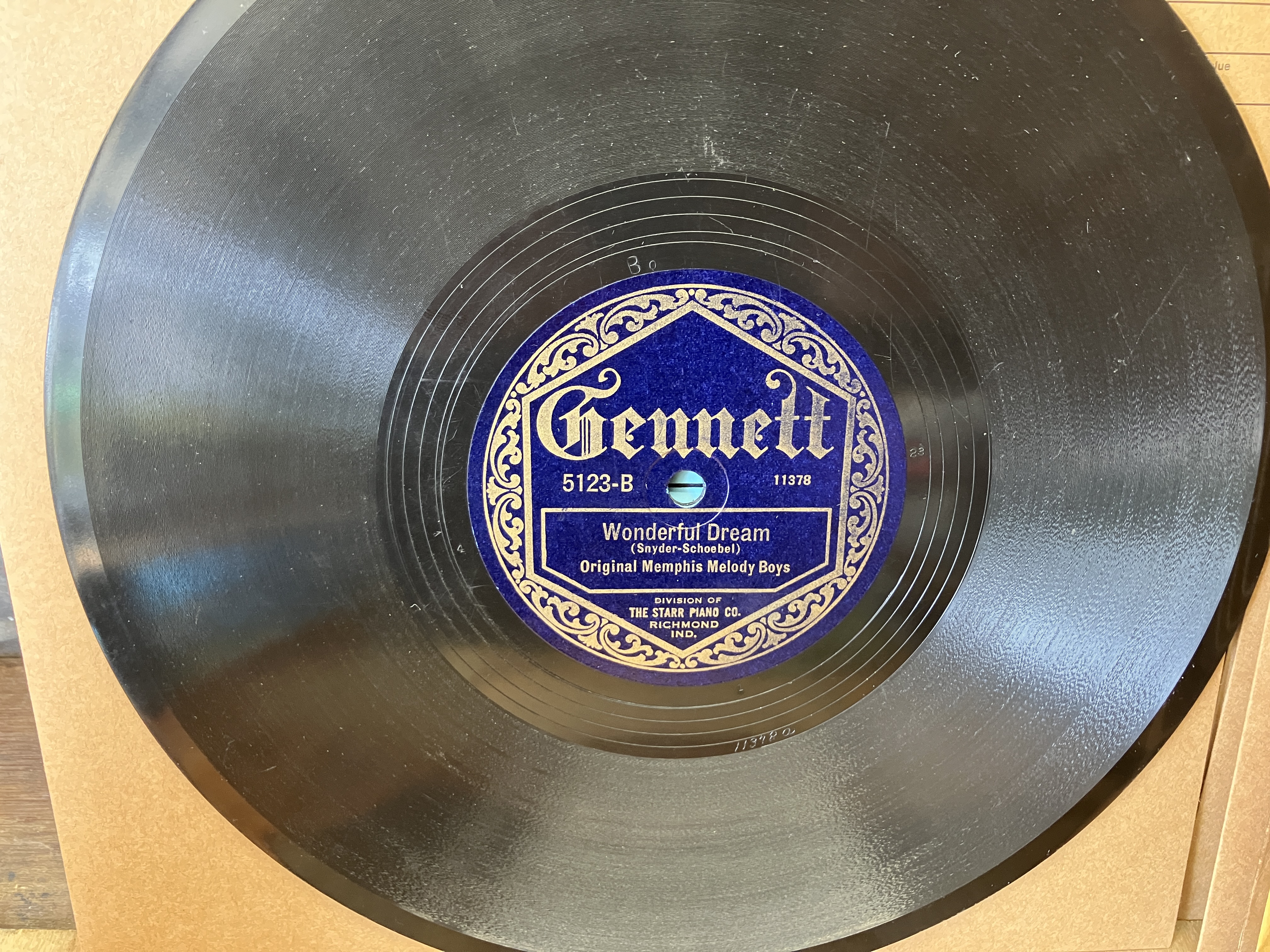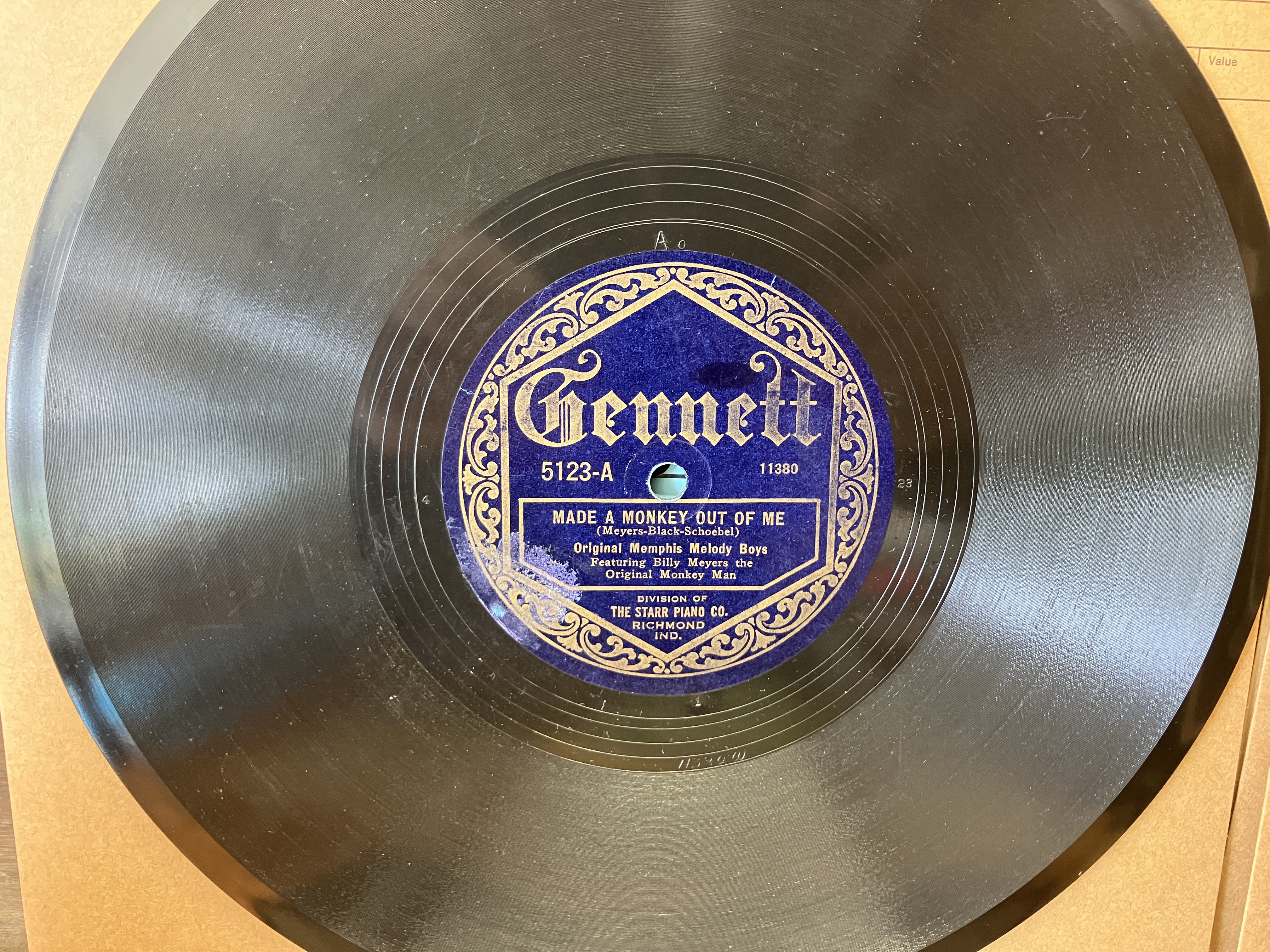 The Original Memphis Melody Boys - Made A Monkey Out Of Me /Wonderful Dream, Gennett 5123, V+, Meyers makes monkey sounds during this recording. $20