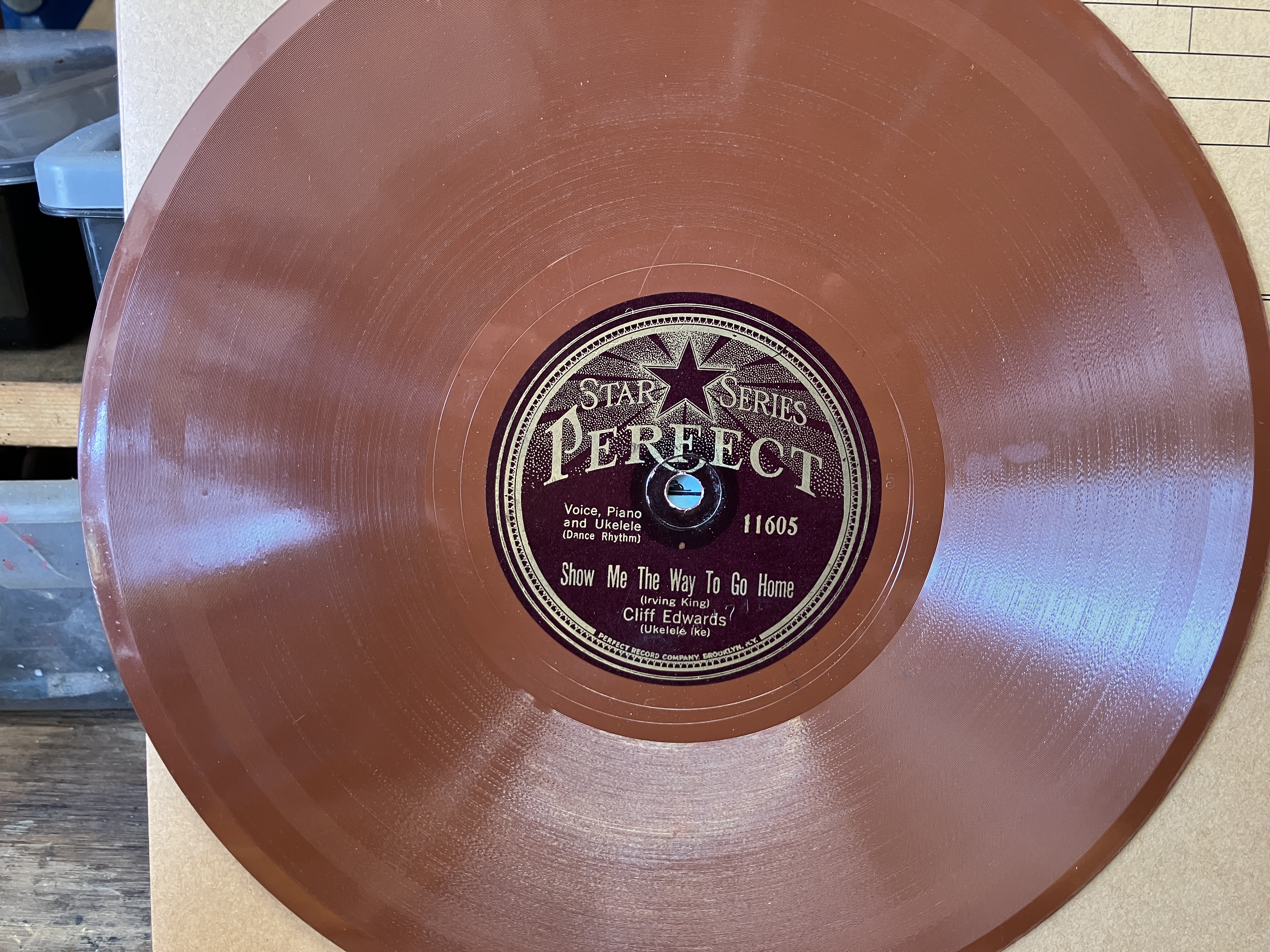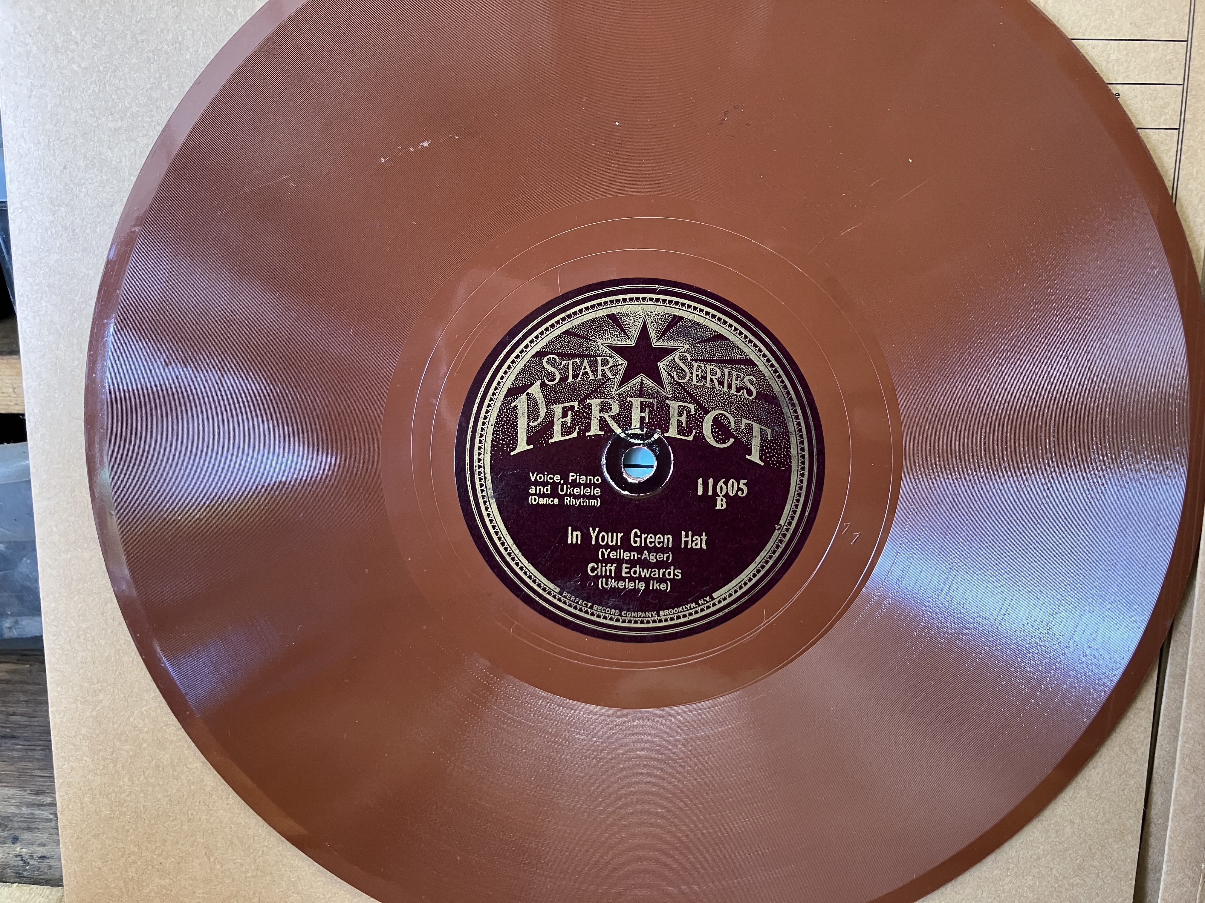 SOLD Cliff Edwards (Ukelele Ike) - Show Me the Way To Go Home / In Your Green Hat, Perfect 11065, red shellac, V+/E-. Clif Edwards was an early pioneer of "voice instrumentation", i.e. using his voice to imitate instruments. On "Show Me....." he uses his voice to imitate something between a trumpet and kazoo. Fun record. $25
