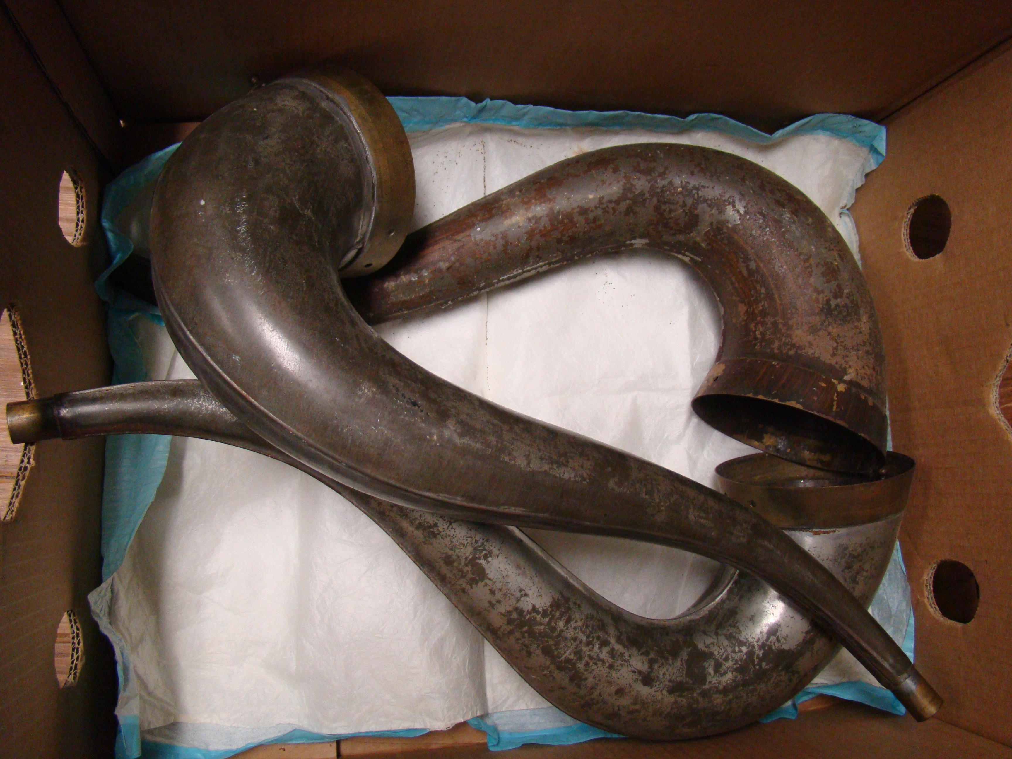 I have four Edison wood cygnet horns in need of repair. Most have separations at the seams. The Goose necks are dent free but are lacking paint. they are $600.00 each.