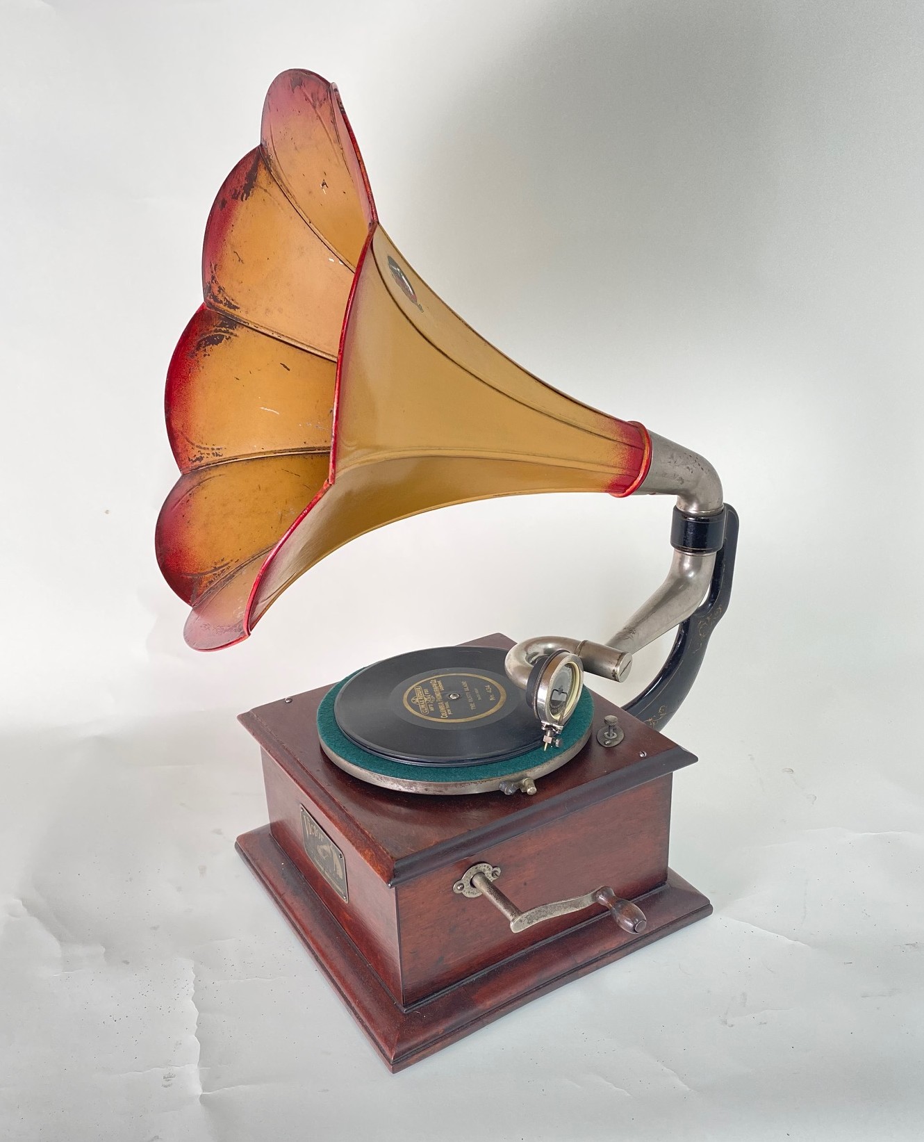 Here for sale is a really nice Victor O. A very nice original machine except the outside of the horn has been re-painted properly and beautifully with a new decal. This machine plays outstandingly loud! A new mainspring has been installed as well. Will make a nice machine for your collection!