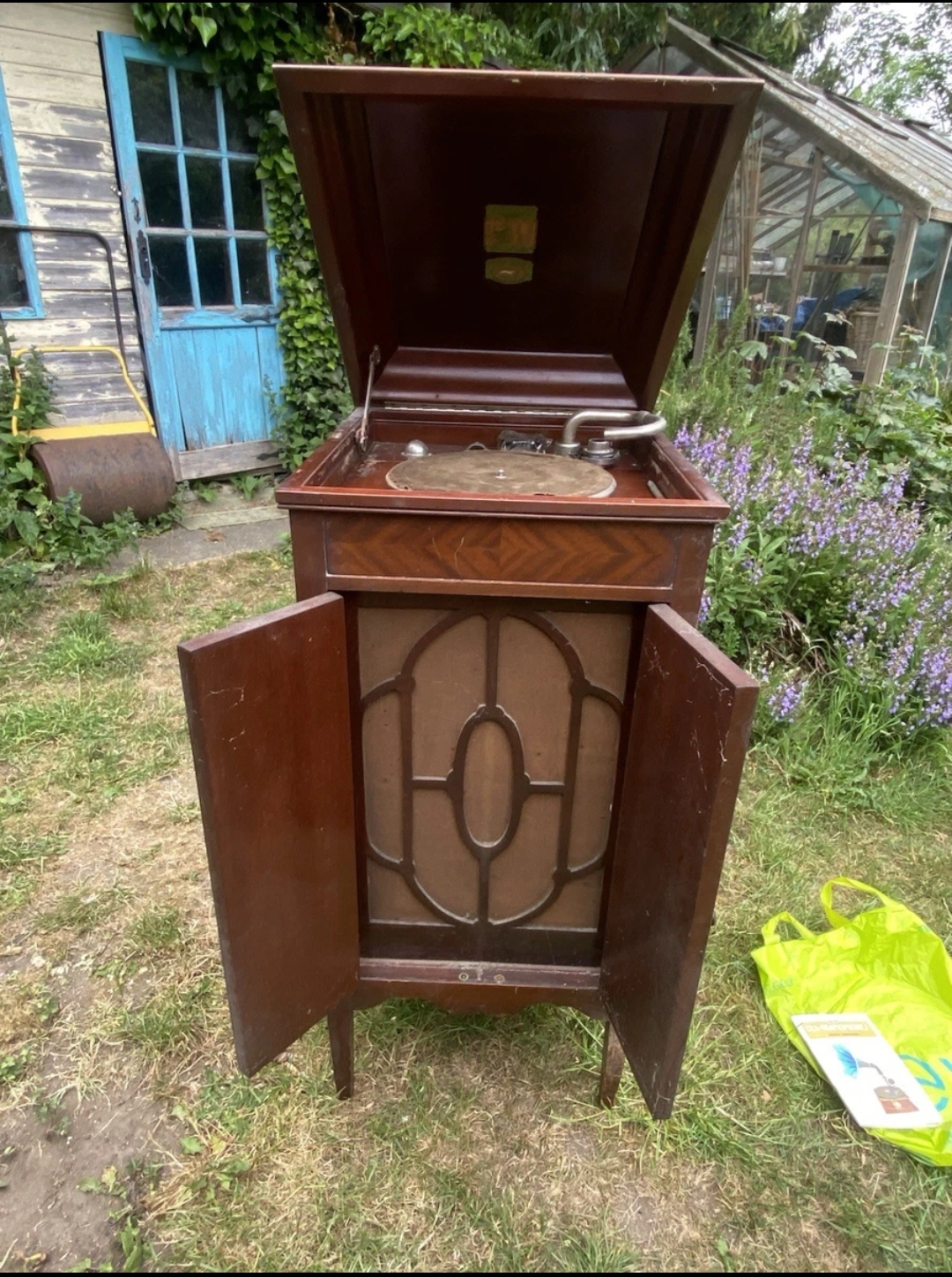 The seller states that the horn is missing. This is unlikely as the horn is built into and forms part of the sides of the cabinet, but prospective bidders would be well advised to ask the seller to lift the motor board and photograph what lies beneath .