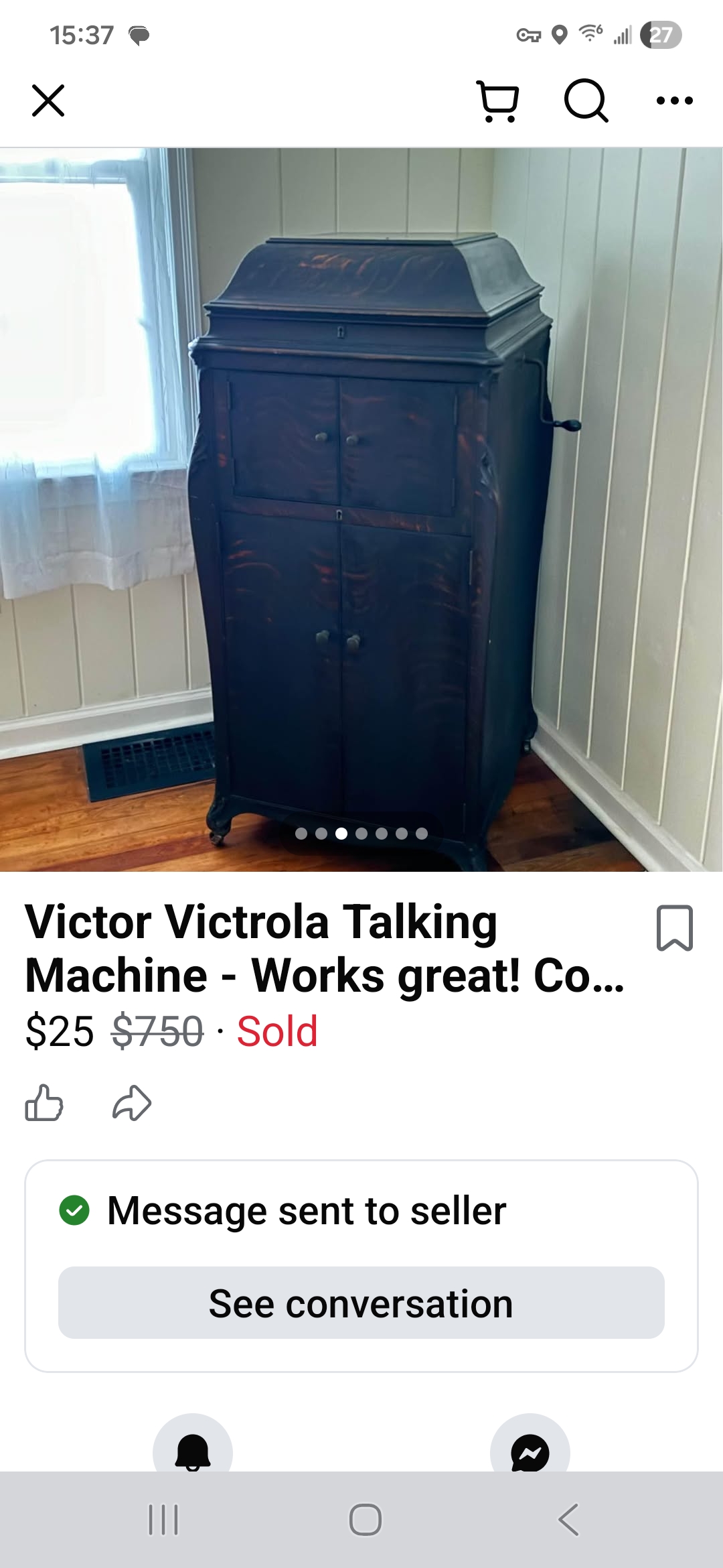 It's a VV-XVI in Oak, fumed oak finish I think. It's kinda dirty but solid. Cleaning it will take some doing. I paid $25, and it came with records. Oh, and it runs smooth and quiet.