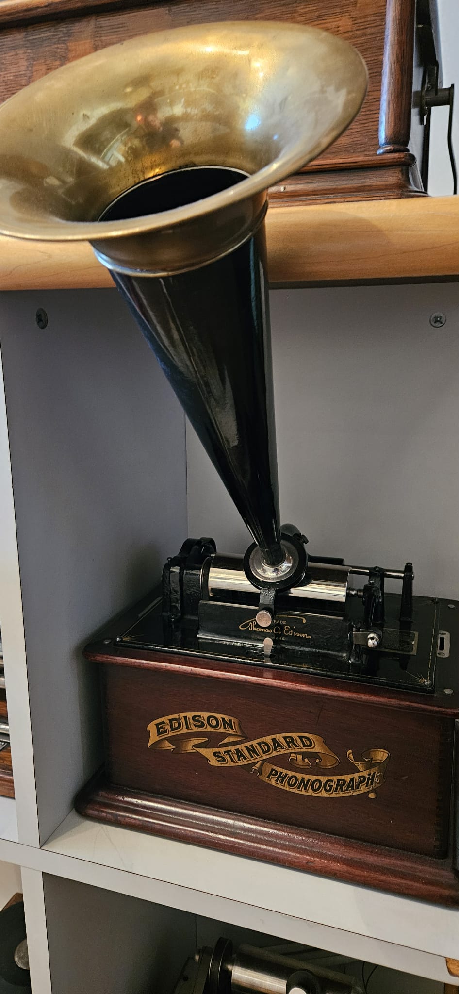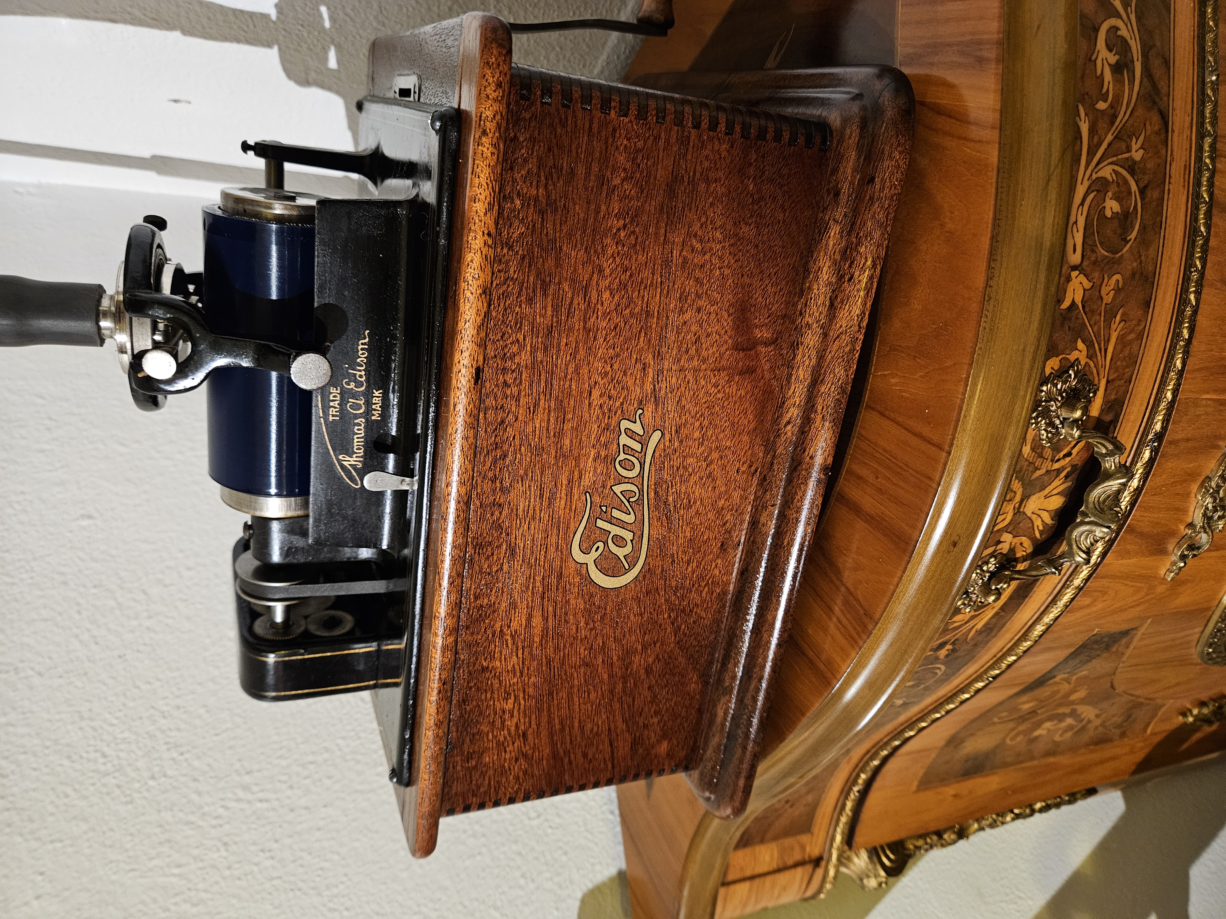 Just bought this fairly early Mahogany Standard case. Please ignore the later mechanism. I'm just referring to the case and will be dropping the correct mechanism back in once I have done a little work on it. This case bears a light previous refinish and came without decal. I slapped on a script for display purposes. But, I'd really like to apply the proper decal and put back in the original mech. This case is differentiated from the later case as it has a simpler and smaller base.