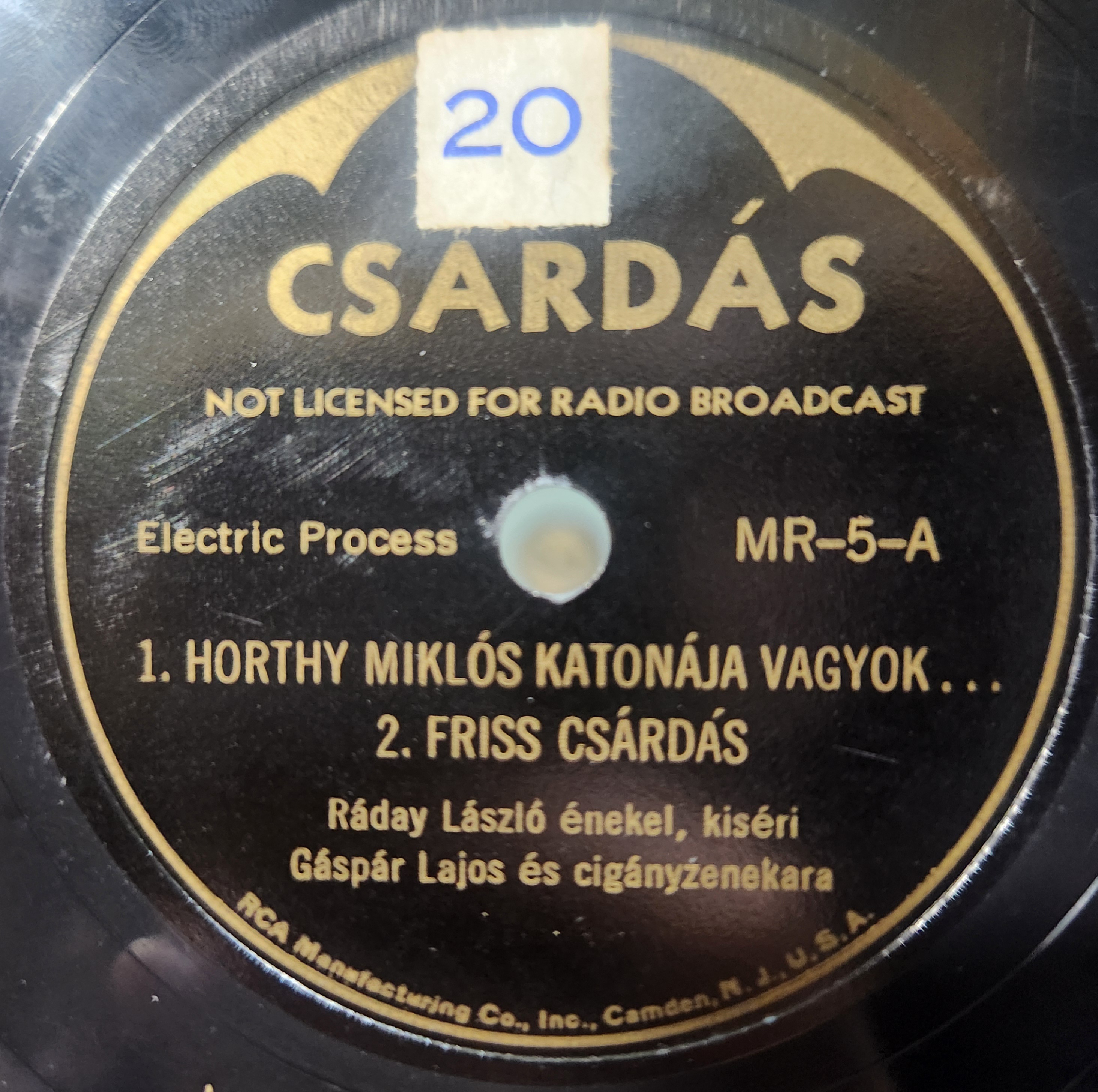 Now for the Czárdás label. This one is a bit more complex, so ill go through the 3 different variants separately, starting with the RCA Victor version. This one has a feature present on all of the records, a stamped version of the matrix info on the label. This one is the only one to feature a stamped A(that almost seems to be scratched off a bit... it looks more like an A in person than on the picture), the A stamp is on both sides.