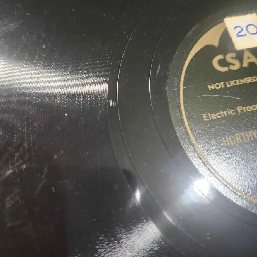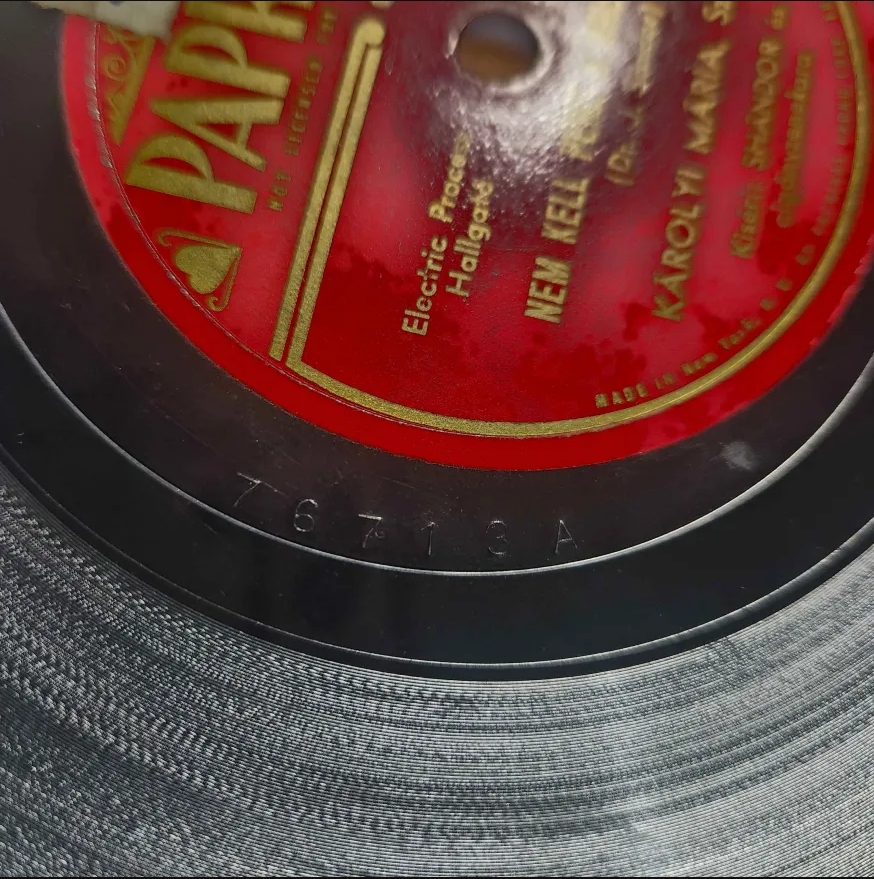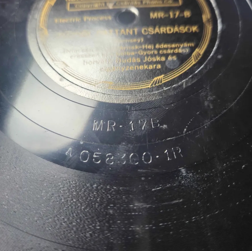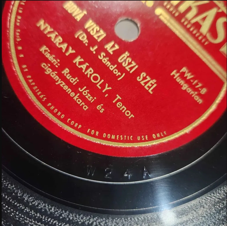 First, the Paprikás label. This label has 3 types, or being more specific, 1 type with two variations, & one anomaly. The first type is just a W, followed by a number, & then an A/B. Neither the number nor the A/B correspond to the matrix/side information listed on the label. I put two different pictures because the variation I mentioned earlier is in the run-out groove style. The first two pictures are of the same record, & both sides have a different run-out groove, & before you ask, the A/B doesn't correlate to that either. The Anomaly is the third image, featuring no W, & a longer number that still isn't the matrix number on the label. I can't tell if the A marking is also an A/B because this record is the only anomaly & it has A on both sides. It also has the same runout groove style on both sides. While the first style of run-out groove does seem to look similar to Decca, the two types of run-out groove on one record reminds me of a 40s Parlophone record I picked up at a show recently. It has a different style on both sides, & they seem to be the same style. The stamped font isn't the same, but it also doesn't seem to be a Decca font either. Maybe they are Parlophone masters that had their Matrix numbers taken off & replaced with new ones.