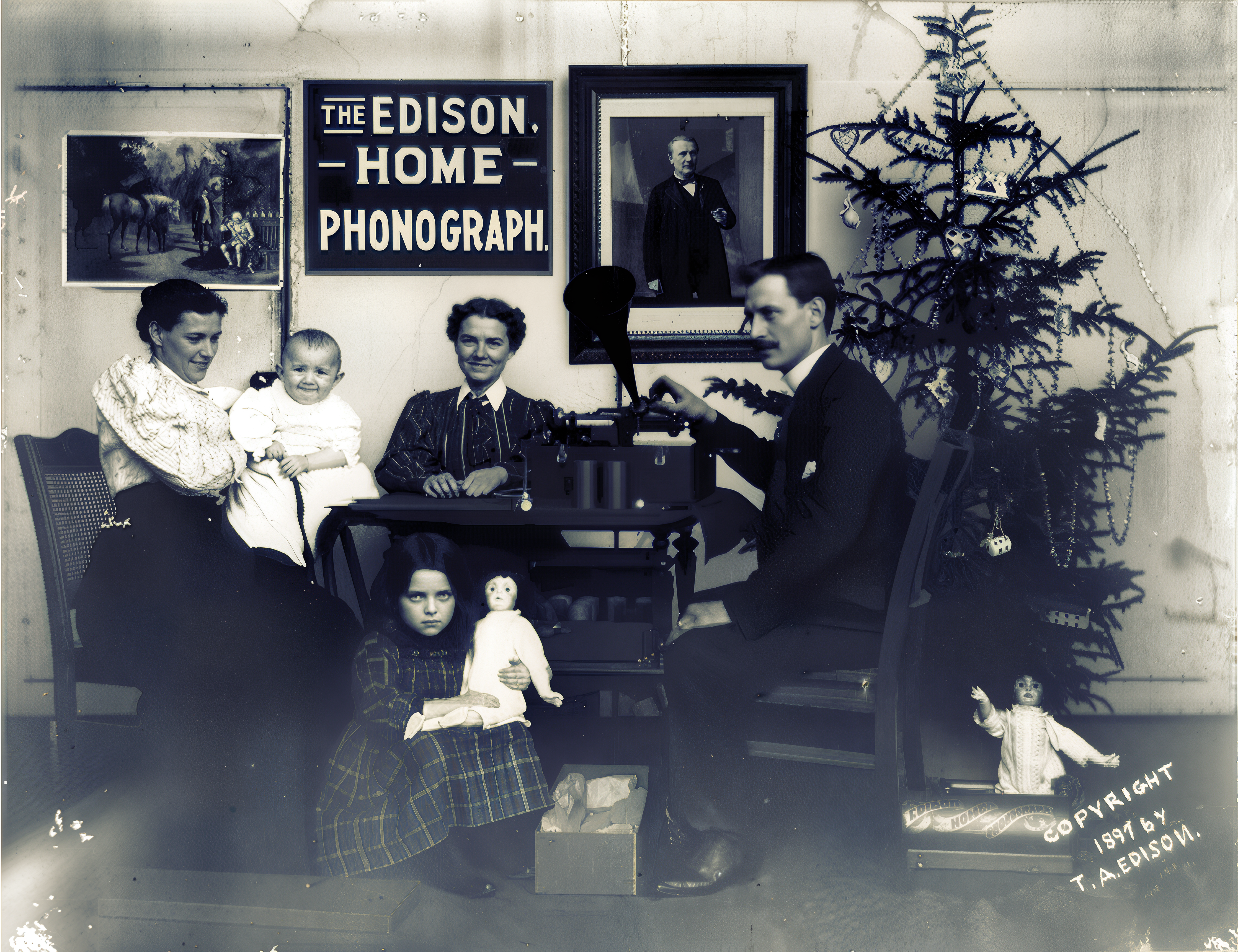 Scary! I would try it on a photo of my dear-departed mother-in-law, but unfortunately all her photos suffered from spontaneous combustion when she left this world and departed to a hotter place.TinfoilPhono wrote: Thu Jan 01, 2026 2:08 pm An interesting tool, but it has its limitations. Here's an image I ran through it out of curiosity. It's certainly sharper that the original, but the people look like they stepped out of a horror movie, especially the baby and the woman to its right, and Rosemary's baby sitting on the floor. The photo of Edison on the wall turned into a drawing by Picasso, who apparently also painted over the decal on the lid. And those hands! (Click to enlarge for full effect.)