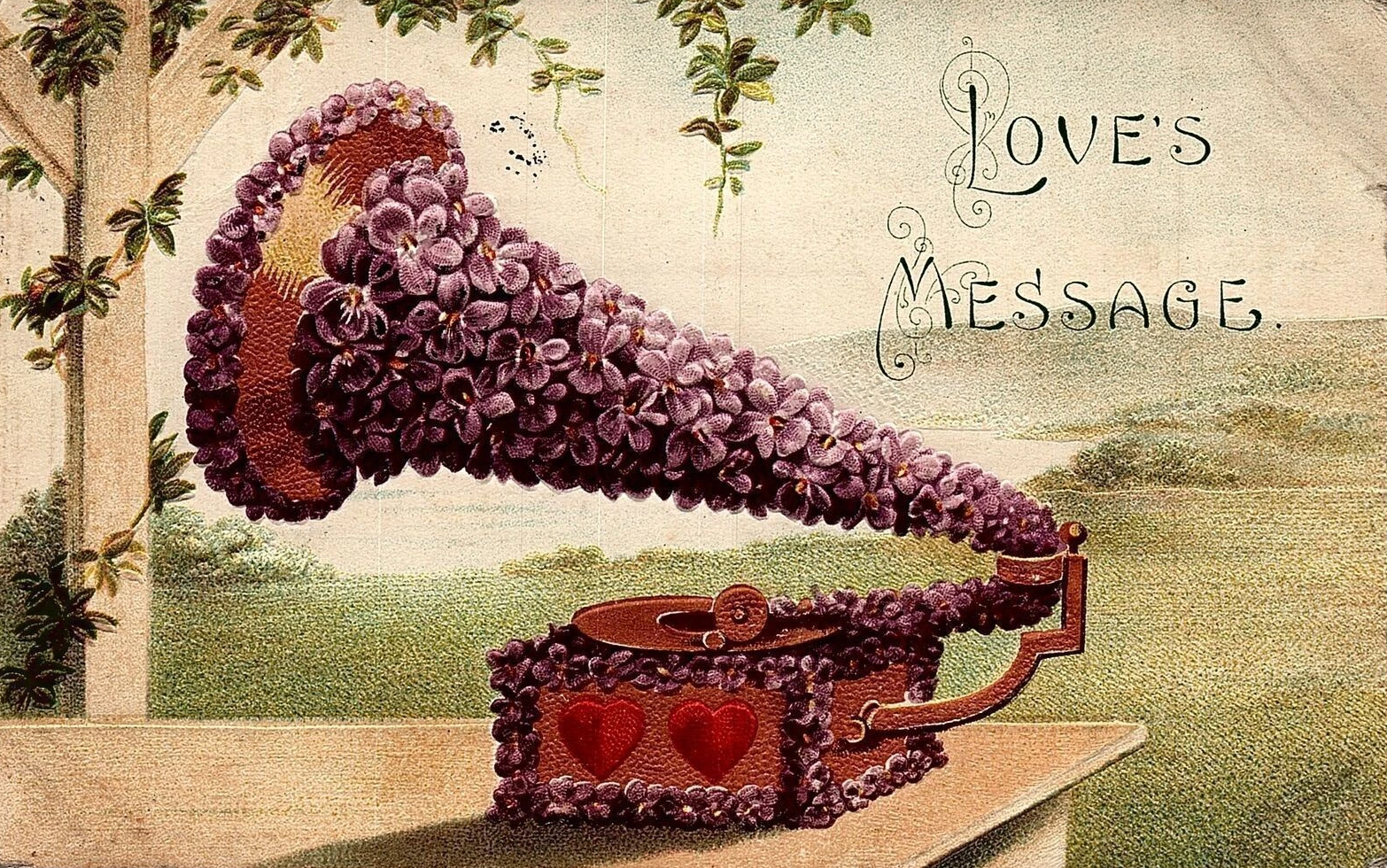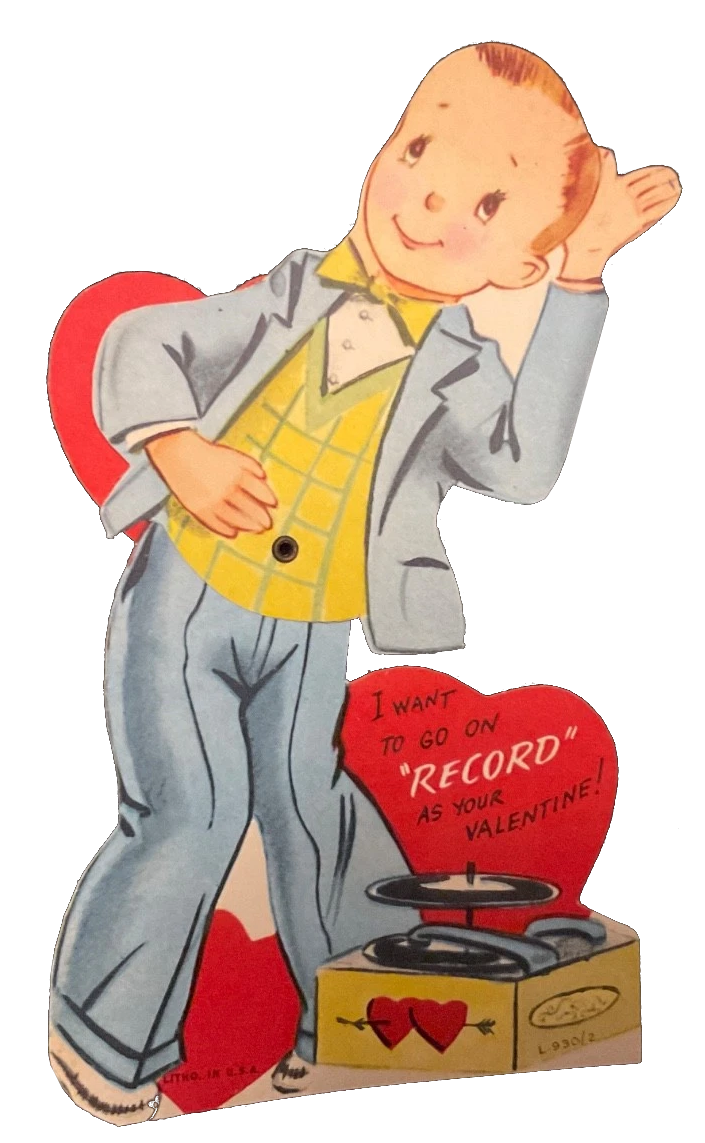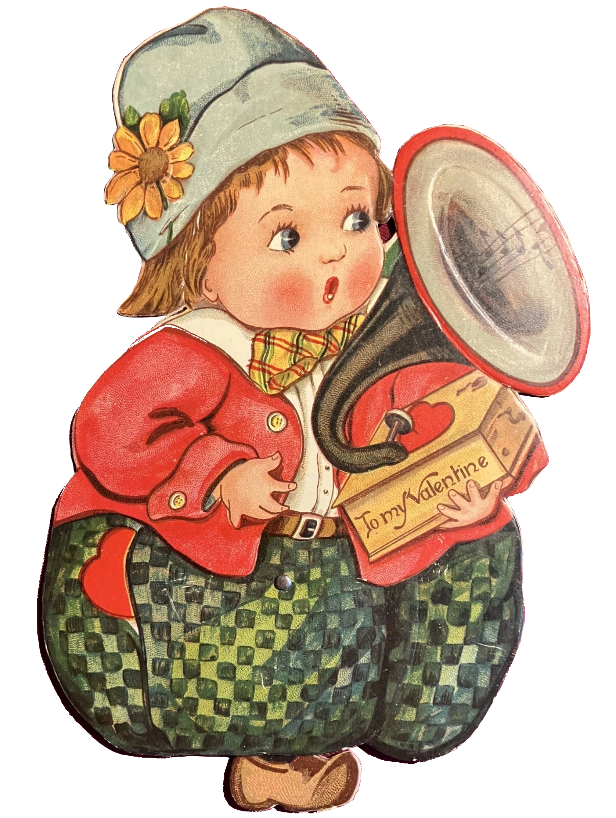 **If you have any vintage Valentines related cards or Ads that feature Phonographs, that you could scan and send me, it would be much appreciated.